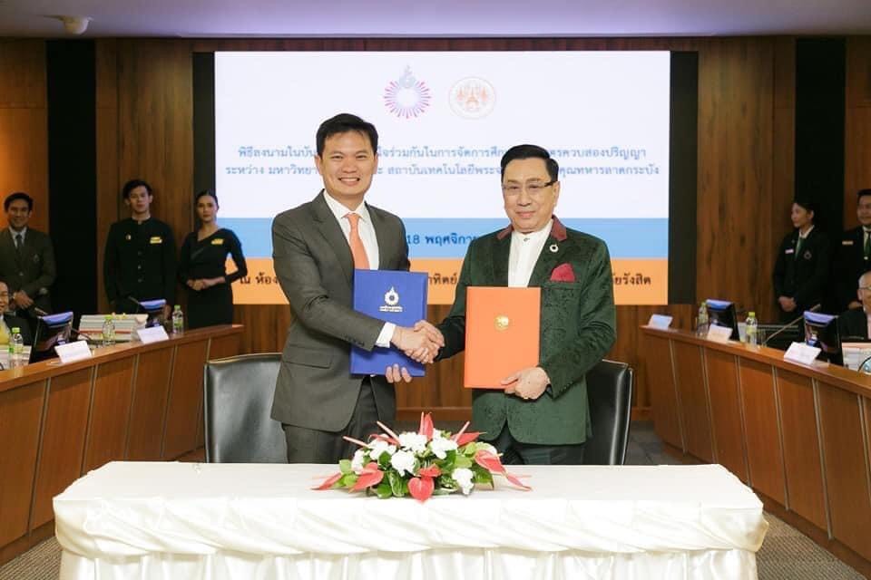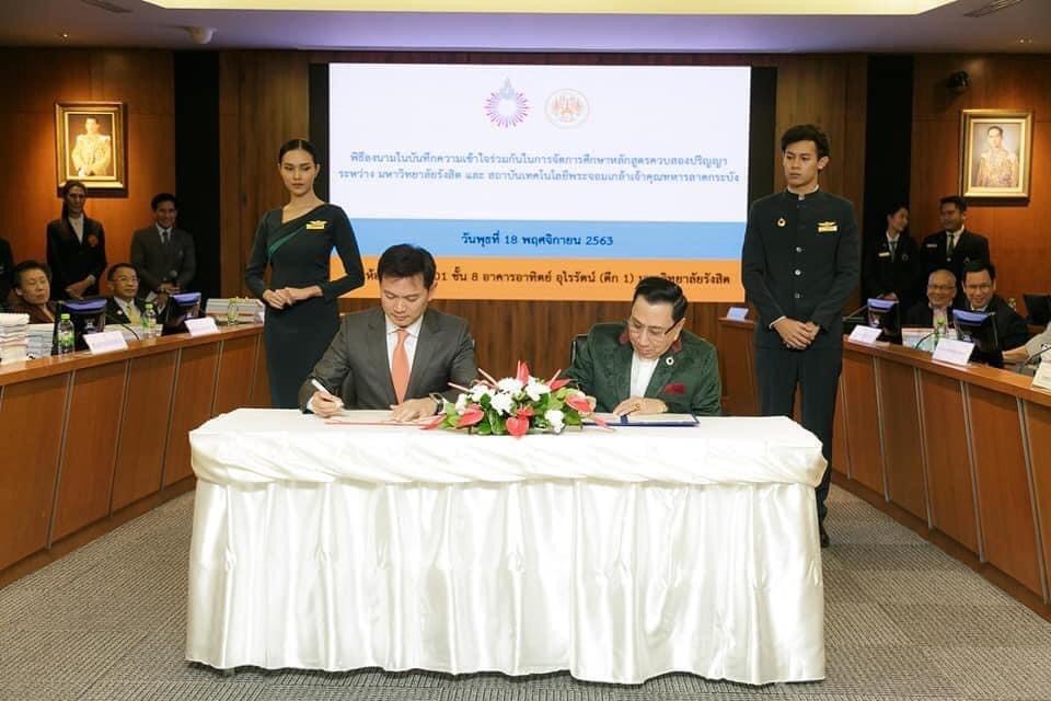 พิธีลงนามในความร่วมมือการจัดการศึกษาหลักสูตรควบสองปริญญา ระหว่าง มหาวิทยาลัยรังสิต และ สถาบันเทคโนโลยีพระจอมเกล้าเจ้าคุณทหารลาดกระบัง (สจล.)