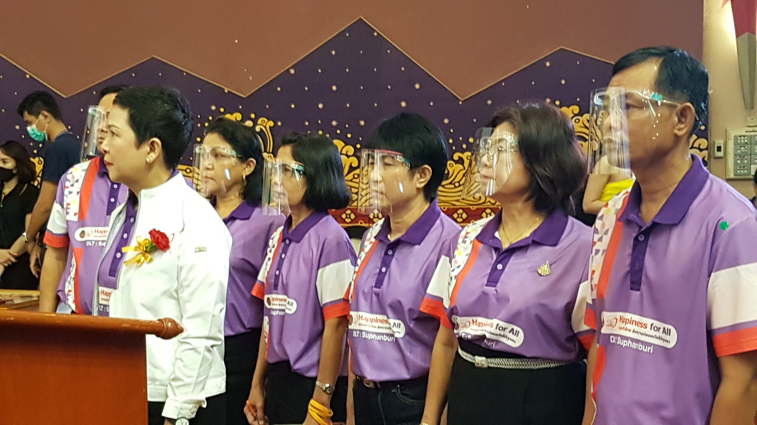 โดยมีนายสมหวัง ทองขาว ผู้ตรวจราชการกรมการขนส่งทางบก นายปรีชา ทองคำ รอง ผวจ.สุพรรณบุรี นางสาวหทัยรัตน์ คงชนะ ขนส่งจังหวัดสุพรรณบุรี นางอัจฉรา เกษมสุขเจริญชัย หัวหน้างานบริหารงานทั่วไป นางพรสวรรค์ อุดมอานุภาพสุข หัวหน้าฝ่ายใบอนุญาตขับรถ นางสาวอารีย์ ธัญญเจริญ หัวหน้ากลุ่มวิชาการขนส่ง นายสุพิพัฒศักดิ์ บุญชาญ หัวหน้าฝ่ายตรวจสภาพรถ นายศักรินทร์ จันทร์ฉาย นักวิชาการขนส่งชำนาญการ พร้อมคณะเจ้าหน้าที่ขนส่ง จ.สุพรรณบุรีหัวหน้าส่วนราชการร่วมงานจำนวนมาก