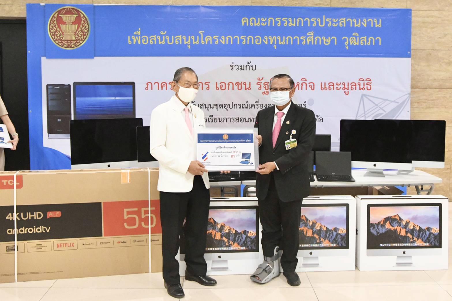นนทบุรี กรรมการประสานงานเพื่อสนับสนุนโครงการกองทุนการศึกษา วุฒิสภา เป็นประธานในพิธีรับมอบเครื่องคอมพิวเตอร์เพื่อสนับสนุนโรงเรียน ในโครงการกองทุนการศึกษา ประจำปีงบประมาณ 2564