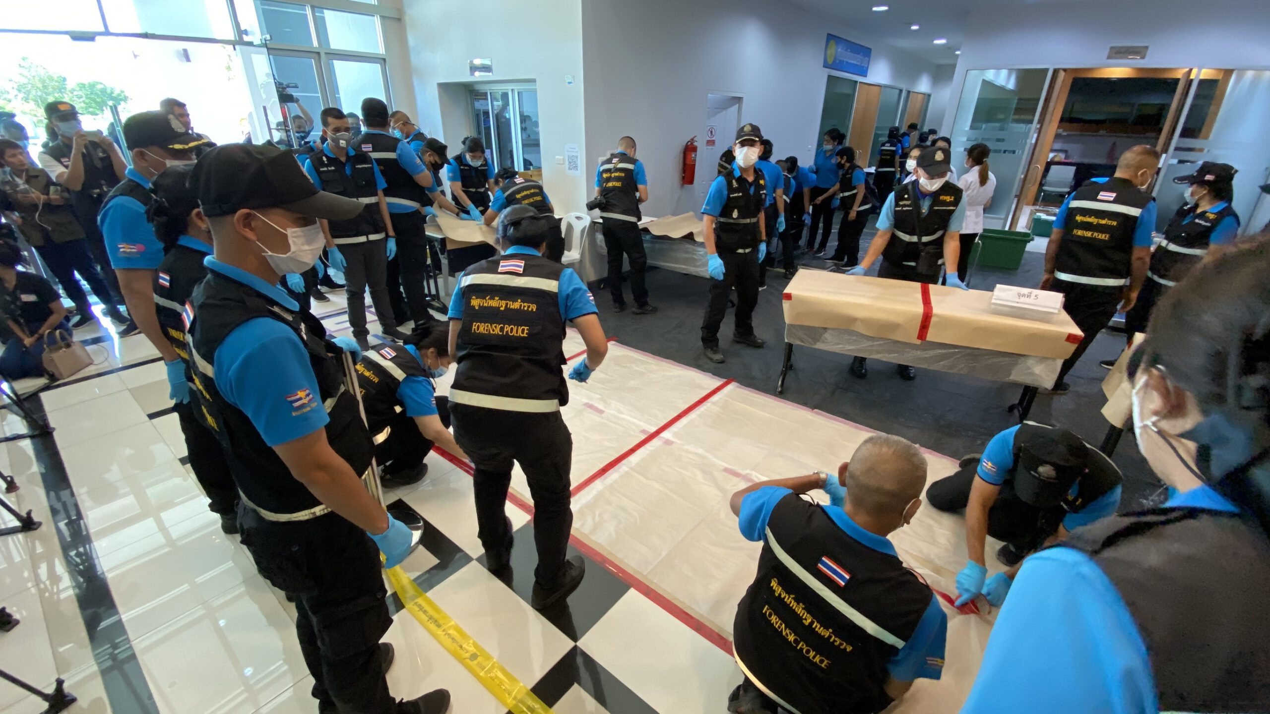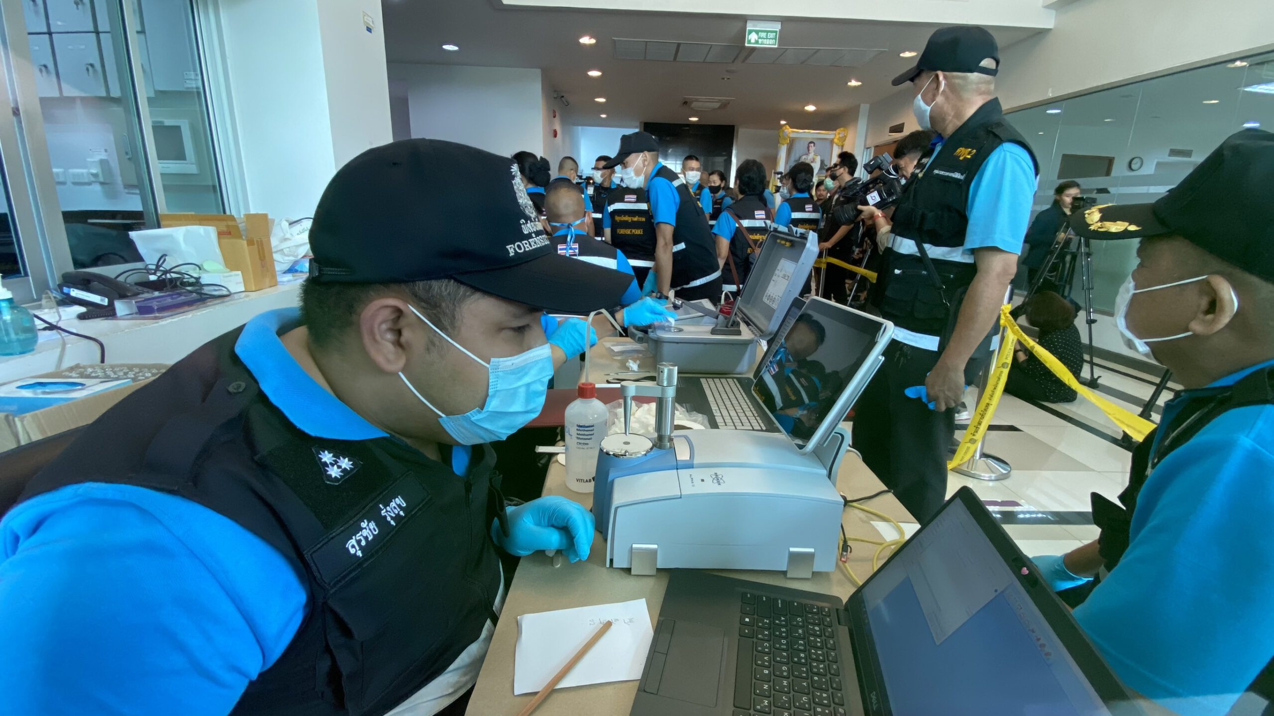โดนในเบื้องต้น ยังไม่มีความคืบหน้าในการจะแถลงข่าวเกี่ยวกับของกลาง 400 กระสอบ โดนมีเพียงกองทัพนักข่าว จากสำนักต่างๆ จำนวนมาก เดินทางมารอ ที่บริเวณชั้น 1 นอกจากนี้ยังมี เจ้าหน้าที่พิสูจน์หลักฐาน สำนักงานตำรวจแห่งชาติ เดินทางมาเพื่อรอทำการตรวจสอบของกลาง โดยด้านหน้าห้องเก็บของกลาง ได้มีการนำผ้าใบสีดำมาปู คล้ายจะนำของกลางออกมาตรวจสอบเพื่อโชว์ให้สื่อมวลชนได้ดู