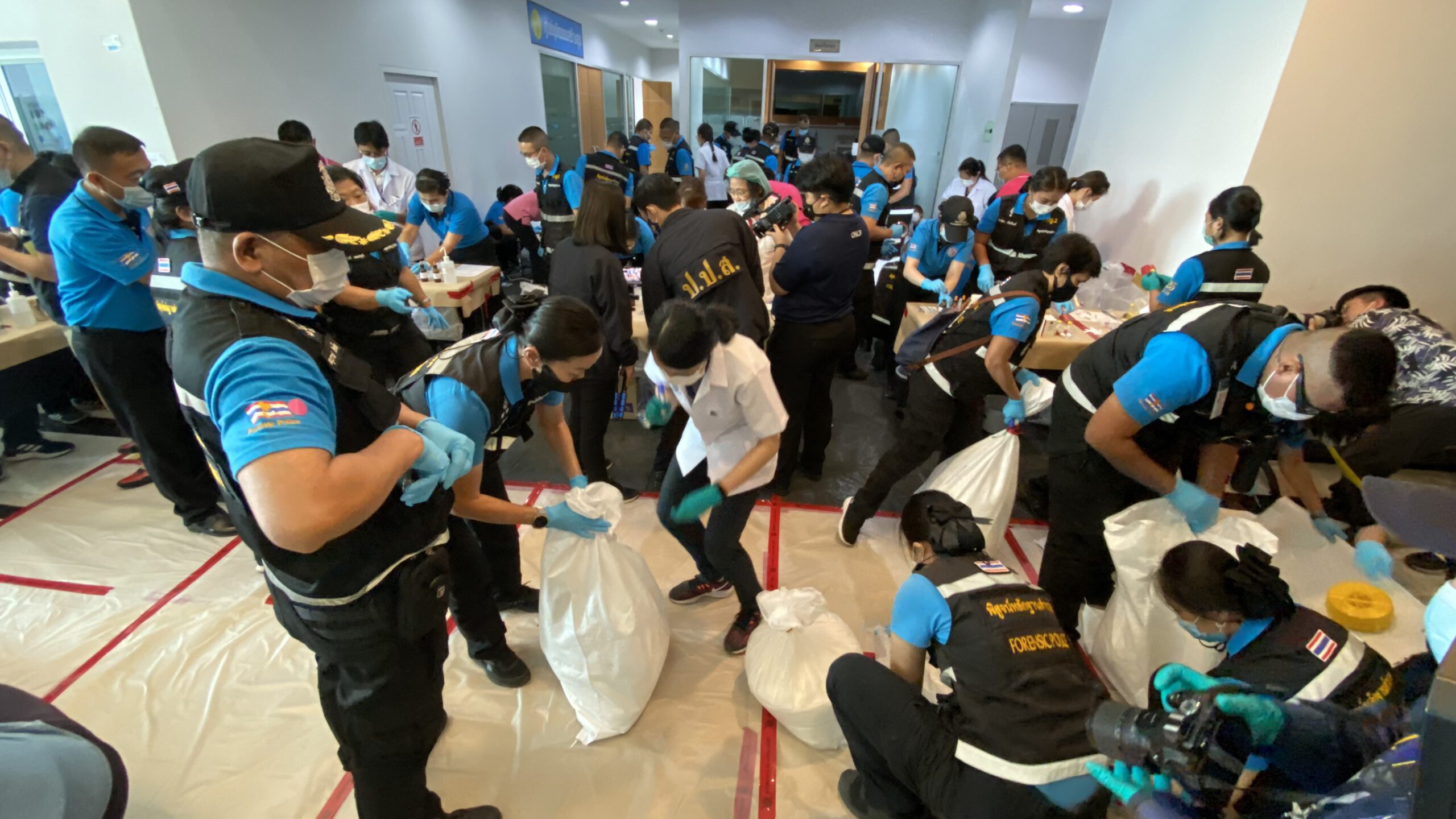 เมื่อเวลา 09.30 น.วันที่ 24 พฤศจิกายน 2563 ที่สำนักงานป้องกันและปราบปรามยาเสพติดภาค 1 ต.คูบางหลวง อ.ลาดหลุมแก้ว จ.ปทุมธานี ได้มีการเปิดห้องเก็บของกลาง แสดงการตรวจของกลางกว่า 400 กระสอบ โดยนักวิทยาศาสตร์จาก ป.ป.ส. สำนักงานพิสูจน์หลักฐานตำรวจ และกรมวิทยาศาสตร์การแพทย์ พร้อมสรุปผลการตรวจหลังทราบผล ณ สำนักงาน ปปส. ภาค 1 อ.ลาดหลุมแก้ว จ.ปทุมธานี