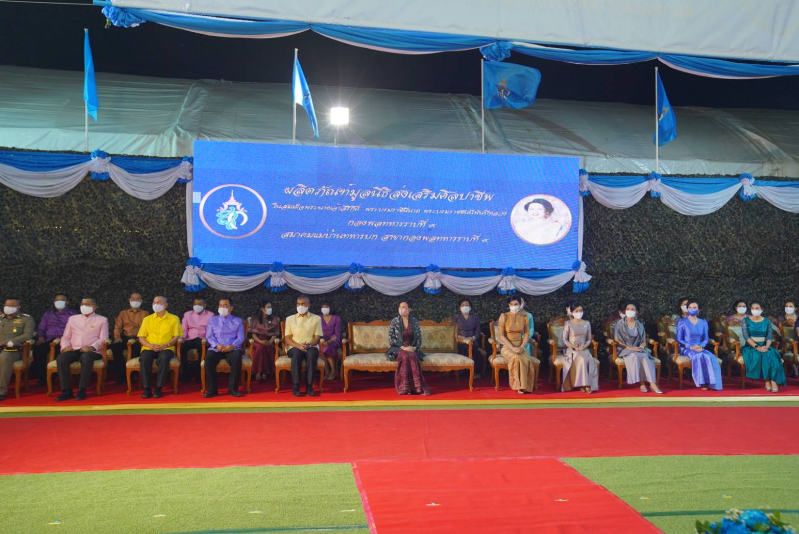 ดร.มติกาญจน์ ทองน่วม ประธานสมาคมแม่บ้านทหารบก สาขา กองพลทหารราบที่ 9 เปิดเผยว่า ทางกองพลทหารราบที่ 9 ชมรมแม่บ้านทหารบกค่ายสุรสีห์ มีความสำนึกในพระมหากรุณาธิคุณ ในสมเด็จพระนางเจ้าสิริกิติ์ พระบรมราชินีนาถ พระบรมราชชนนีพันปีหลวง ซึ่งพระองค์ได้ทรงทุ่มเทพระวิริยะอุตสาหะและพระราชทานพระราชทรัพย์มาส่งเสริมงานหัตถกรรมให้แก่ราษฎรในพื้นที่ห่างไกลถิ่นทุรกันดาร ในโครงการพระราชดำริหลายพื้นที่ โดยในส่วนกองพลทหารราบที่ 9 /กองกำลังสุรสีห์ ได้รับผิดชอบโครงการอันเนื่องมาจากพระราชดำริ อาทิ โครงการบ้านทิพุเย ตำบลชะแล อำเภอทองผาภูมิ จังหวัดกาญจนบุรี และ โครงการบ้านโป่งลึกบางกลอย ตำบลห้วยแม่เพรียง อำเภอแก่งกระจาน จังหวัดเพชรบุรี มีวัตถุประสงค์ของโครงการเพื่อส่งเสริมและพัฒนาคุณภาพชีวิตของประชาชนในพื้นที่ ให้ราษฎรได้มีที่ดินทำกิน และที่อยู่อาศัยเพียงพอกับการประกอบอาชีพโดยสุจริตตามกฎหมาย และมีความเข้มแข็งสามารถช่วยตนเองได้ในที่สุด