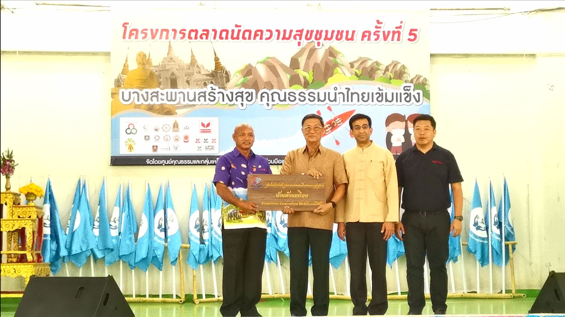 นอกจากนี้ องค์กรภาคีเครือข่ายขับเคลื่อนคุณธรรมจากจังหวัดต่างๆ ทั่วประเทศ ยังได้รับป้ายชุมชนเข้มแข็งเป็นสุขตามแนวทางเครือข่ายความสุขชุมชน ปี 2563 จำนวน 17 ชุมชน และ รับธงสัญลักษณ์ รวมพลังขับเคลื่อนสังคมคุณธรรม จำนวน 43 ชุมชน พร้อมประกาศเจตนารมย์การขับเคลื่อนของเครือข่ายความสุขชุมชน