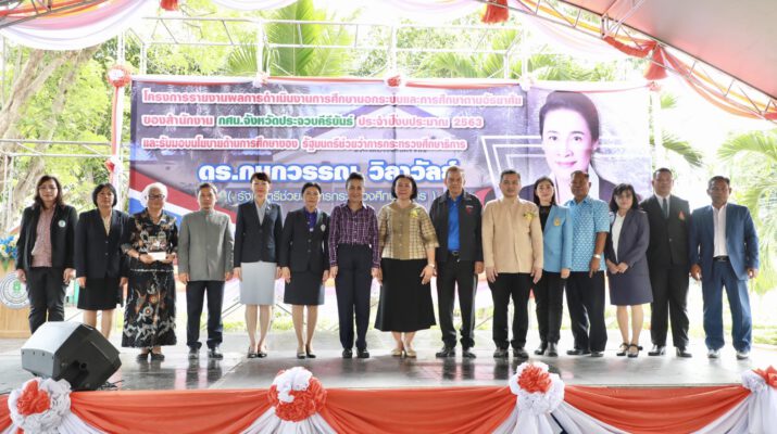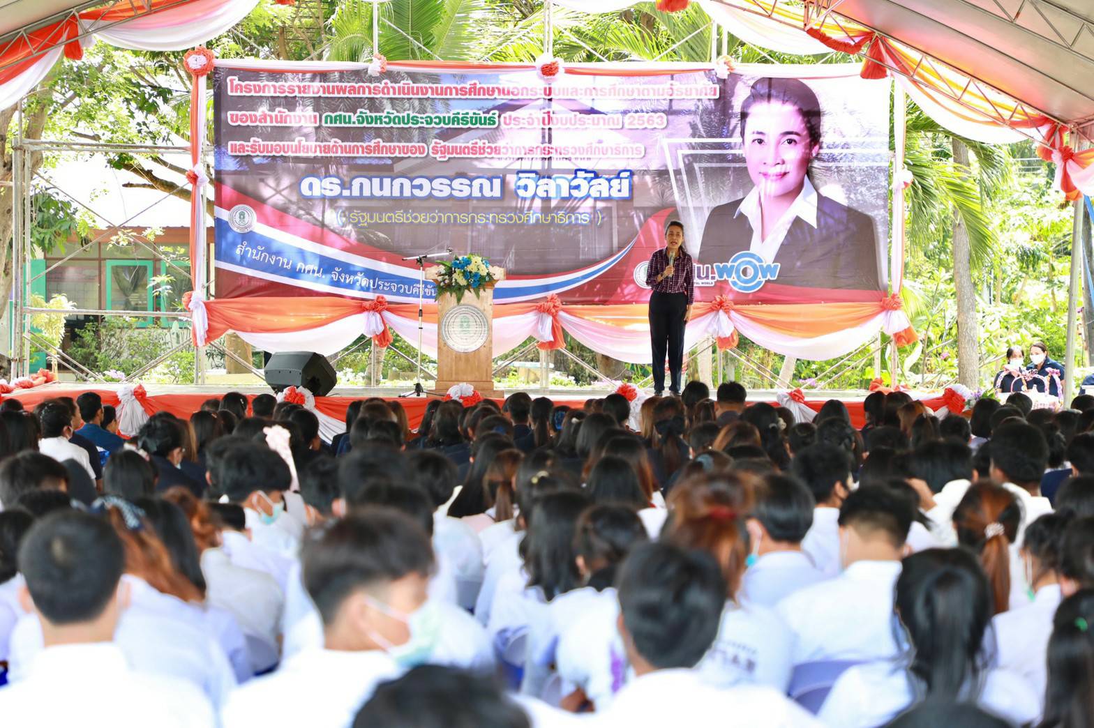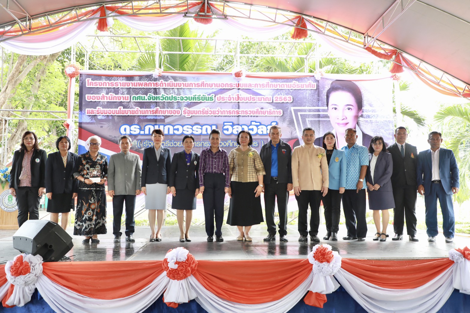 รมช.ศึกษาธิการ กล่าวตอนหนึ่งว่า สำนักงาน กศน.จังหวัดประจวบคีรีขันธ์ ได้มีการส่งเสริมสนับสนุนให้สถานศึกษาจัดการศึกษาตามหลักปรัชญาเศรษฐกิจพอเพียง และมุ่งสร้างพื้นฐานการเป็นสมาชิกที่ดี สามารถพึ่งพาตนเอง รู้เท่าทันการเปลี่ยนแปลงในโลกยุคปัจจุบัน โดยมีความโดดเด่นด้านการพัฒนาผลิตภัณฑ์แบรนด์ กศน. ONIE ประจำปีงบประมาณ 2563 ซึ่งผลิตภัณฑ์เหล่านี้สะท้อนให้เห็นถึงภูมิปัญญาท้องถิ่น วิถีชีวิตชาวบ้าน ตลอดจนวัฒนธรรมที่ดีงามของการเรียนรู้ เน้นงานฝีมือที่สามารถพัฒนาและเพิ่มคุณค่าของวัสดุท้องถิ่น และไม่ทำลายสิ่งแวดล้อม สอดคล้องกับนโยบายไทยแลนด์ 4.0 สร้างความมั่นคง มั่งคั่ง และยั่งยืน