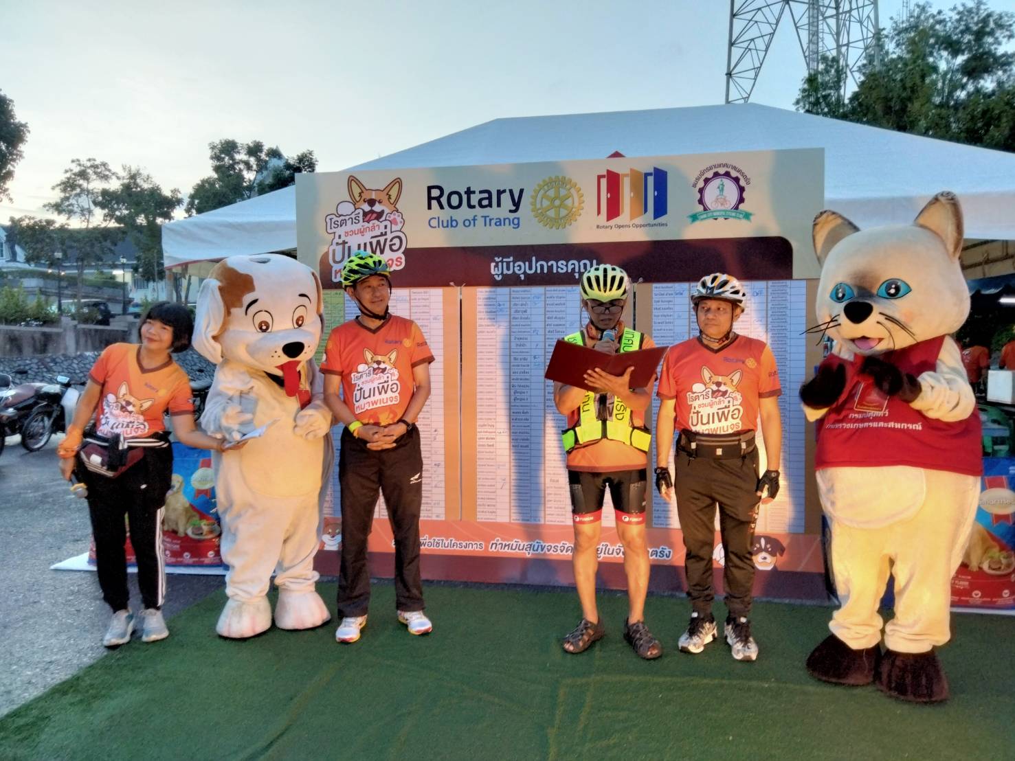 ณ ลานพระบรมราชานุสาวรีย์ รัชกาลที่ 5 ศาลากลางจังหวัดตรัง นายขจรศักดิ์ เจริญโสภา ผู้ว่าราชการจังหวัดตรัง เป็นประธานเปิดกิจกรรม “โรตารี่ชวนผู้กล้า ปั่นเพื่อหมาพเนจร” และมอบประกาศนียบัตรให้กับผู้สนับสนุนการจัดกิจกรรม ทั้งนี้ผู้ว่าราชการจังหวัดตรัง ได้กล่าวว่า ตามพระปณิธานของศาสตราจารย์ ดร.สมเด็จพระเจ้าน้องนางเธอ เจ้าฟ้าจุฬาภรณวลัยลักษณ์ อัครราชกุมารี กรมพระศรีสวางควัฒนวรขัตติยราชนารี พระองค์ท่านทรงห่วงใยปัญหาโรคพิษสุนัขบ้าและมีพระประสงค์ให้โรคพิษสุนัขบ้าหมดไปจากประเทศไทย ดังนั้น เพื่อสนองพระปณิธานและพระวิสัยทัศน์ดังกล่าว จังหวัดตรังจึงร่วมกับสโมสรโรตารี่ตรัง จัดกิจกรรม “โรตารี่ชวนผู้กล้า ปั่นเพื่อหมาพเนจร” ขึ้น และจากการสำรวจประชานสุนัขและแมวขององค์กรปกครองส่วนท้องถิ่นจังหวัดตรังในปี 2563 พบว่ามีประชากรสุนัขและแมวในพื้นที่จังหวัดตรังจำนวนประมาณ 137,409 ตัว สุนัขและแมวไม่มีเจ้าของในจังหวัดตรัง ประมาณ 20,000 ตัว และคาดว่าจะมีการเพิ่มของประชากรสัตว์ดังกล่าวในอัตราร้อยละ 15 ในทุก ๆ โดยสุนัข 1 ตัวจะสามารถเพิ่มจำนวนประชากรได้ถึง 20 ตัวภายในระยะเวลา 1 ปี จากสถานการณ์ดังกล่าวหากไม่เร่งรัดดำเนินการควบคุมประชากรสุนัขและแมวแล้ว จะทำให้มีจำนวนประชากรสัตว์จรจัดในพื้นที่เพิ่มขึ้น และจะเป็นสาเหตุหลักสำคัญในการแพร่โรคพิษสุนัขบ้าในพื้นที่เนื่องจากไม่สามารถฉีดวัคซีนป้องกันโรคให้แก่สัตว์จรจัดเหล่านี้ และสัตว์เหล่านี้จะมีโอกาสสัมผัสโรคพิษสุนัขบ้าจากสัตว์ที่ติดเชื้อมาก่อนด้วย