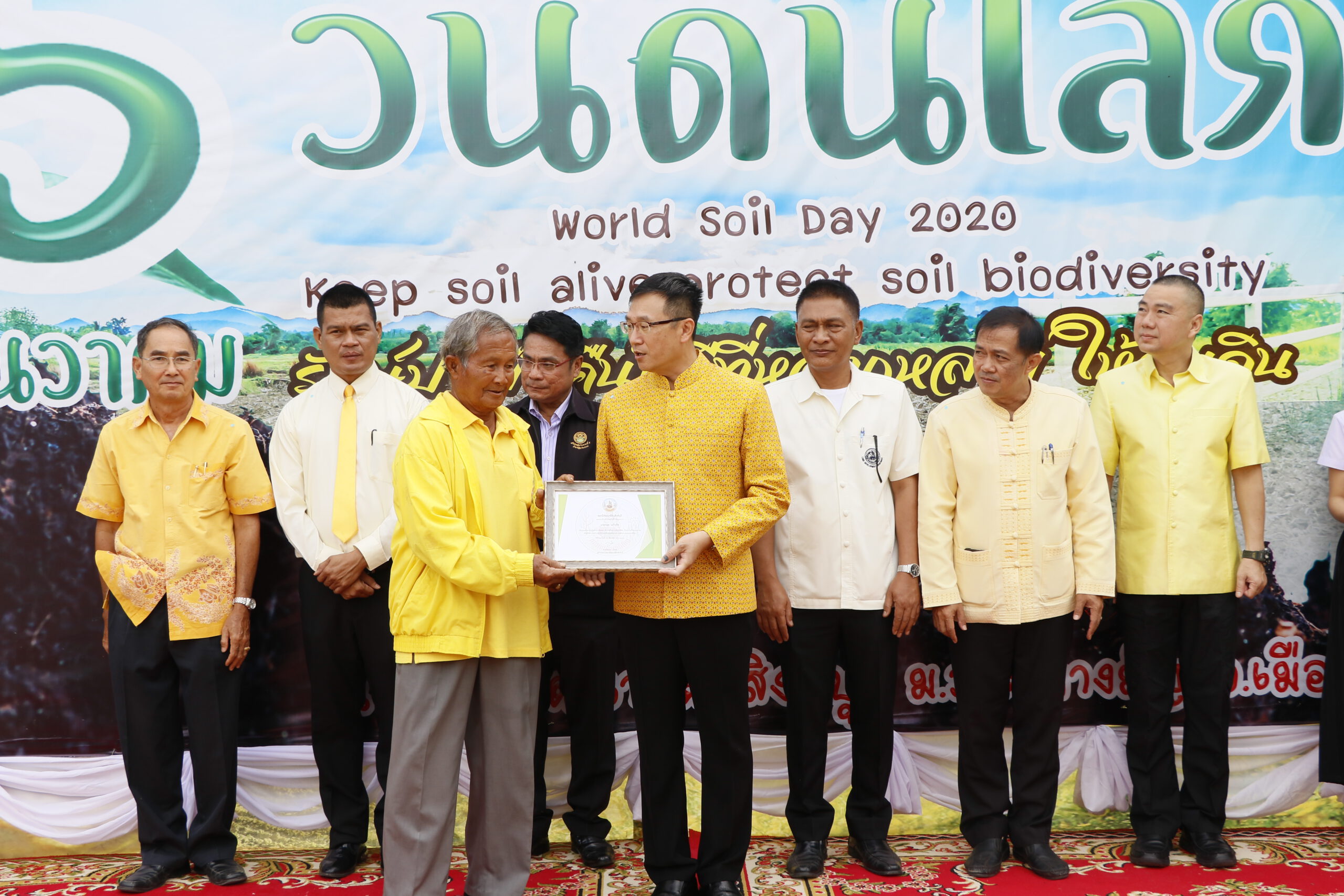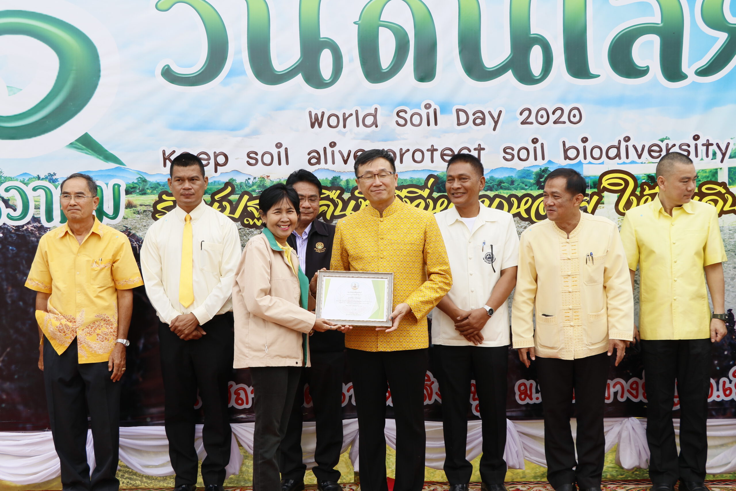 วันนี้ (1 ธ.ค.63) นายชำนาญวิทย์ เตรัตน์ ผู้ว่าราชการจังหวัดสิงห์บุรี เป็นประธานในพิธีน้อมรำลึกในพระมหากรุณาธิคุณ พระบาทสมเด็จพระบรมชนกาธิเบศร มหาภูมิพลอดุลยเดชมหาราช บรมนาถบพิตรงานวันดินโลก (World Soil Day) ประจำปี 2563 ภายใต้หัวข้อ“Keep soil alive, protect soil biodiversity” รักษ์ปฐพี คืนชีวีที่หลากหลายให้ผืนดินและมอบใบประกาศเกียรติคุณแก่หมอดินอาสาดีเด่นประจำปี 2563 ณ สถานีพัฒนาที่ดินสิงห์บุรี หมู่ที่ 3 ตำบลบางมัญ อำเภอเมืองสิงห์บุรี จังหวัดสิงห์บุรี