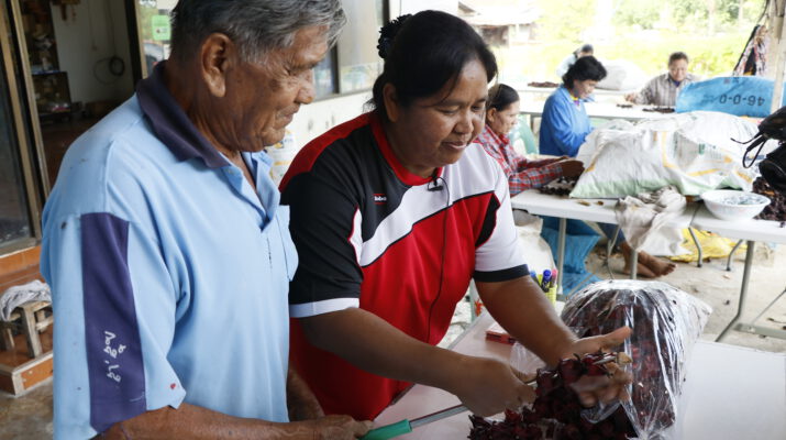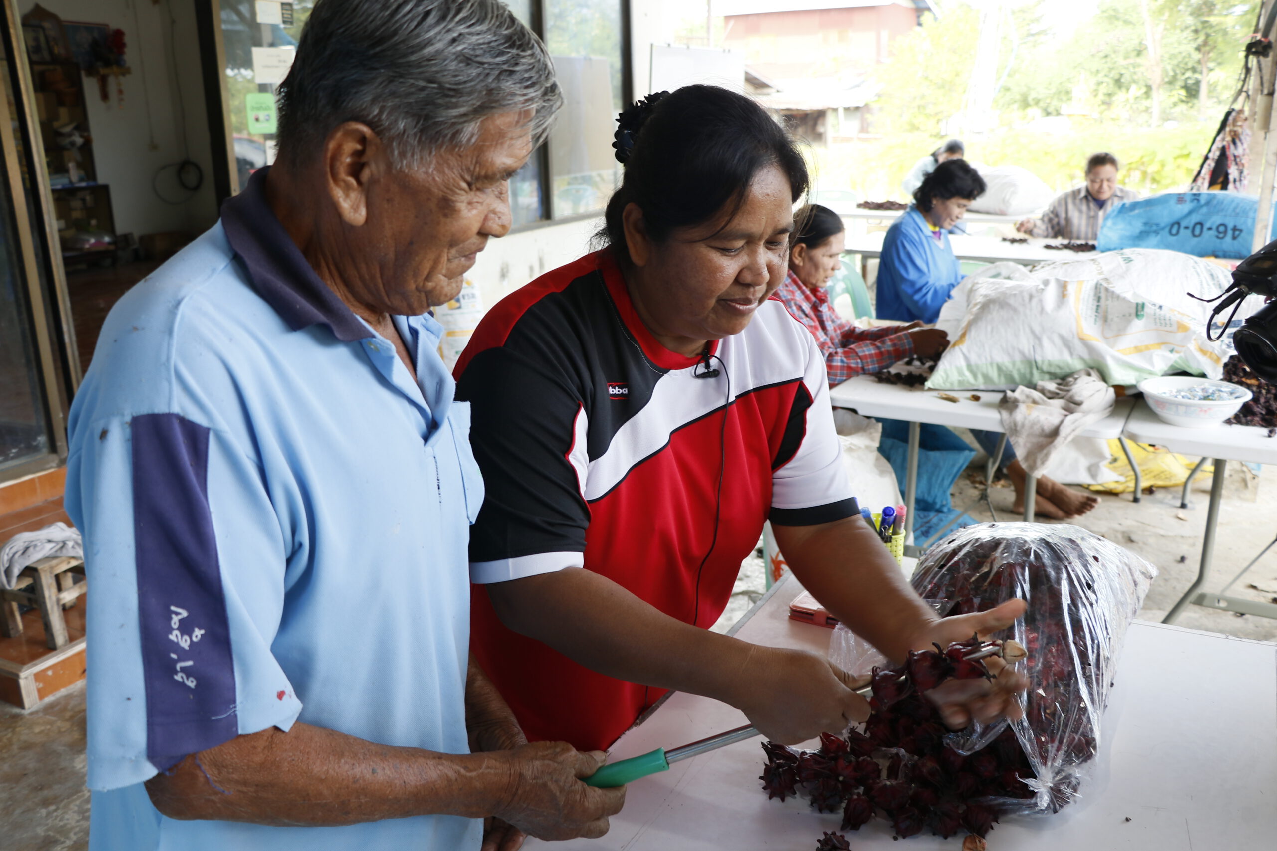 ตอนนี้บริษัทมาส่งงานครั้งละ 2 คันรถประมาณ 6 ตัน ประมาณ 6000 กิโลกรัมตกกิโลกรัมละ 3 บาท คาดว่างานแทงกระเจี๊ยบจะมีถึงเดือนเมษายน 2564 ซึ่งตรงกับช่วงว่างเว้นจากการทำนาพอดี นอกจากงานแทงกระเจี๊ยบกำนันยังรับงานปั้นมะขามเปียกปั้นส่งเกาหลีอีกด้วย เป็นงานที่ต้องใช้ฝีมือและความอดทนสูงแต่รายได้ดี