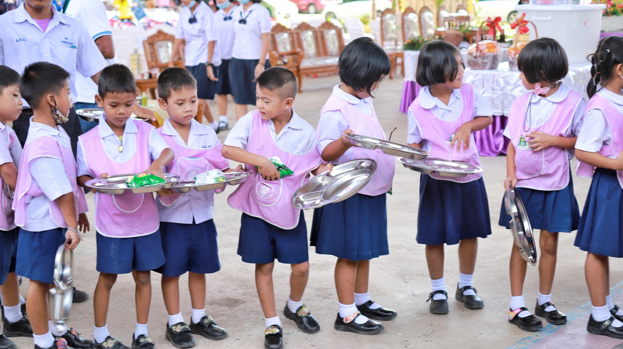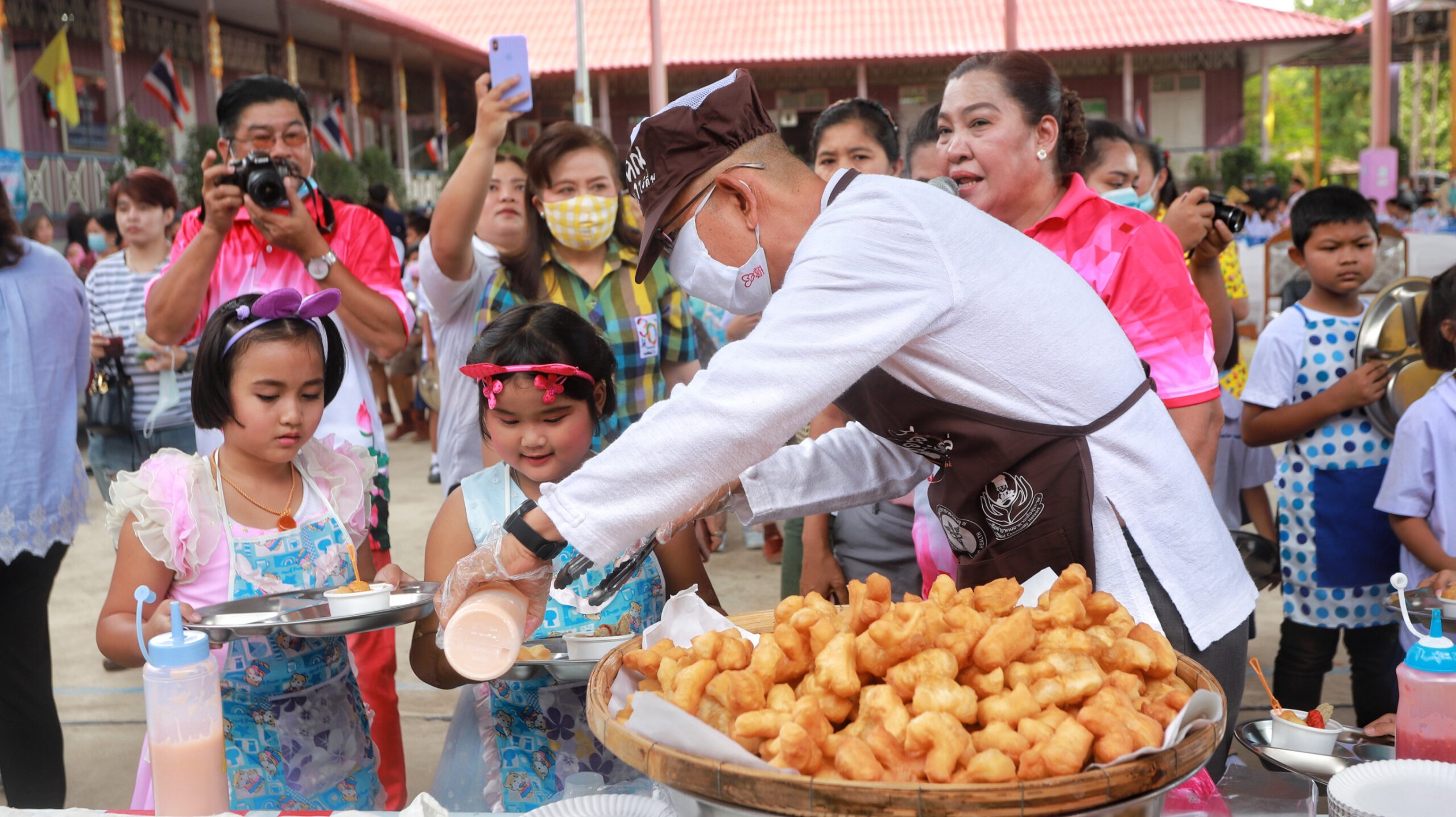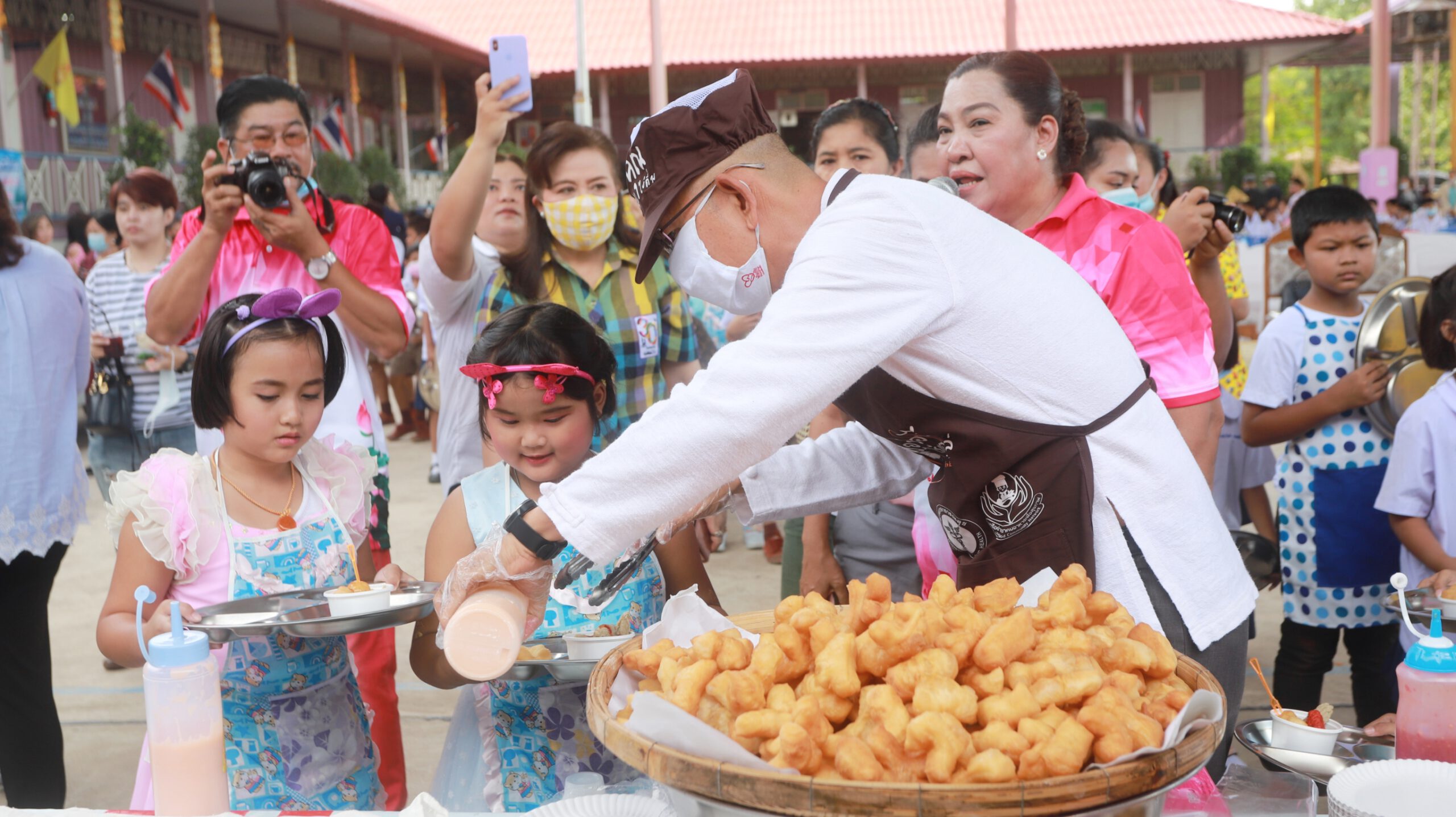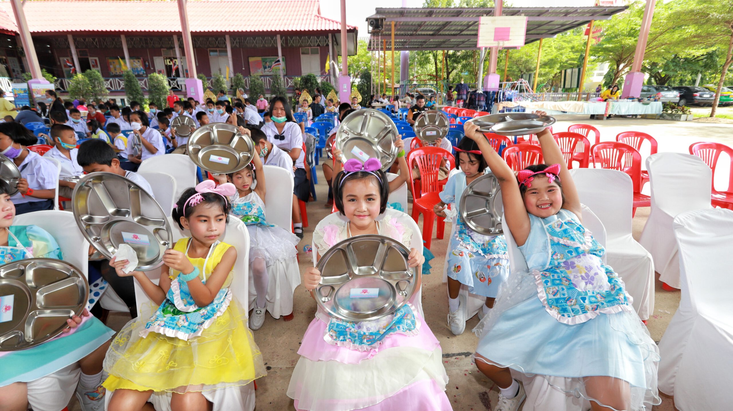 พ่อเมืองปทุมธานี ส่งมอบถาดอาหารในโครงการ“ถาดนี้เพื่อน้องอิ่มท้อง ปลอดภัย ” ครั้งที่ 2 ที่ โรงเรียนวัดท้ายเกาะ