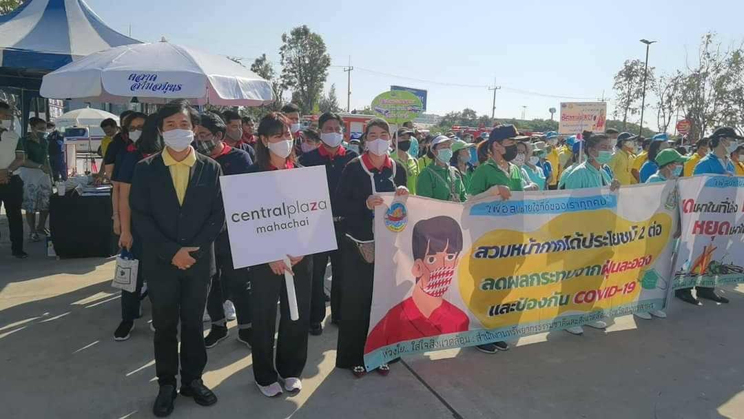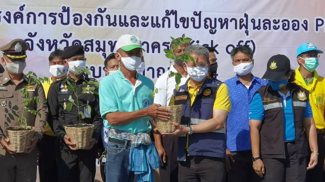 การจัดกิจกรรมรณรงค์ป้องกันและแก้ไขปัญหาฝุ่นละออง PM 2.5 ของจังหวัดสมุทรสาคร มีหน่วยงานภาครัฐ ภาคเอกชน และประชาชน เข้าร่วมเป็นจำนวน โดยภายในงานมีกิจกรรมการมอบต้นไม้ให้ผู้เข้าร่วมกิจกรรมนำไปปลูก การปล่อยขบวนรณรงค์ประชาสัมพันธ์ การฉีดพ่นละอองน้ำ การมอบหน้ากากอนามัย พร้อมให้ความรู้คำแนะนำแก่ประชาชน