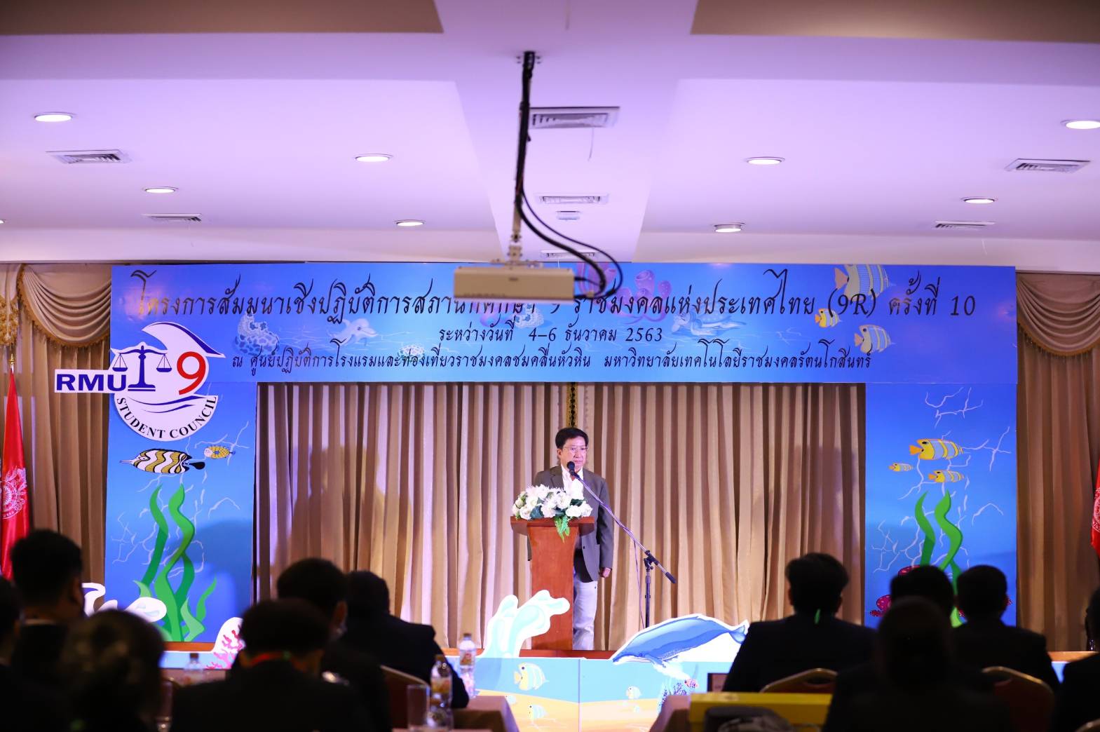โครงการสัมมนาเชิงปฏิบัติการสภานักศึกษาราชมงคลแห่งประเทศไทย (9R) ครั้งที่ 10 ณ ศูนย์ปฏิบัติการโรงแรมและการท่องเที่ยวราชมงคลชมคลื่นหัวหิน อำเภอหัวหิน จังหวัดประจวบคีรีขันธ์