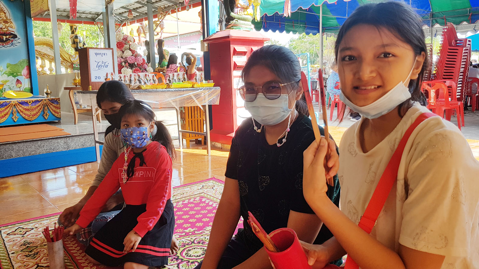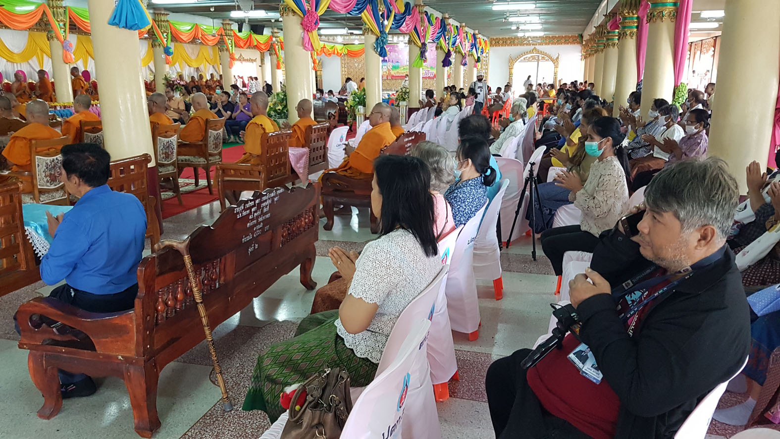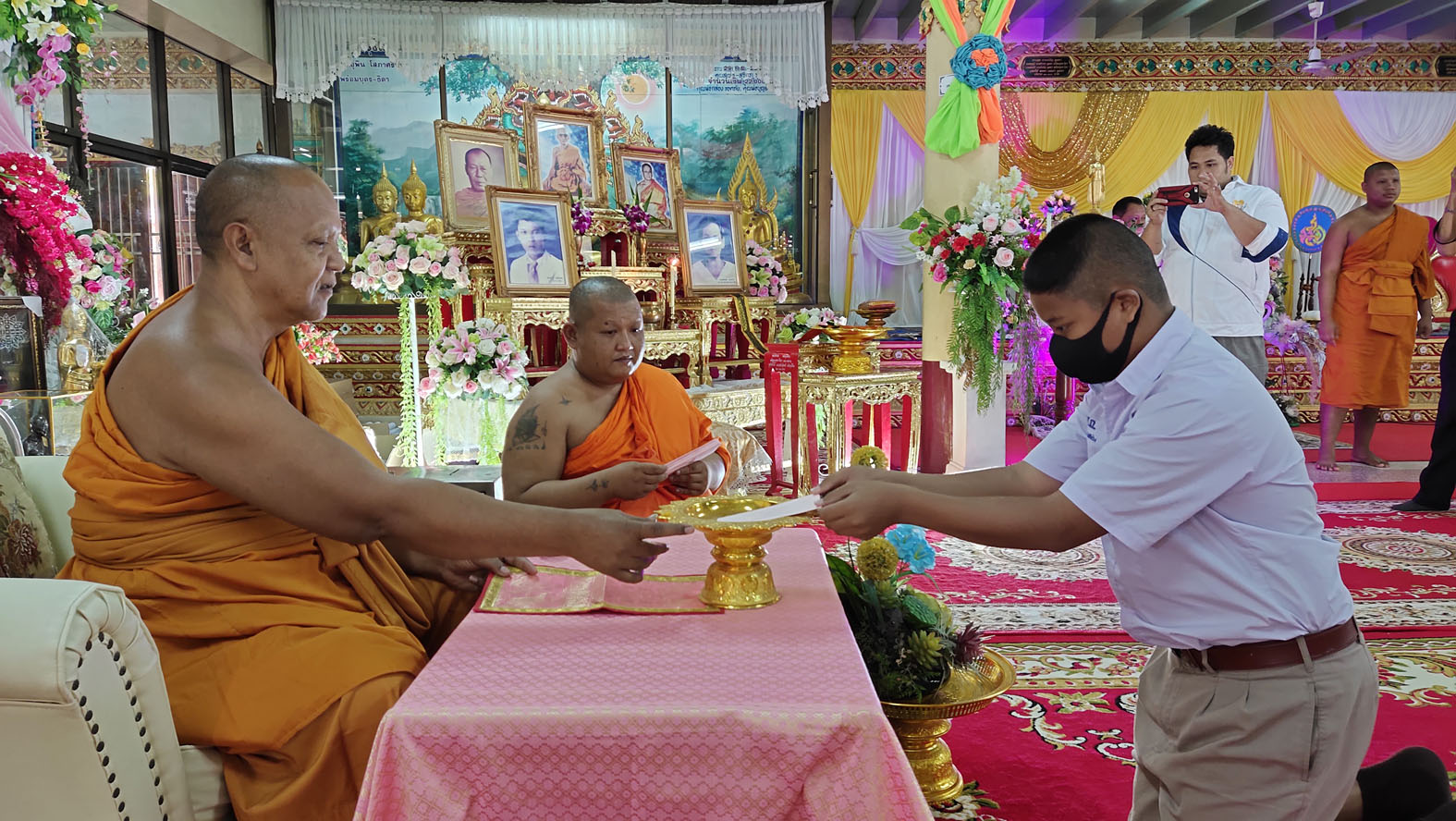 โดยพระครูสิริกิตติคุณ เจ้าคณะตำบลสระแก้ว เจ้าอาวาสวัดสังฆจายเถรได้บริจาคเงินให้กับวัดในปกครอง และมอบเงินสมทบทุนอาหารกลางวันให้กับโรงเรียนในพื้นที่ พร้อมกันนี้ได้มอบทุนการศึกษาให้เด็กนักเรียนที่เรียนดีแต่ฐานะยากจน พร้อมกับแจกวัตถุมงคลและปฏิทินปีใหม่เป็นของขวัญให้กับญาติโยมและประชาชนนักท่องเที่ยวที่มาร่วมงาน ขณะเดียวกันชาชนและลูกศิษย์ลูกหาที่มาร่วมงานได้ไปกราบไหว้ขอพรพระสังกัจจายน์องค์ใหญ่ที่สุดในประเทศไทยเพื่อความเป็นมงคลให้กับตัวเองและครอบครัวชาวบ้านบางคนได้ใช้มือลูบไล้ที่สะดือพระสังกัจจายน์ พร้อมอธิษฐานขอโชคขอเลขพร้อมกับใช้โทรศัพท์มือถือถ่ายส่องหาเลขเด็ด
