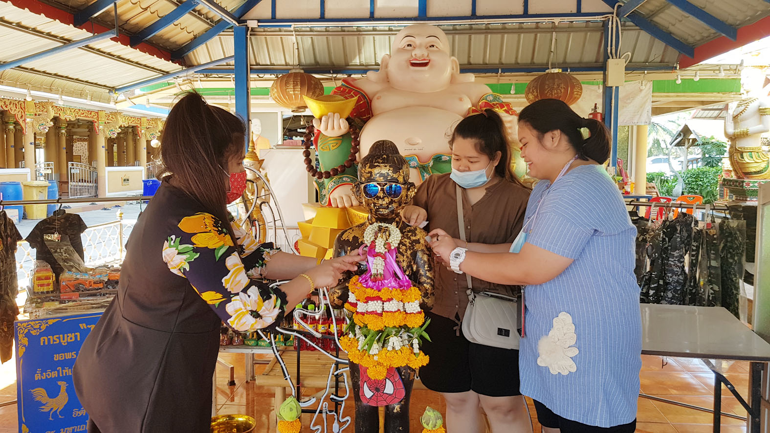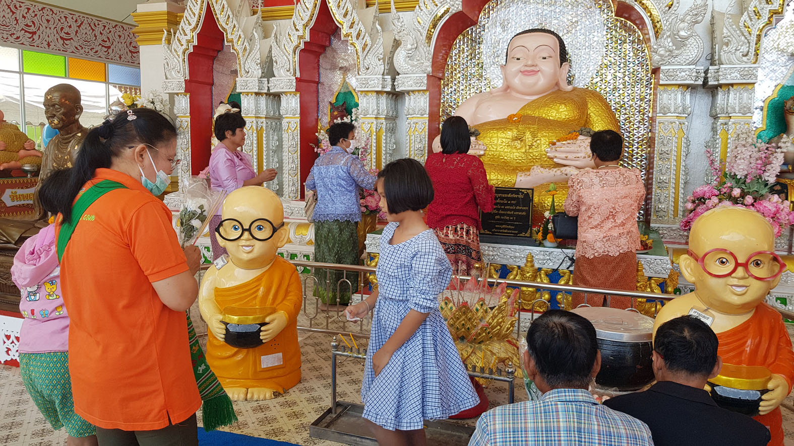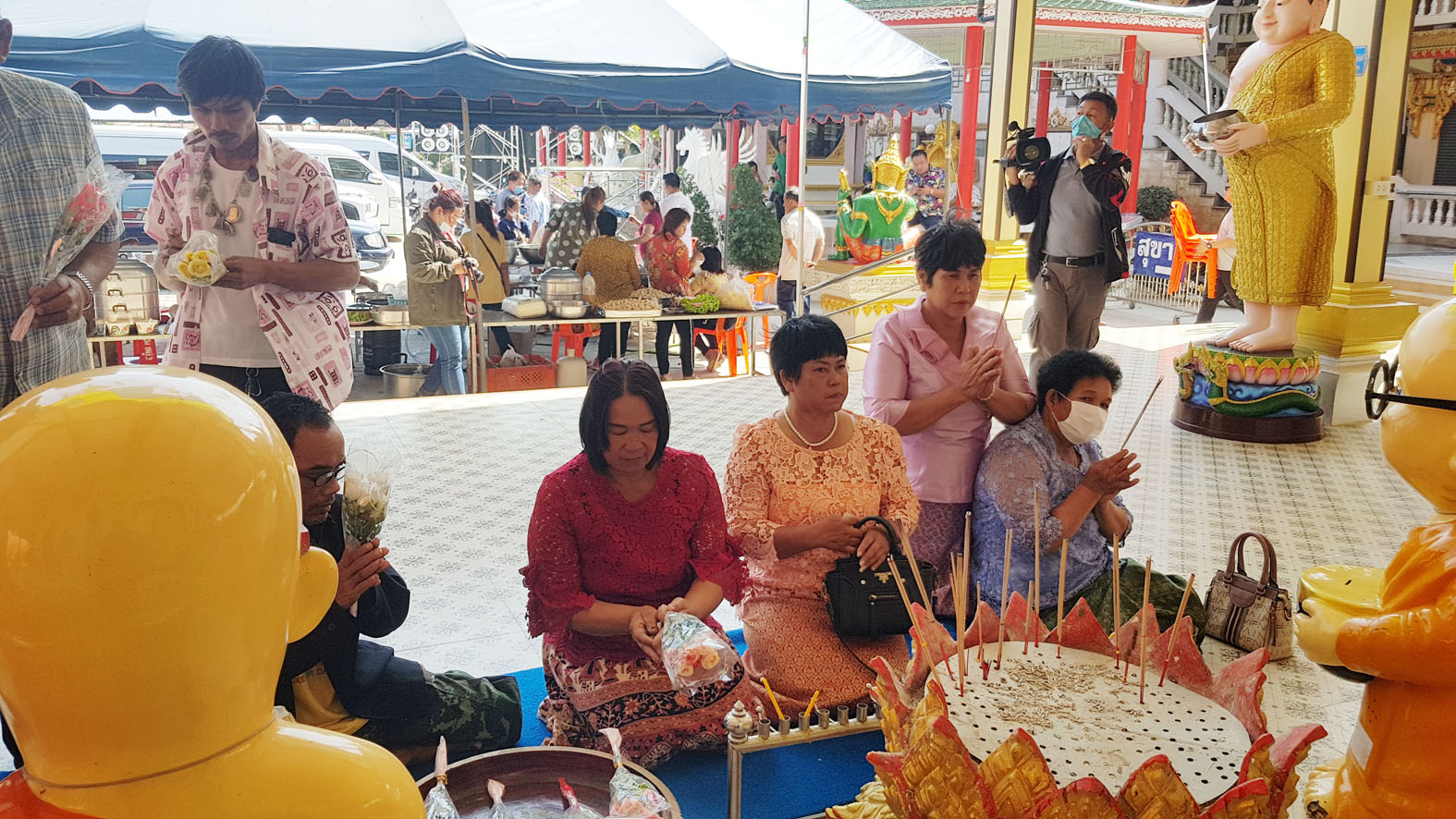 ประชาชน นักท่องเที่ยว แห่กราบไหว้ขอพร พระสังกัจจายน์องค์ใหญ่ที่สุดในประเทศ ขอพร ขอโชค ลาภไอ้ไข่หาเลขเด็ดแน่นวัด ในงานทำบุญอายุวัฒนมงคล เจ้าอาวาสวัดสังฆจายเถร
