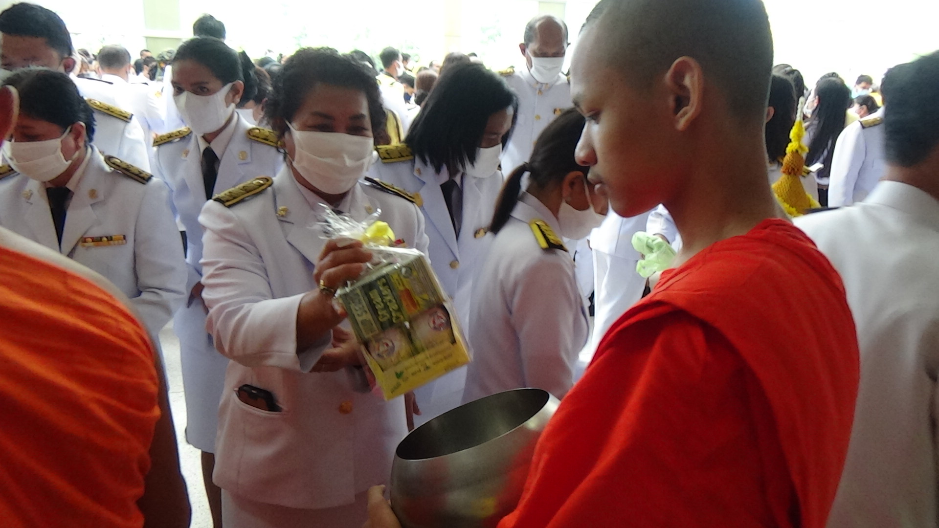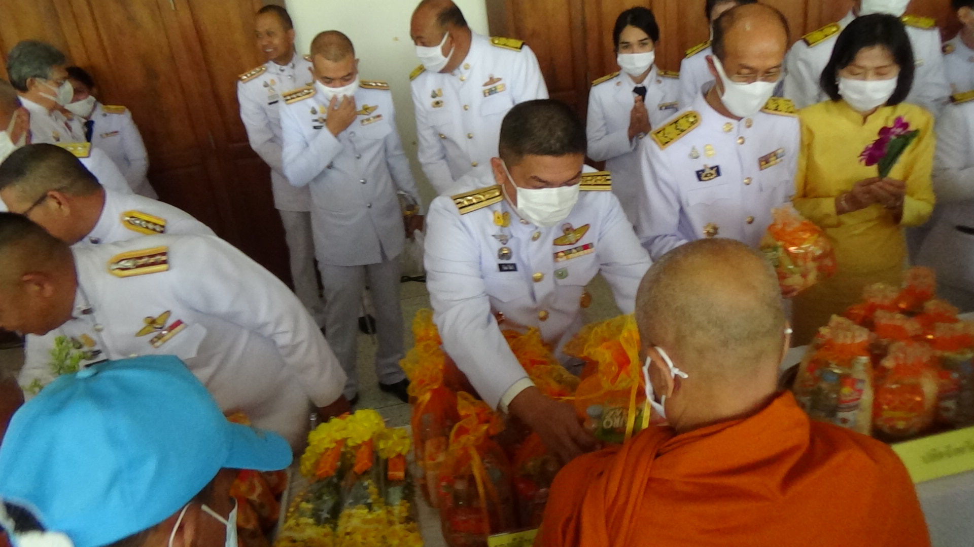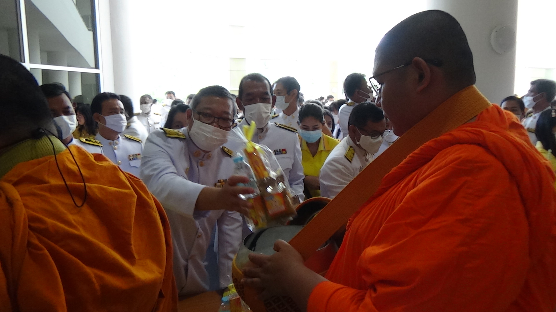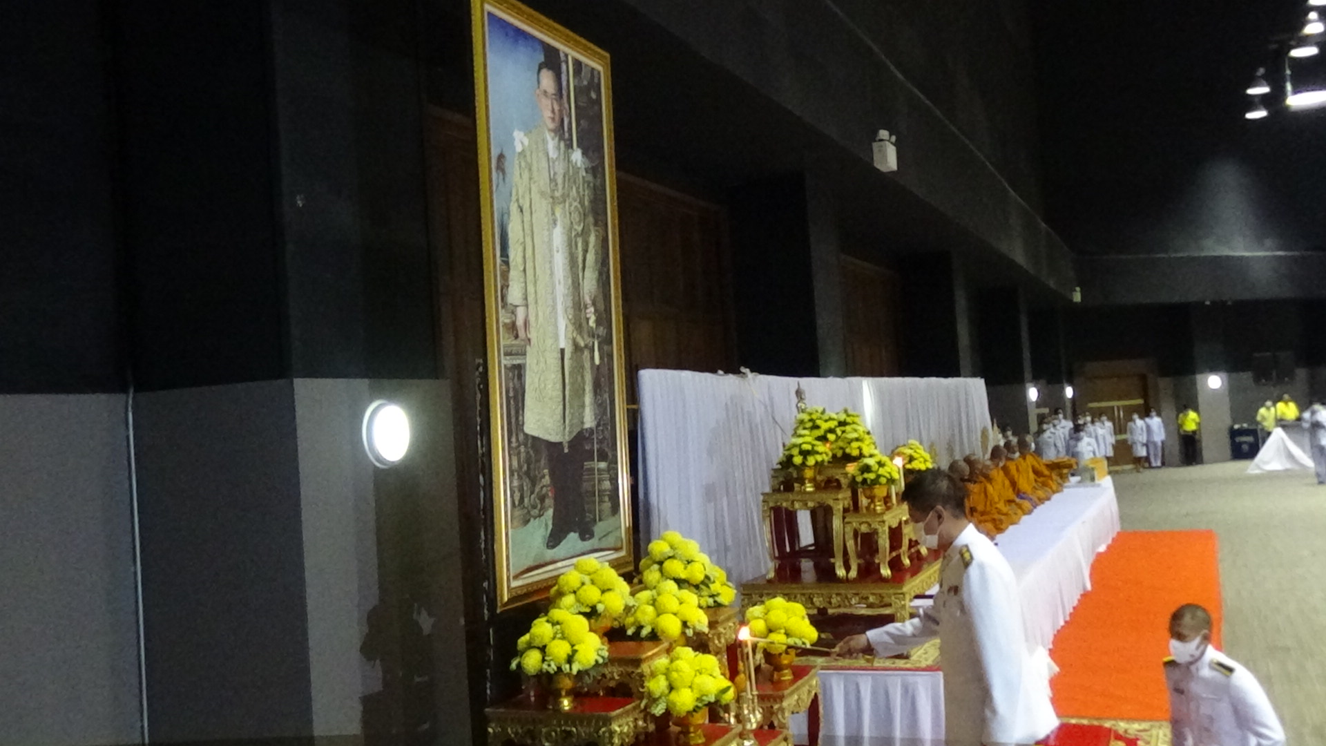 โดยพิธีทำบุญตักบาตรเริ่มตั้งแต่เวลา 07.00 น. ประธานในพิธีจุดธูปเทียน บูชาพระรัตนตรัยและจุดธูปเทียนเครื่องทองน้อยหน้าพระบรมฉายาลักษณ์พระบาทสมเด็จพระบรมชนกาธิเบศร มหาภูมิพลอดุลยเดชมหาราช บรมนาถบพิตร พระสงฆ์สวดพระพุทธมนต์ ประธานและข้าราชการชั้นผู้ใหญ่ถวายเครื่องไทยธรรมและทอดผ้าไตร จำนวน 10 ไตร หลังจากเสร็จสิ้นพิธีสงฆ์ผู้ว่าราชการจังหวัดตรังนำผู้ร่วมพิธีทำบุญตักบาตรพระสงฆ์และสามเณรจำนวน 89 รูป