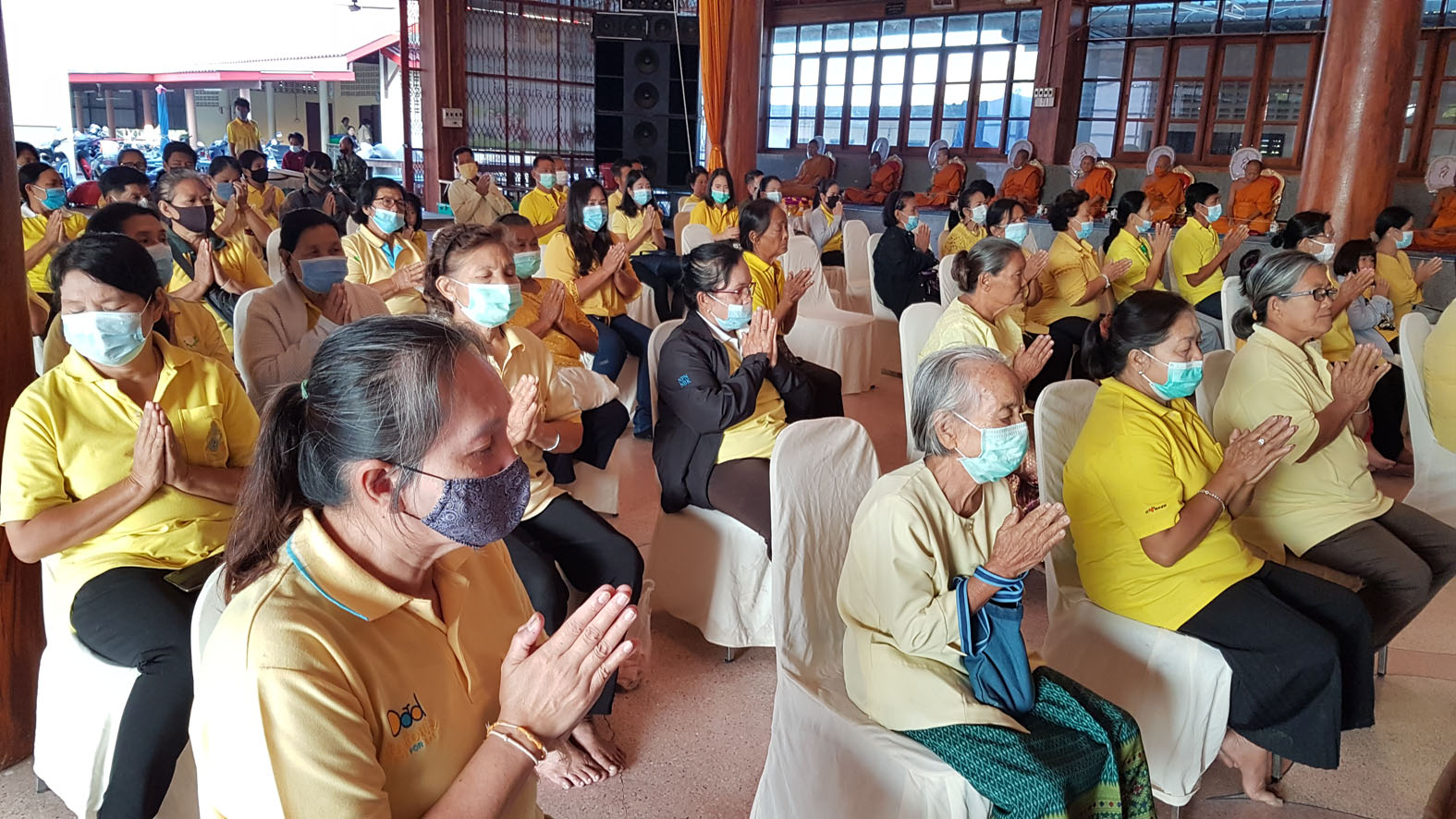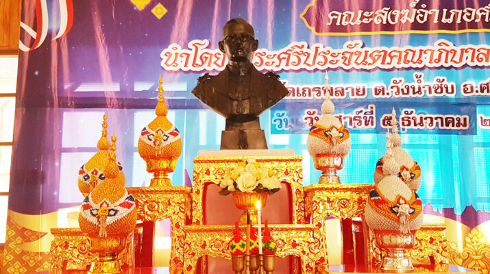 สุพรรณบุรี วัดเถรพลายจัดพิธีสวดเจริญพระพุทธมนต์วันชาติและวันพ่อแห่งชาติ