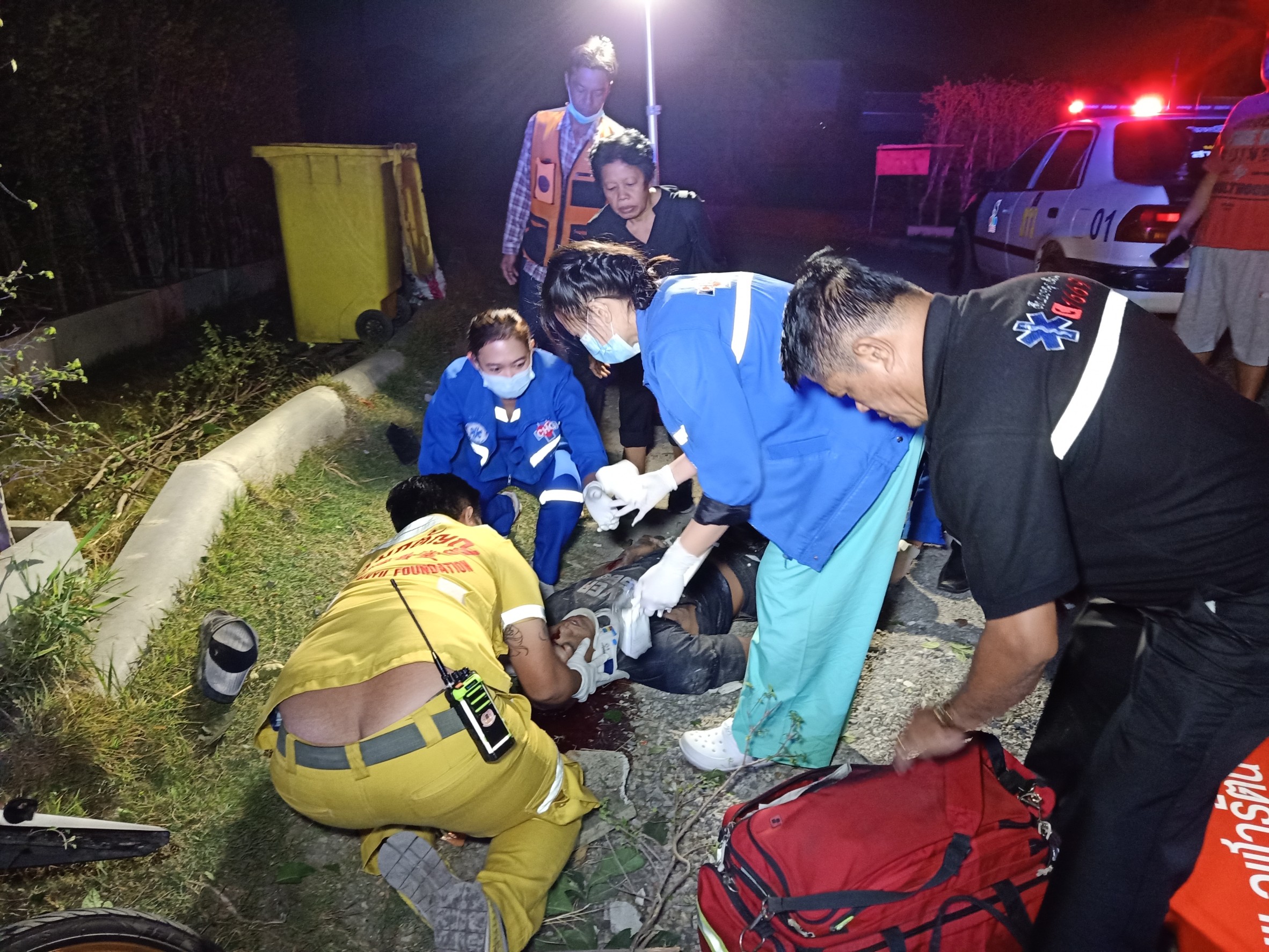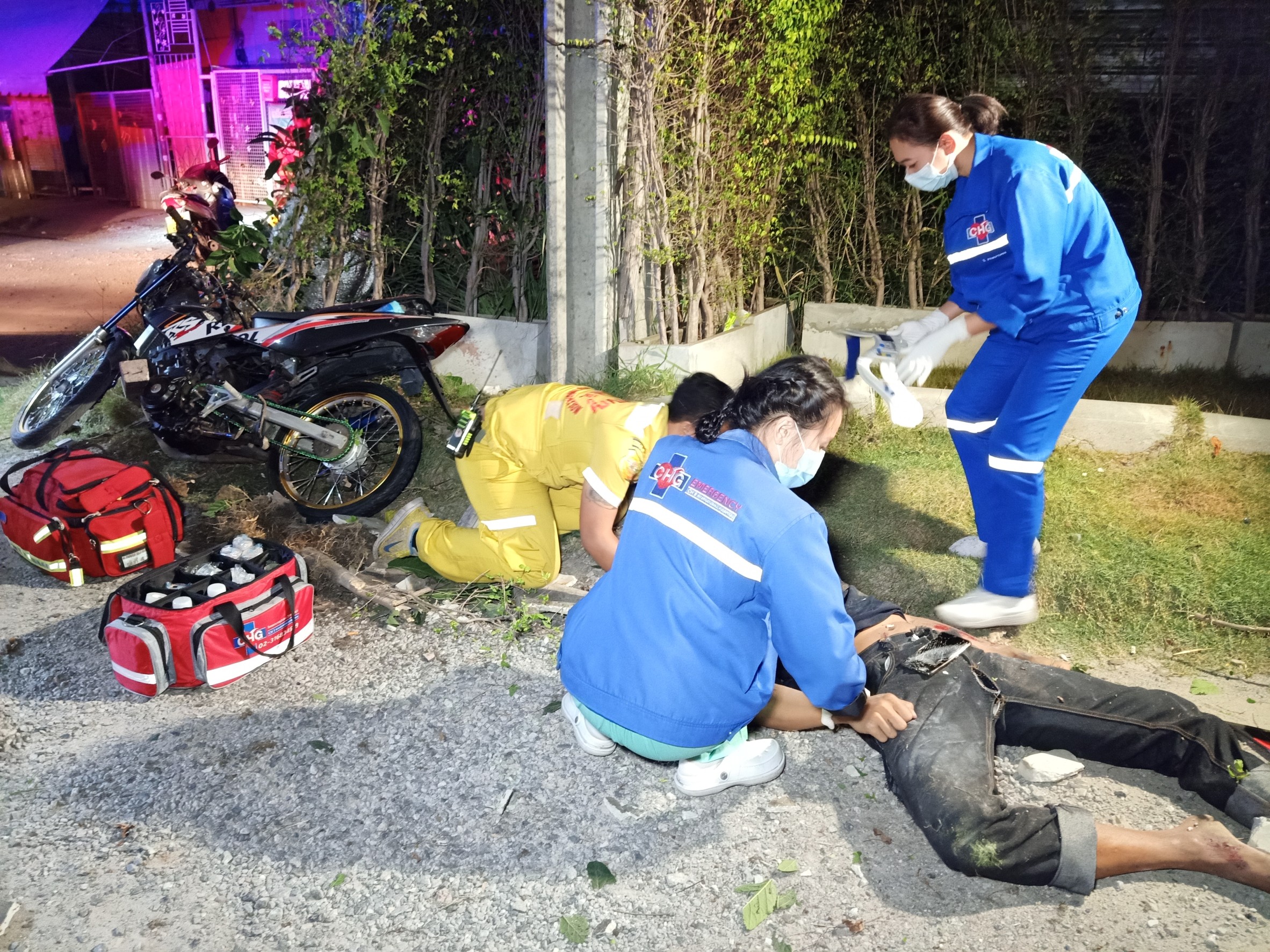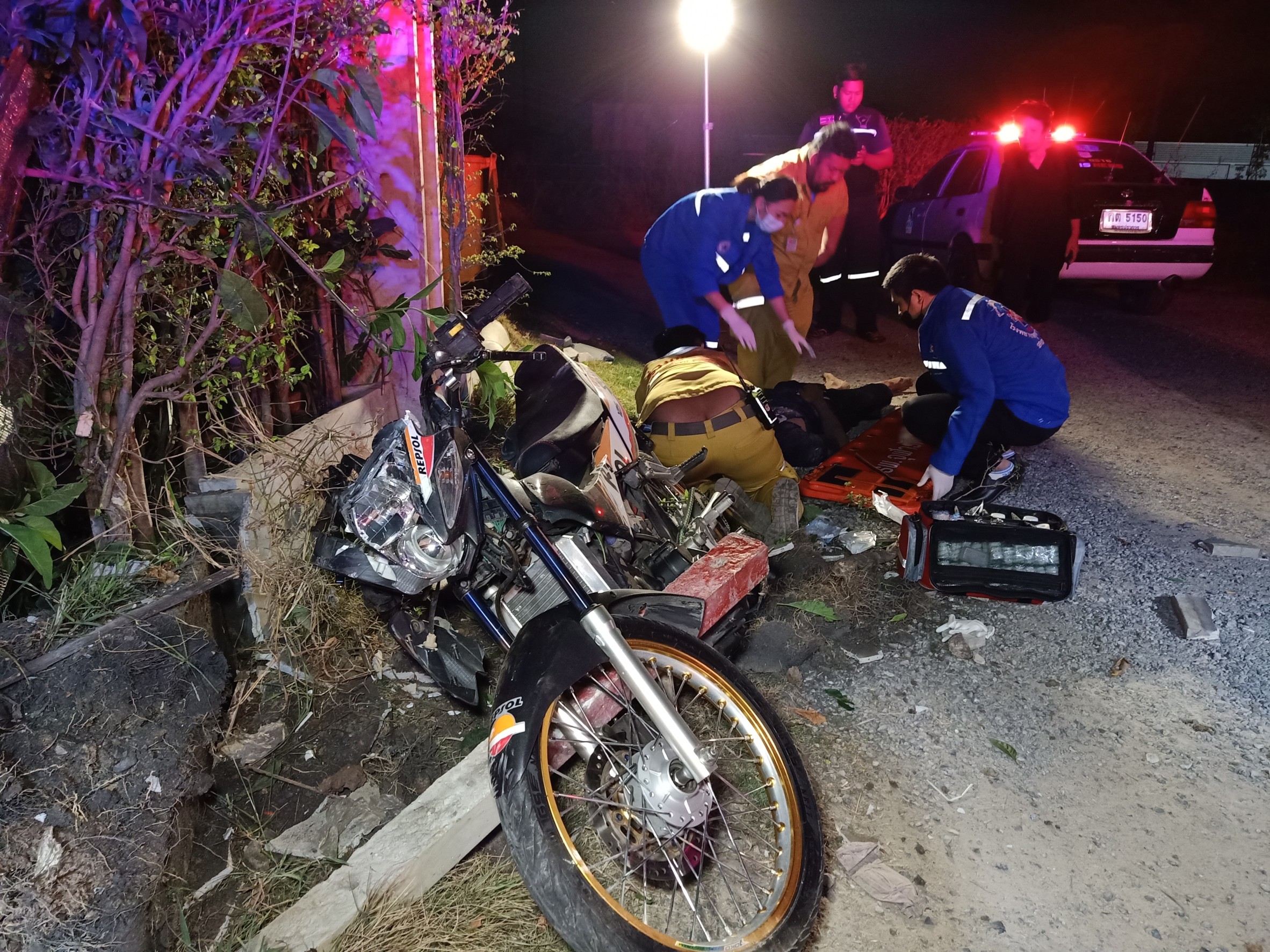 สมุทรปราการ นักกีฬาพายเรือทีมชาติขี่รถจยย.แหกโค้งพุ่งชนเสากำแพงเจ็บสาหัส