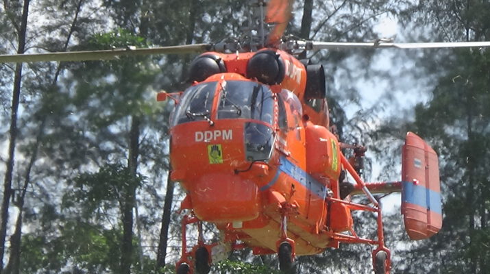 ที่ลานอเนกประสงค์กองพันทหารราบที่ 4 กรมทหารราบที่ 15 ค่ายพระยารัษฎานุประดิษฐ์ อำเภอห้วยยอด จังหวัดตรัง นายขจรศักดิ์ เจริญโสภา ผู้ว่าราชการจังหวัดตรัง พร้อมด้วย นายอาชวงศ์ สาริพัฒน์ ป้องกันและบรรเทาสาธารณภัยจังหวัดตรัง นายสราวุฒิ ธนาเจริญสกุล นายอำเภอเมืองตรัง นายรุทร์ อินนุพัฒน์ ผู้อำนวยการสำนักงานก่อสร้างชลประทานขนาดใหญ่ที่ 11 กรมชลประทาน ขึ้นเฮลิคอปเตอร์ ของกรมป้องกันและบรรเทาสาธารณภัย บินขึ้นสำรวจเส้นทางการไหลของน้ำแม่น้ำตรัง ที่ไหลหลากมาจากอำเภอทุ่งสง จังหวัดนครศรีธรรมราช ไหลมารวมกับแม่น้ำตรัง จนทำให้เกิดน้ำท่วมในหลายพื้นที่ของจังหวัดตรัง