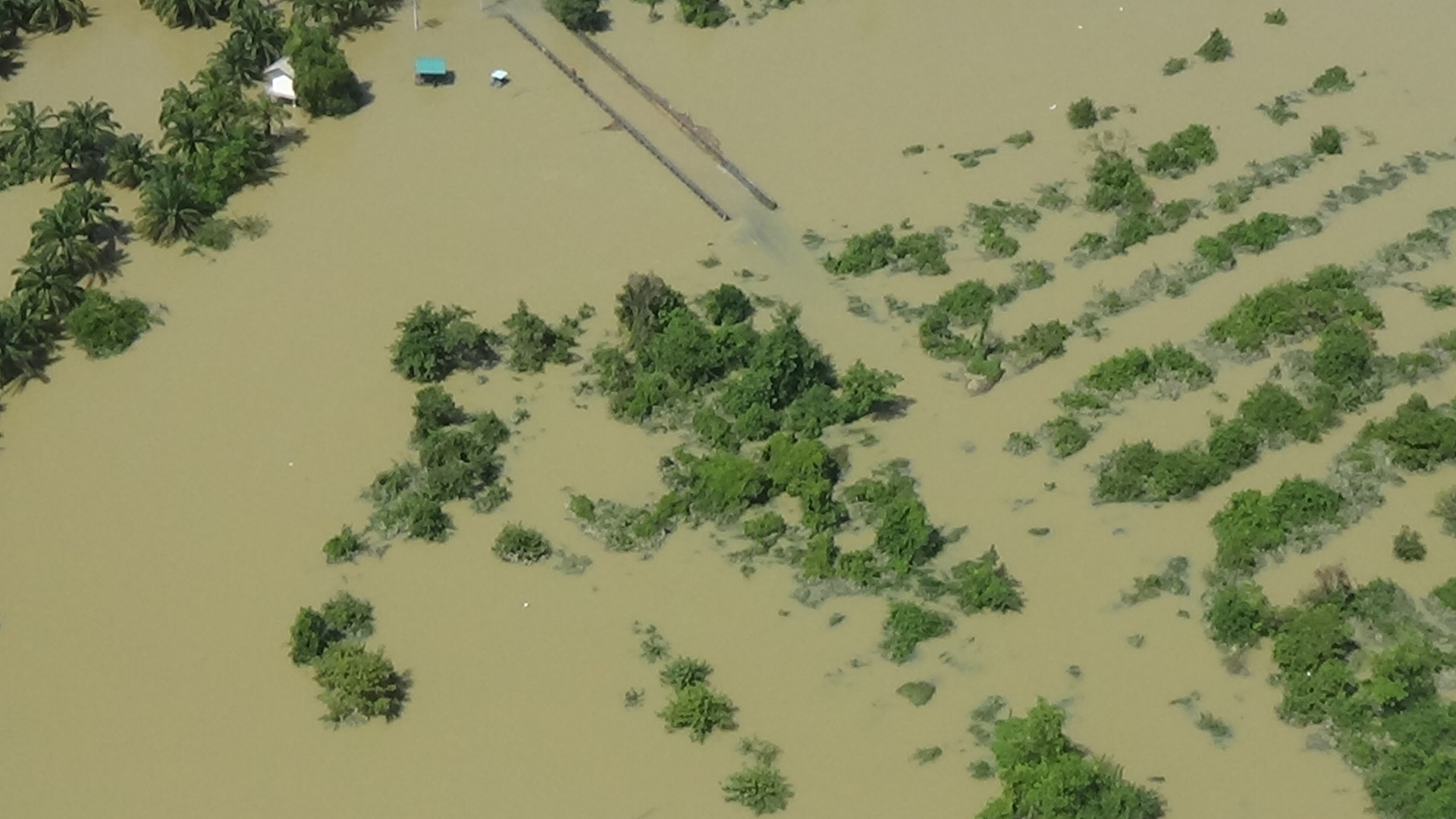 ทางด้านนายขจรศักดิ์ เจริญโสภา ผู้ว่าราชการจังหวัดตรัง กล่าวว่าได้รับความอนุเคราะห์จากกรมป้องกันและบรรเทาสาธารณภัยได้บินไปสำรวจแม่น้ำตรังและคลองระบายน้ำเลี่ยงเมืองของชลประทาน สภาพน้ำตอนนี้ยังทรงตัวยังมีการล้นตัวกั้นคันของโครงการ แต่ที่ไปดูในภาพรวมพื้นที่ในที่สูงส่วนใหญ่จะเป็นสวนยางพารา จะมีบ้านเรือนของพี่น้องประชาชนที่ได้รับผลกระทบ ตามที่ผมได้นำเรียนว่าในพื้นที่ 4 ตำบลก็คือ บางรัก หนองตรุด นาโต๊ะหมิง นาตาล่วง ตอนนี้สภาพที่ไปดูพร้อมด้วยทางชลประทานแนวโน้มของน้ำลดลงทุกชั่วโมงลดลงประมาณ 5-10 ซม.ในเรื่องของระดับน้ำปลายทางที่อำเภอกันตัง ทางชลประทานก็ได้ไปติดตั้งเครื่องผลักดันน้ำเพื่อจะเร่งระบายน้ำออกสู่ทะเลอันดามันให้เร็วที่สุด