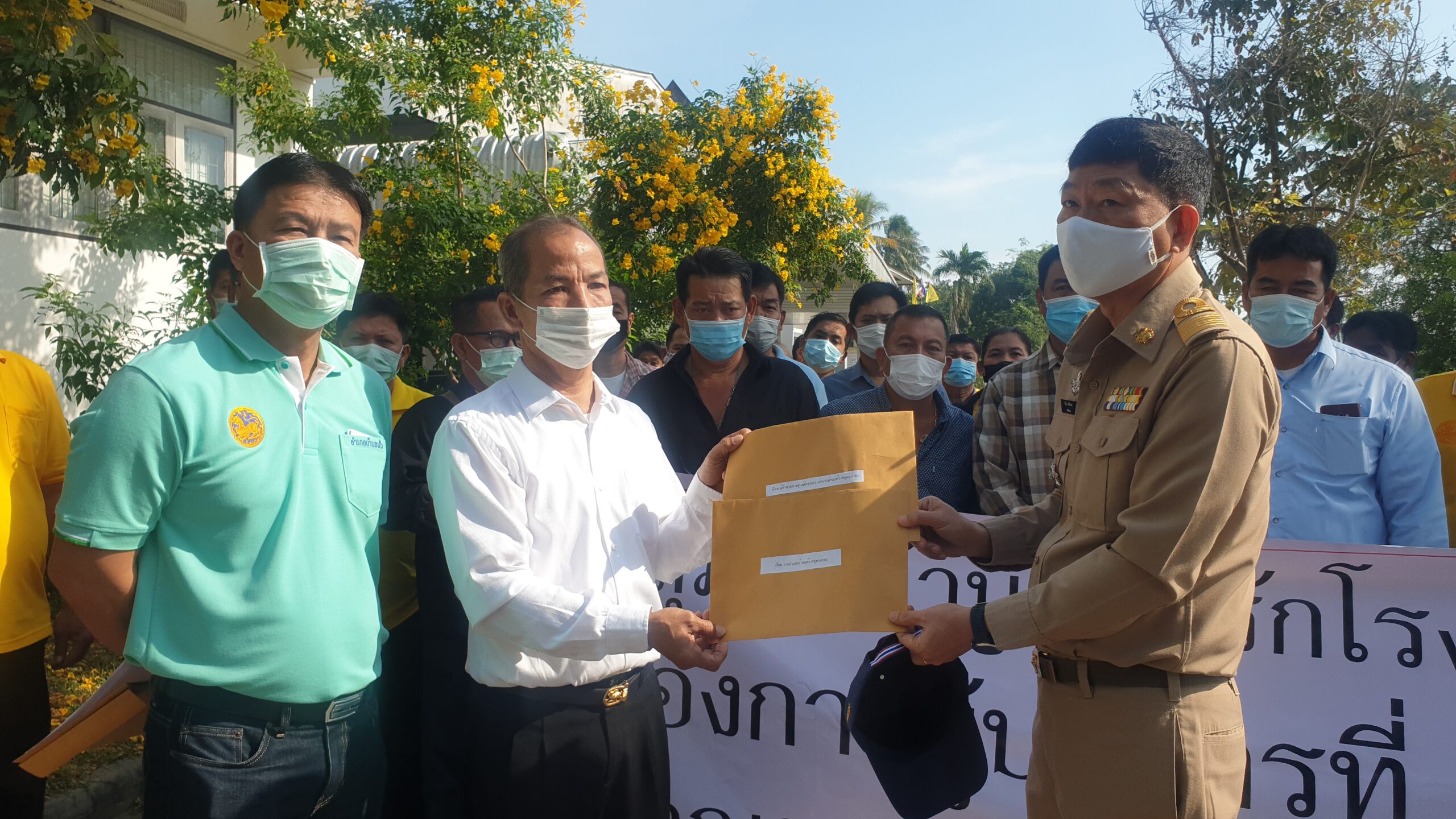เมื่อเวลาประมาณ 09.00 น. ของวันที่ 07 ธันวาคม 2563 “กลุ่มฅนบ้านแพ้วรักโรงพยาบาล” เกือบ 100 คน ได้นัดรวมตัวกันที่บริเวณหน้าที่ว่าการอำเภอบ้านแพ้ว จ.สมุทรสาคร เพื่อยื่นหนังสือต่อนายอำเภอบ้านแพ้ว หรือผู้ที่ได้รับมอบหมายตามอำนาจหน้าที่ โดยเป็นการขอให้ยุติการปฏิบัติหน้าที่ของ ผู้อำนวยการโรงพยาบาลบ้านแพ้ว (องค์การมหาชน) เนื่องด้วยจากการปฏิบัติหน้าที่ของผู้อำนวยการโรงพยาบาลบ้านแพ้ว (องค์การมหาชน) ที่ผ่านมา พบว่ามีปัญหาในการปฏิบัติงานซึ่งส่งผลกระทบต่อภาพลักษณ์และชื่อเสียงของโรงพยาบาลบ้านแพ้ว (องค์การมหาชน) จึงขอเรียกร้องให้ 1. ให้ผู้อำนวยการหยุดปฏิบัติหน้าที่จนกว่าจะมีการตรวจสอบความถูกต้องของข้อกฎหมายของการปฏิบัติงาน ของผู้อำนวยการโรงพยาบาลบ้านแพ้ว ในฐานะผู้อำนวยการและจักษุแพทย์,2. ขอให้มีการตรวจสอบ เรื่องกรณีการทุจริตของเจ้าหน้าที่เภสัชกร โรงพยาบาลบ้านแพ้ว สาขาสาทร และเจ้าหน้าที่อาชีวอนามัย ของโรงพยาบาลบ้านแพ้ว ภายในกำหนด 30 วัน และ 3. ขอให้อนุญาตและอำนวยความสะดวกแก่คณะกรรมการตรวจสอบภายในโรงพยาบาลบ้านแพ้วเพื่อให้ตรวจสอบความถูกต้อง โปร่งใสและสร้างความเชื่อมั่นต่อภาคประชาชน โดยเฉพาะเรื่อง การจัดซื้อจัดจ้างของ โรงพยาบาลบ้านแพ้ว สำหรับในการยื่นหนังสือครั้งนี้ก็มีนายจิโรจน์ ทองเต็ม ประธานชมรมกำนัน ผู้ใหญ่บ้านอำเภอบ้านแพ้ว ในฐานะคณะกรรมการบริหารโรงพยาบาลบ้านแพ้วฯ และนายสุทธิชัย แซ่กอ ผู้ใหญ่ม.4 ตำบลหลักสอง อ.บ้านแพ้ว เป็นผู้ยื่นต่อนายวิชิต ศรีจันทร์ ปลัดอาวุโสอำเภอบ้านแพ้ว ปฏิบัติหน้าที่แทนนายอำเภอบ้านแพ้ว โดยหลังจากนี้ปลัดอาวุโสอำเภอบ้านแพ้ว ก็จะนำเสนอต่อผู้บังคับบัญชาตามลำดับต่อไป