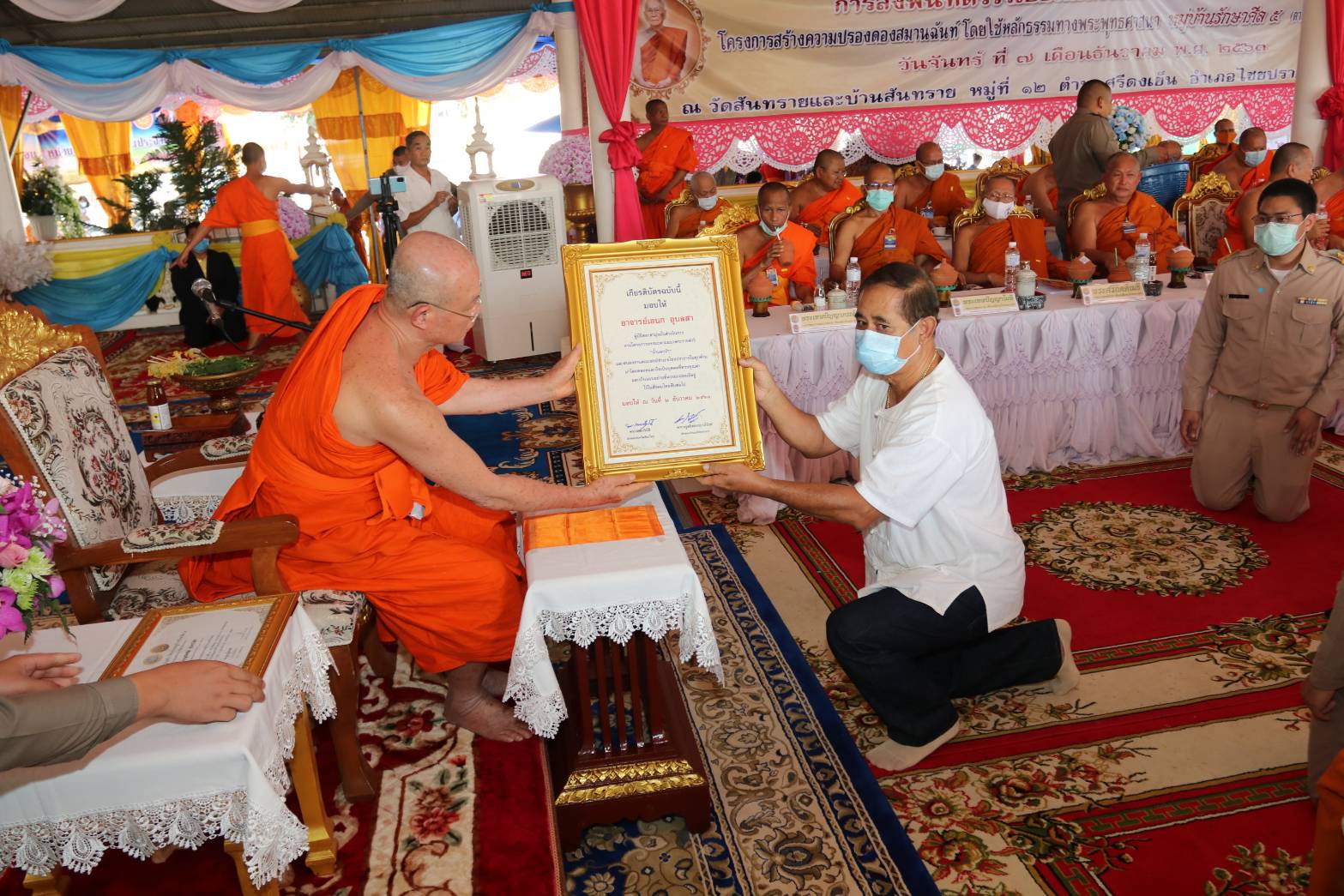 จากนั้นพระพรหมเสนาบดี มอบเกียรติคุณให้กับผู้ที่ปฏิบัติตนและบำเพ็ญตนรักษาศีล5ให้กับส่วนราชการประชาชนและมีพิเศษได้มอบใบเกียรติคุณให้กับนายเอนก อุบลสา ข้าราชบำนาญ ที่บำเพ็ญตนช่วยเหลืองานปลูกป่าเพื่อรักษาต้นน้ำของ”โครงการป่ารักษ์น้ำ”ตามแนวทางพระราชดำริในหลวงรัชกาลที่9 ซึ่งพระครูสถิตธรรมาภิรักษ์ประธานโครงการได้ดำเนินงานมาตั้งแต่ปี2535 จนทุกวันนี้เป็นป่าต้นแบบแล้ว แล้วคณะเดินทางตรวจครอบครัวศีล5 ระดับ5ดาวและศูนย์เรียนรู้ปั้นหม้อ คณะจึงเดินทางกลับ