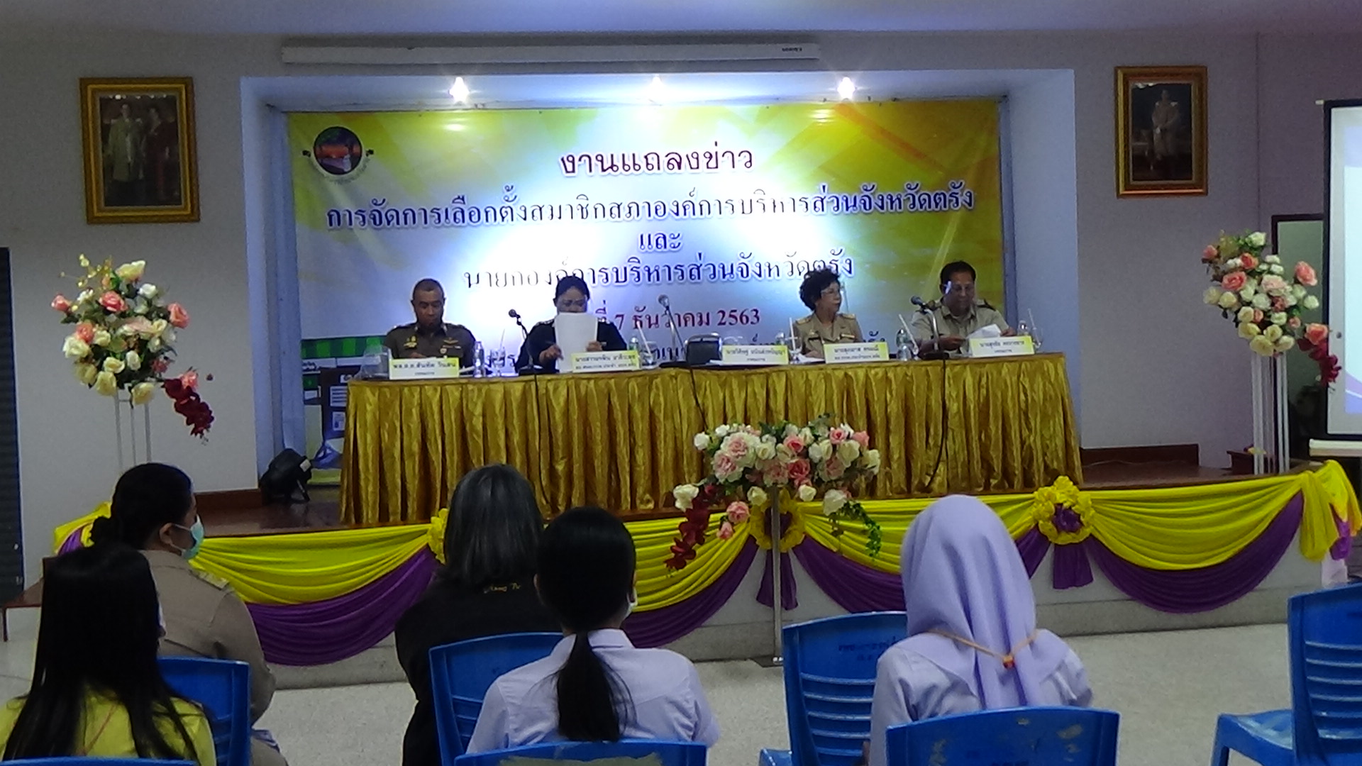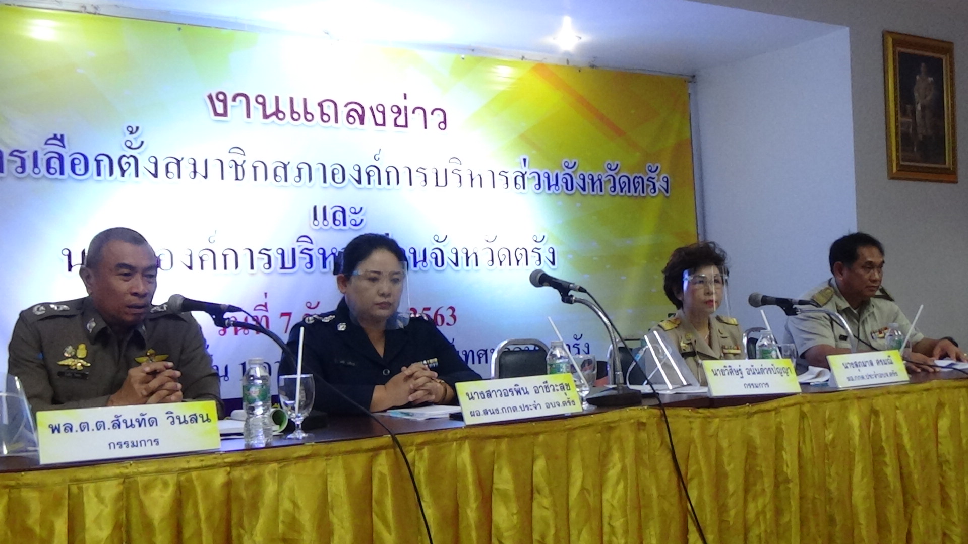 ที่อาคารอเนกประสงค์เทศบาลนครตรัง นางสุภมาส ศรมณี ผู้อำนวยการการเลือกตั้ง ประจำอบจ.ตรัง พล.ต.ต.สันทัด วินสน กรรมการการเลือกตั้ง ประจำอบจ.ตรัง นายสุรชัย คงบางยาง กรรมการการเลือกตั้ง ประจำอบจ.ตรัง และนางสาวอรพิน อาชีวะสุข ผู้อำนวยการการเลือกตั้ง ประจำ จ.ตรัง จัดแถลงข่าวการจัดการเลือกตั้งสมาชิกสภาองค์การบริหารส่วนจังหวัดตรัง (ส.อบจ.) และนายกองค์การบริหารส่วนจังหวัดตรัง โดยประเด็นในการแถลงข่าวในวันนี้ เป็นการเตรียมความพร้อมการจัดการเลือกตั้งในด้านต่างๆ ให้เป็นไปด้วยความเรียบร้อย ถูกต้องตามกฎหมาย เกิดความบริสุทธิ์ โปร่งใส ยุติธรรม