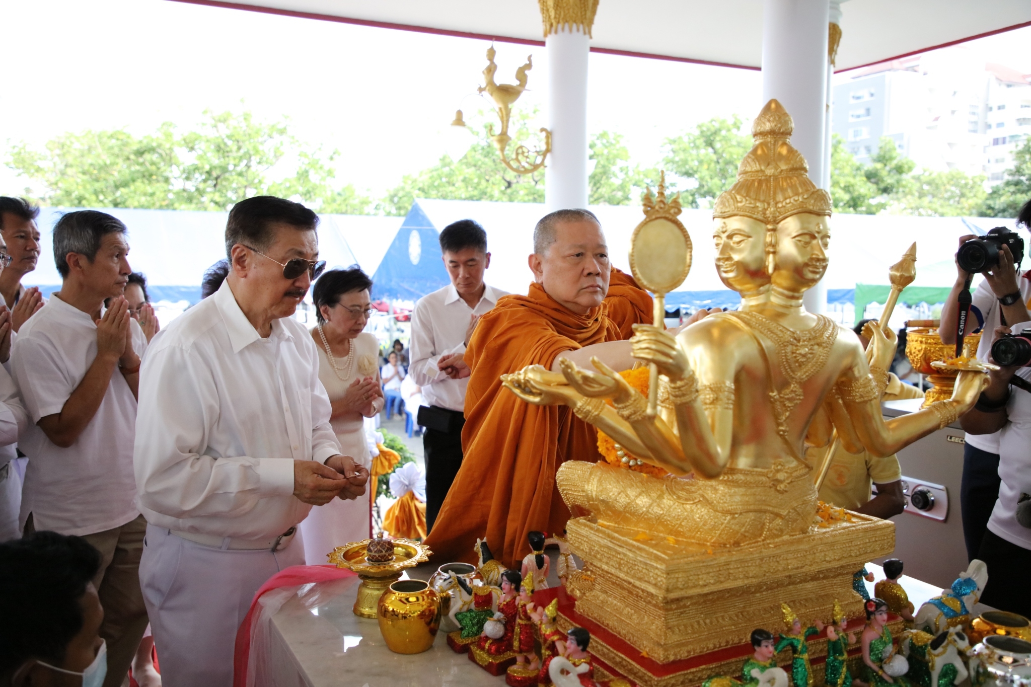 โสภณ เจ้าอาวาสวัดป่าธรรมโสภณ จากนั้นเวลา 09.09 น. เริ่มพิธีบวงสรวงองค์ท้าวมหาพรหม