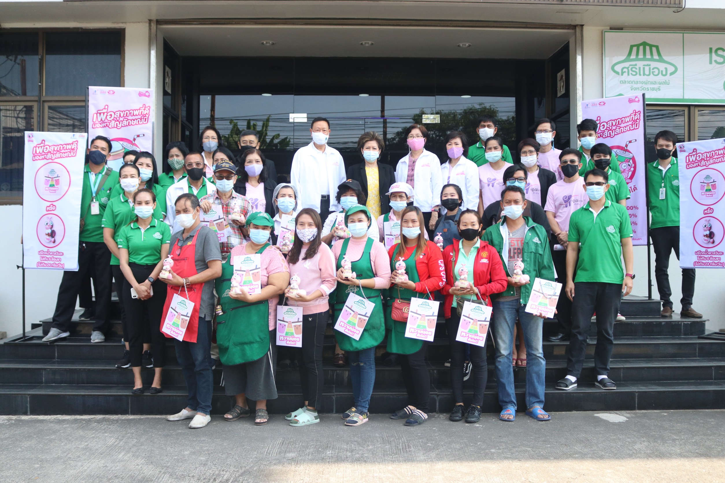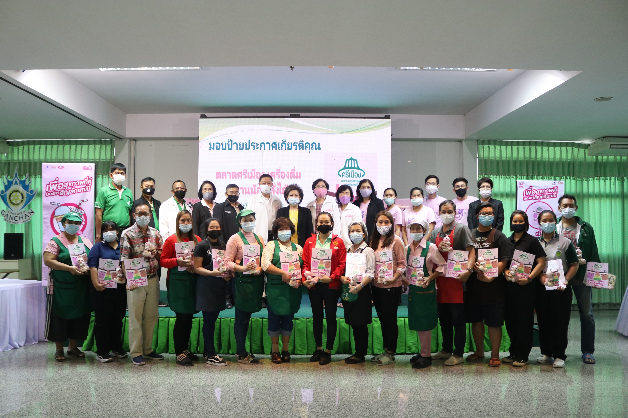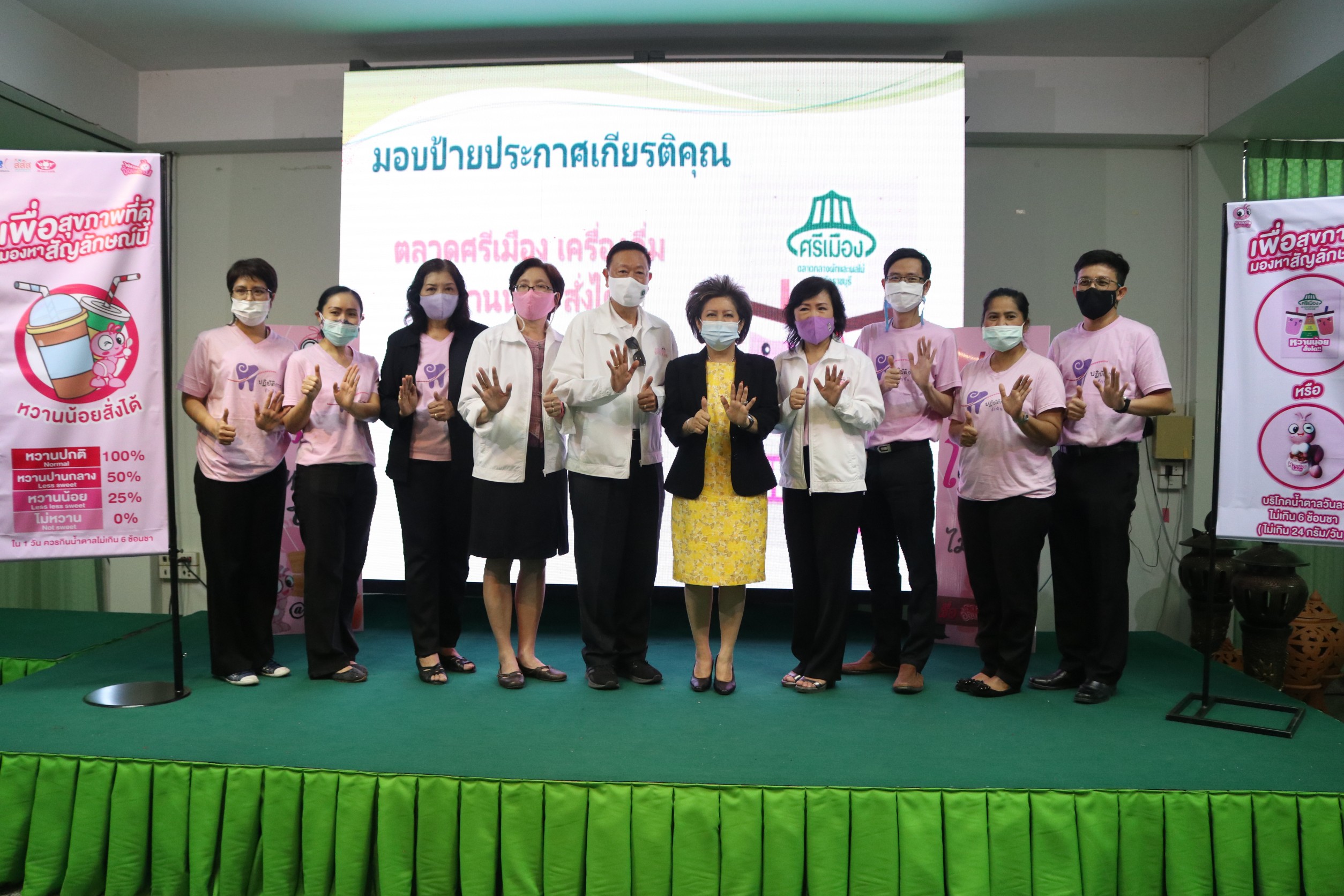 ราชบุรี. “หวานน้อย สั่งได้” : คุณวีณา ศรีสรรพางค์ รอง กก.ผจก. เป็นประธานในพิธีมอบป้ายประกาศเกียรติคุณ ร้านค้า ในโครงการ “ตลาดศรีเมือง เครื่องดื่มหวานน้อย สั่งได้” ที่ผ่านเกณฑ์การประเมิน จำนวน 16 ราย พร้อมรับมอบธงประชาสัมพันธ์ร้านเครื่องดื่มหวานน้อยสั่งได้ จากโครงการเครือข่ายเด็กไทยไม่กินหวาน ณ ห้องประชุมชั้น 3 สนง.ตลาด