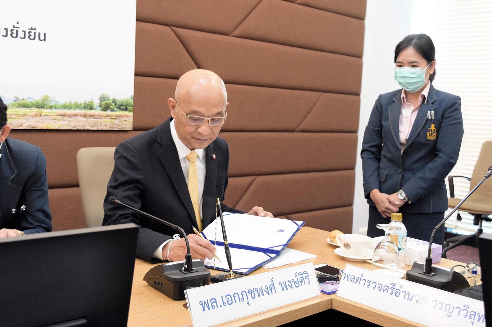 ดร.สุเมธ ตันติเวชกุล กรรมการและเลขาธิการมูลนิธิชัยพัฒนา และพลเอก ภุชพงศ์ พงษ์ศิริ ประธานกรรมการมูลนิธิเพื่อการวิจัยและพัฒนาอย่างยั่งยืน ร่วมลงนามในบันทึกข้อตกลงความร่วมมือระหว่างมูลนิธิชัยพัฒนา และมูลนิธิเพื่อการวิจัยและพัฒนาอย่างยั่งยืน ในการจัดทำสื่อประชาสัมพันธ์มูลนิธิชัยพัฒนา