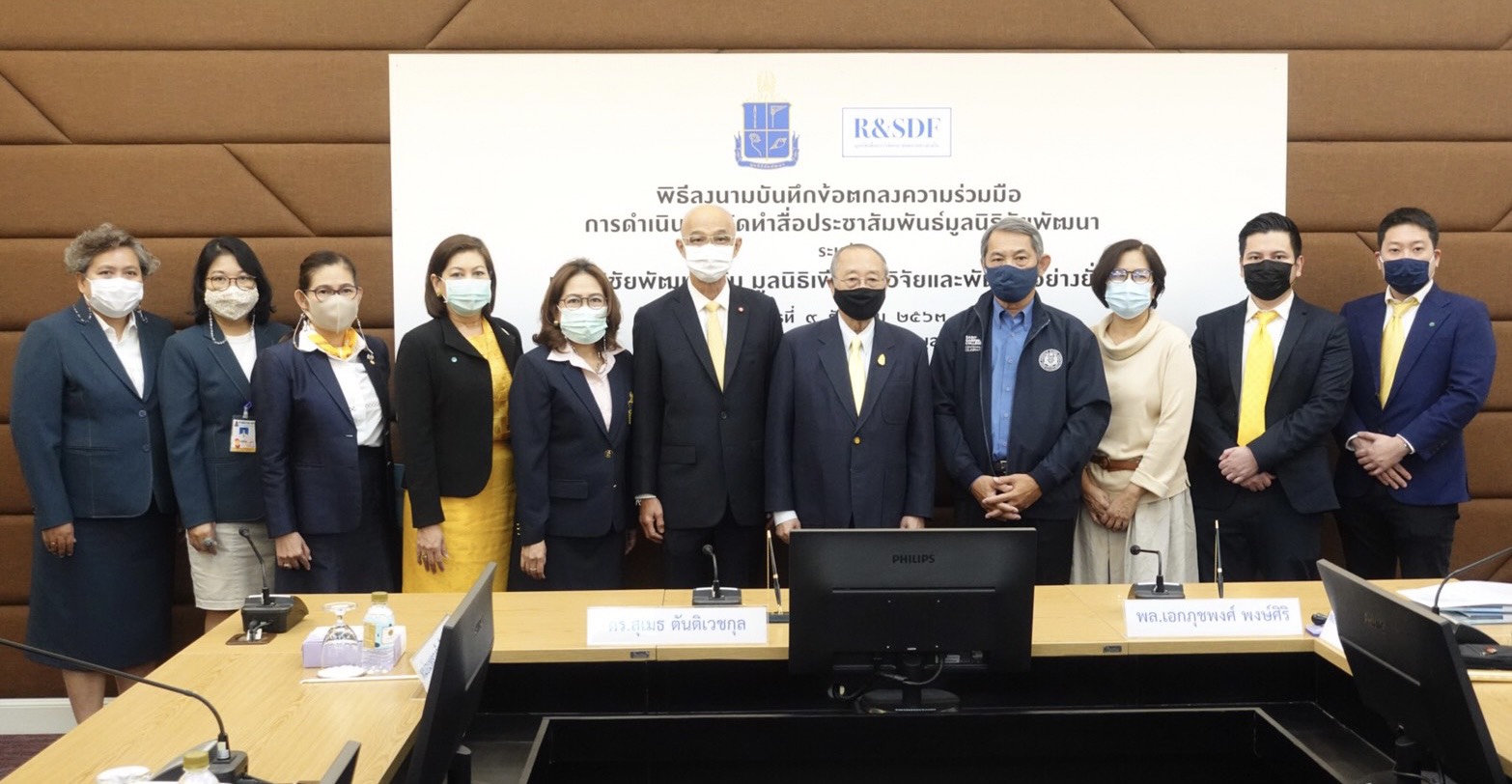 มูลนิธิชัยพัฒนา และมูลนิธิเพื่อการวิจัยและพัฒนาอย่างยั่งยืน ร่วมลงนามบันทึกข้อตกลงความร่วมมือ ในการจัดทำสื่อประชาสัมพันธ์มูลนิธิชัยพัฒนา//