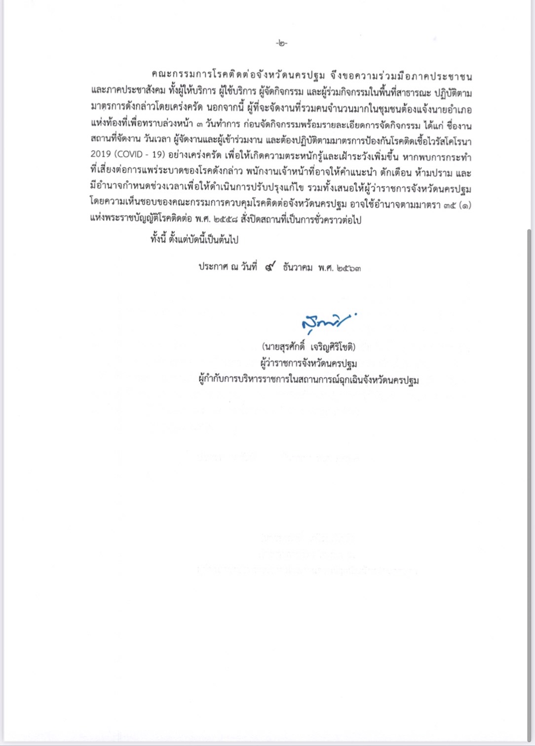 ผู้ว่าฯ ห่วง ช่วงเทศกาลปีใหม่ซึ่งจะมีการจัดงานและกิจกรรมต่างๆ ซึ่งมีประชาชนร่วมกิจกรรมจำนวนมาก ขอความร่วมมือทุกคนปฏิบัติตามมาตรการของกระทรวงสาธารณสุขอย่างเคร่งครัด