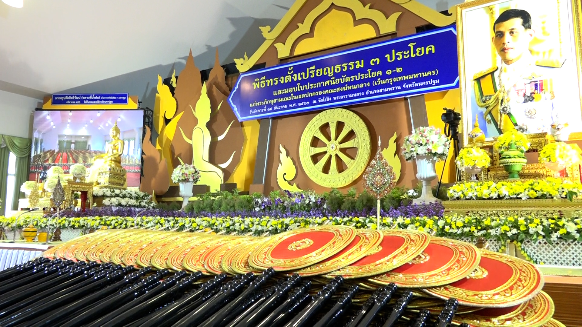 ด้วยการเสด็จพระราชดำเนิน หรือทรงพระกรุณาโปรดเกล้าฯ ให้เสด็จพระราชดำเนินแทนพระองค์ ทรงตั้งเปรียญธรรม9ประโยค และเปรียญธรรม6ประโยค รวมทั้งพระราชทานพระบรมราชูปถัมภ์ในด้านต่าง ๆพิธีทรงตั้งเปรียญธรม3ประโยค ในวันนี้ สำนักงานพระพุทธศาสนาแห่งชาติ ได้นิมนต์พระภิกษุสามเณรที่สอบได้เปรียญธรรม3ประโยค ในเขตปกครองคณะสงฆ์หนกลาง จำนวน363รูป มาเข้ารับการทรงตั้งเปรียญธรม3ประโยค และในการประชุมมหาเถรสมาคม ครั้งที่ 1/2562เมื่อวันที่30เมษายน2562มีมติให้ความห็นชอบให้พระภิกษุสามเณรที่สอบได้ประโยค1-2เข้ารับประกาศนียบัตรต่อท้ายพิธีทรงตั้งเปรียญธรรม3ประโยค จำนวน 363รูป และสอบได้ประโยค 1-2จำนวน34รูป รวม 675รูป