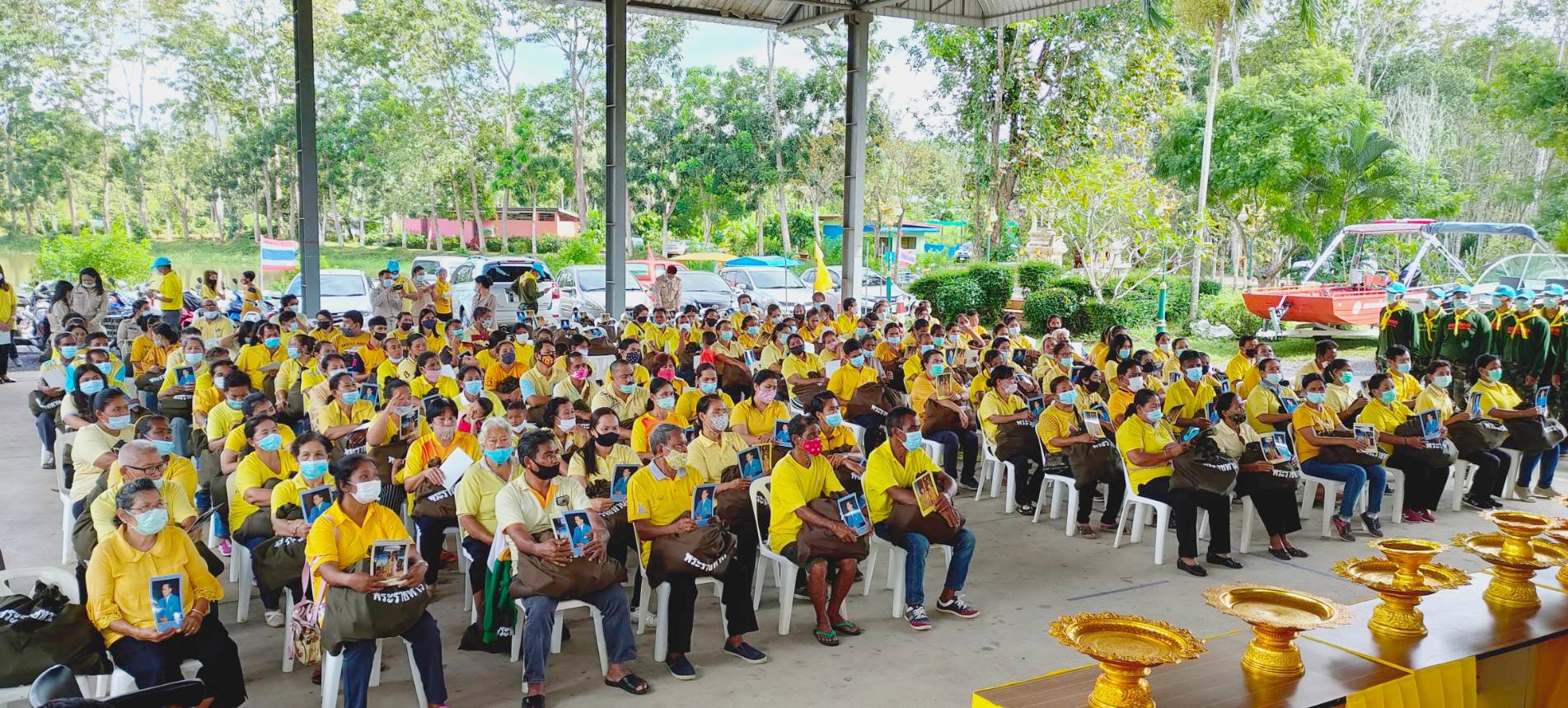 นายสราวุฒิ ธนาเจริญสกุล นายอำเภอเมืองตรัง พร้อมด้วยผู้เข้าร่วมพิธี ได้ถวายความเคารพและเปิดกรวยกระทงดอกไม้ธูปเทียนแพ เบื้องหน้าพระบรมฉายาลักษณ์พระบาทสมเด็จพระเจ้าอยู่หัว และสมเด็จพระนางเจ้า พระบรมราชินี ก่อนที่ผู้ประสบภัยทุกคนจะรับมอบถุงยังชีพพระราชทานเบื้องหน้าพระบรมฉายาลักษณ์พระบาทสมเด็จพระเจ้าอยู่หัว และสมเด็จพระนางเจ้า พระบรมราชินี ทั้งนี้ในพื้นที่ตำบลนาตาล่วง มีผู้ประสบภัยจำนวน 2 หมู่บ้าน เป็นพื้นที่น้ำท่วมซ้ำซาก และส่วนใหญ่อยู่ติดริมแม่น้ำตรัง คือ หมู่ที่ 1 บ้านทุ่งตำเสา จำนวน 33 ครัวเรือน และหมู่ที่ 4 บ้านป่าหมาก จำนวน 147 ครัวเรือน รวม 180ครัวเรือน และมีผู้เสียชีวิต จำนวน 1 ราย