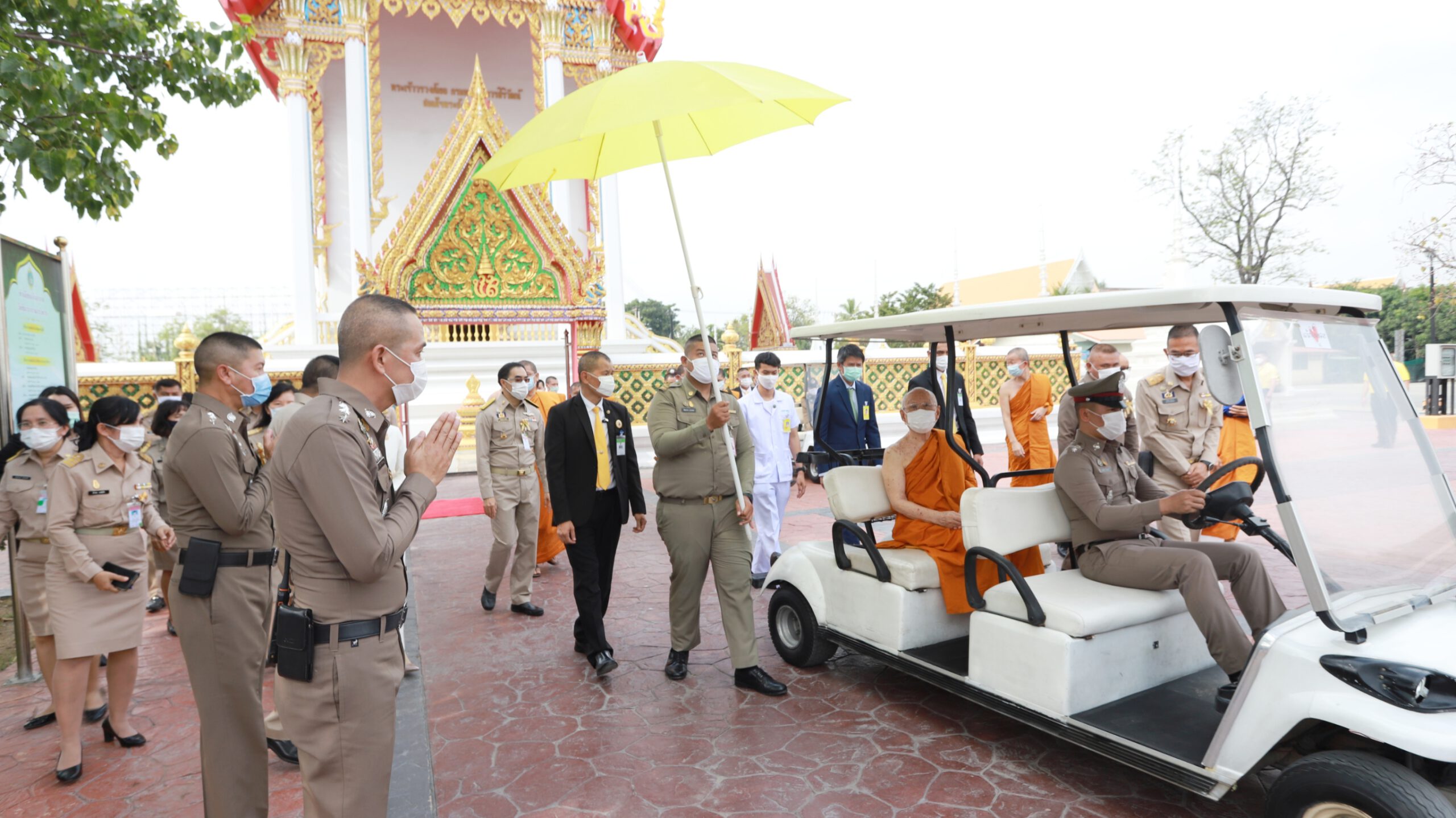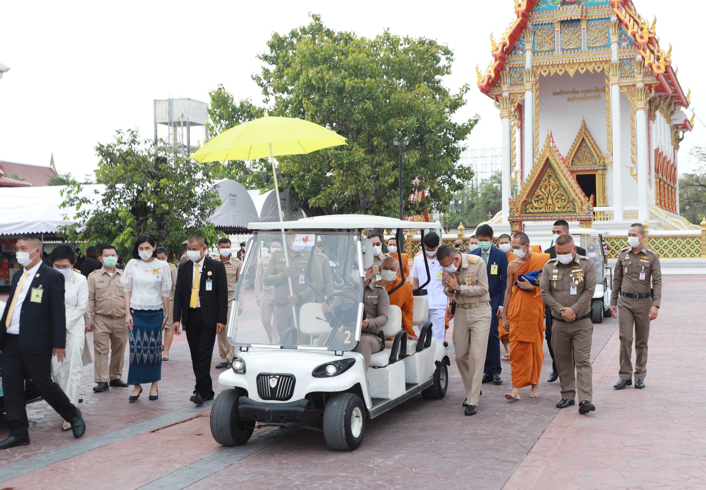 ทั้งนี้ มีพระมงคลวโรปการ เจ้าอาวาสวัดชินวราราม วรวิหาร ที่ปรึกษาเจ้าคณะจังหวัดปทุมธานีพระครูสมุห์วัชระ ภทฺทธมฺโม (พระครูต้น) ผู้ช่วยเจ้าอาวาสวัดระฆังโฆสิตารามวรมหาวิหาร กรุงเทพฯ นายชัยวัฒน์ ชื่นโกสุม ผู้ว่าราชการจังหวัดปทุมธานี นายกิตติพงศ์ ทองปุย ผู้พิพากษาหัวหน้าศาลจังหวัดปทุมธานี พลตรีธวัชชัย ตั้งพิทักษ์กุล ผบ.มทบ.11 พล.ต.ต.ชยุต มารยาทตร์ ผบก.ภ.จว.ปทุมธานี นางกุลทรัพย์ ชื่นโกสุม นายกเหล่ากาชาดจังหวัดปทุมธานี นายจรูญศักดิ์ สิงหเดช รองผู้ว่าราชการจังหวัดปทุมธานี นายพิษณุ ประภาธนานันท์ นายอำเภอธัญบุรี พ.ต.อ. อเนก สระทองอยู่ รรท.ผกก.เมืองปทุมธานี นางสาวฐิต์ณัฐ สมบัติศิริ วัฒนธรรมจังหวัดปทุมธานี และหัวหน้าส่วนราชการ ประชาชนทุกหมู่เหล่าเฝ้ารับเสด็จ