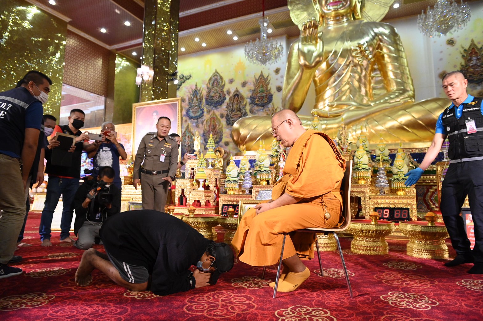 พร้อมกันนี้นายสมคิดได้ก้มกราบขอขมาพระครูปลัดสิทธิวัฒน์ (หลวงพี่น้ำฝน)เจ้าอาวาสวัดไผ่ล้อม และกล่าวสาบานต่อหน้าพระพุทธเมตตาประธานพร