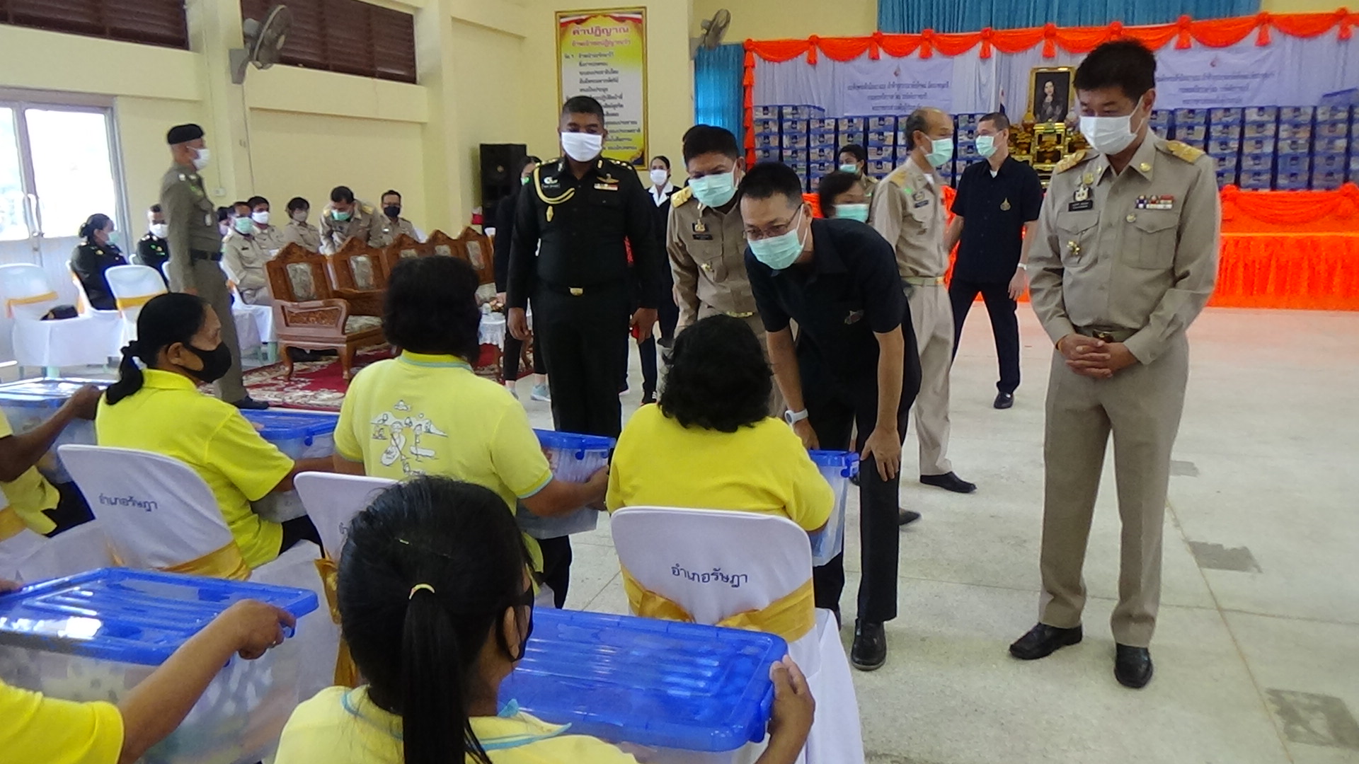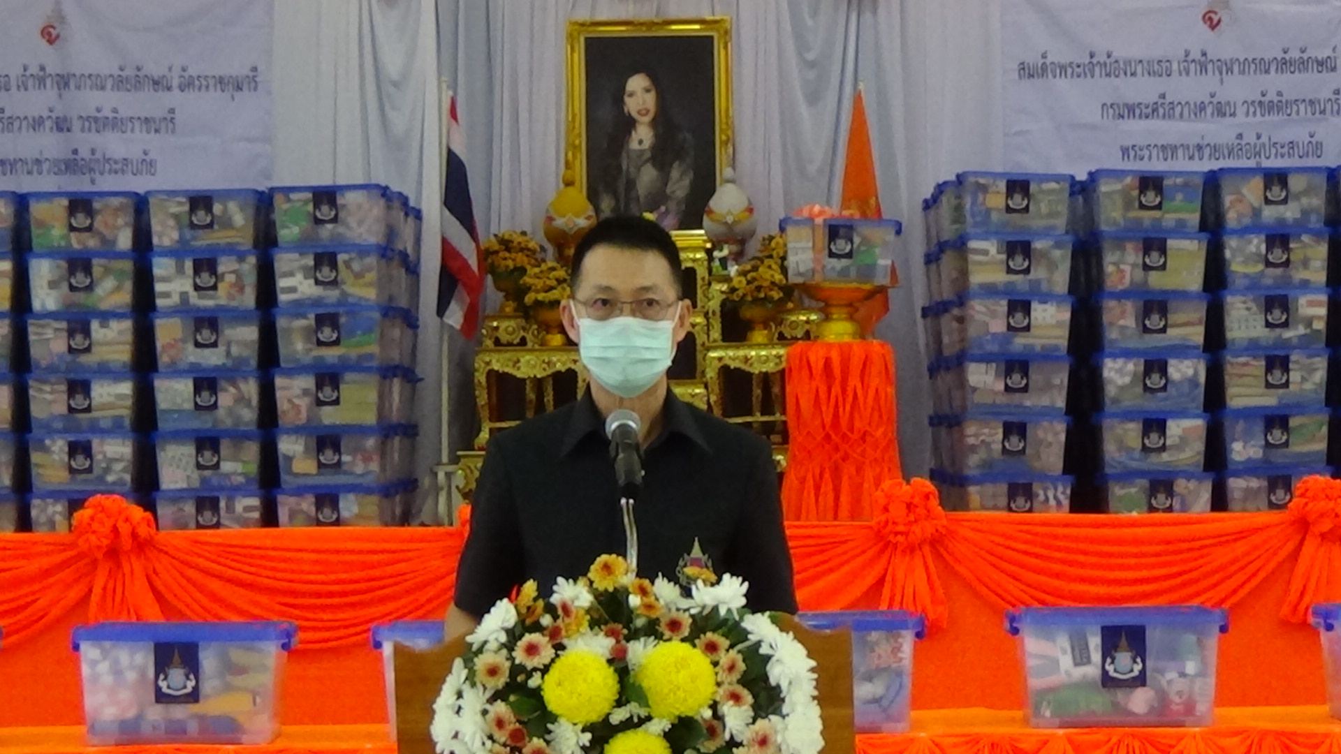 รองประธานสถาบันวิจัยจุฬาภรณ์ เชิญสิ่งของพระราชทานจากศาสตราจารย์ ดร.สมเด็จพระเจ้าน้องนางเธอ เจ้าฟ้าจุฬาภรณวลัยลักษณ์ อัครราชกุมารี กรมพระศรีสวางควัฒน วรขัตติยราชนารี พระราชทานมอบแก่ผู้ประสบอุทกภัยในพื้นที่จังหวัดตรัง