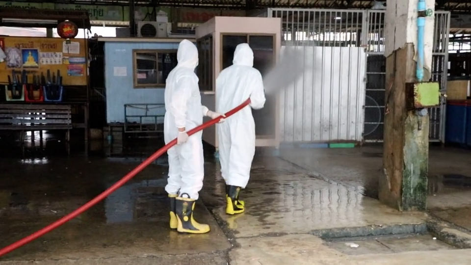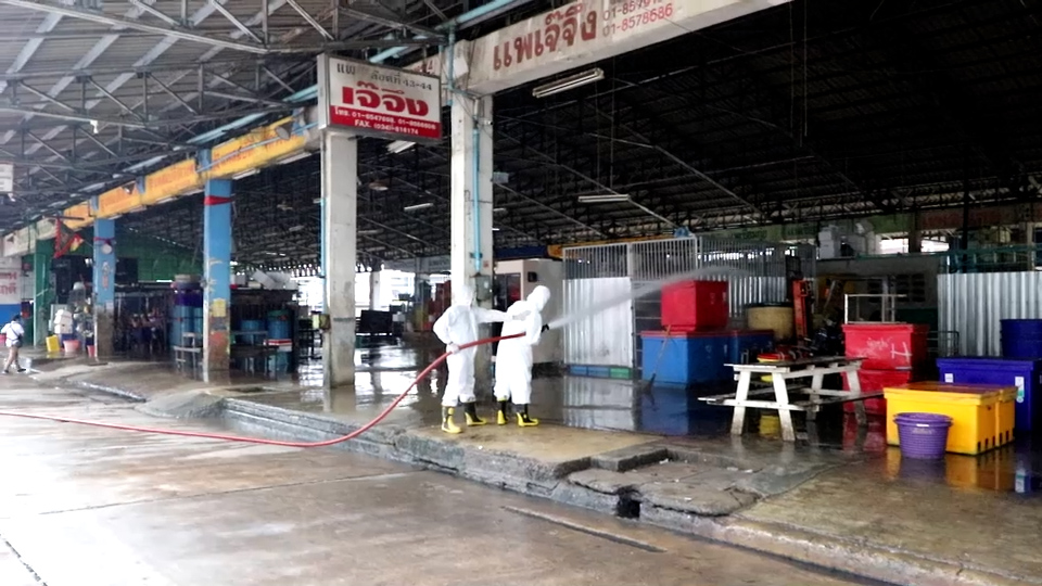 สมุทรสาคร ผู้ว่าฯสั่งปิด ตลาดกุ้ง 1 วัน ทำการฉีดล้างพื้นที่โดยรอบ
