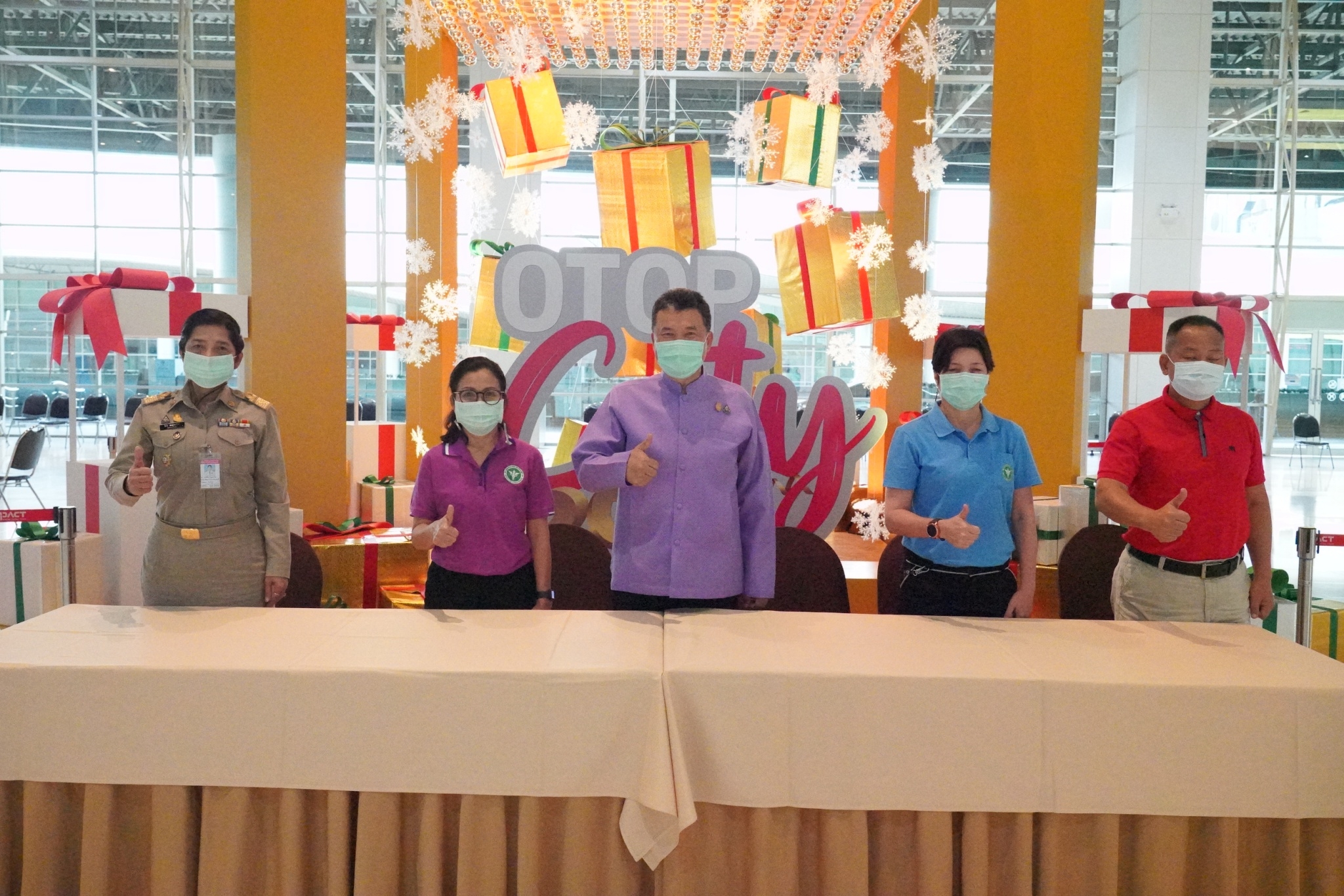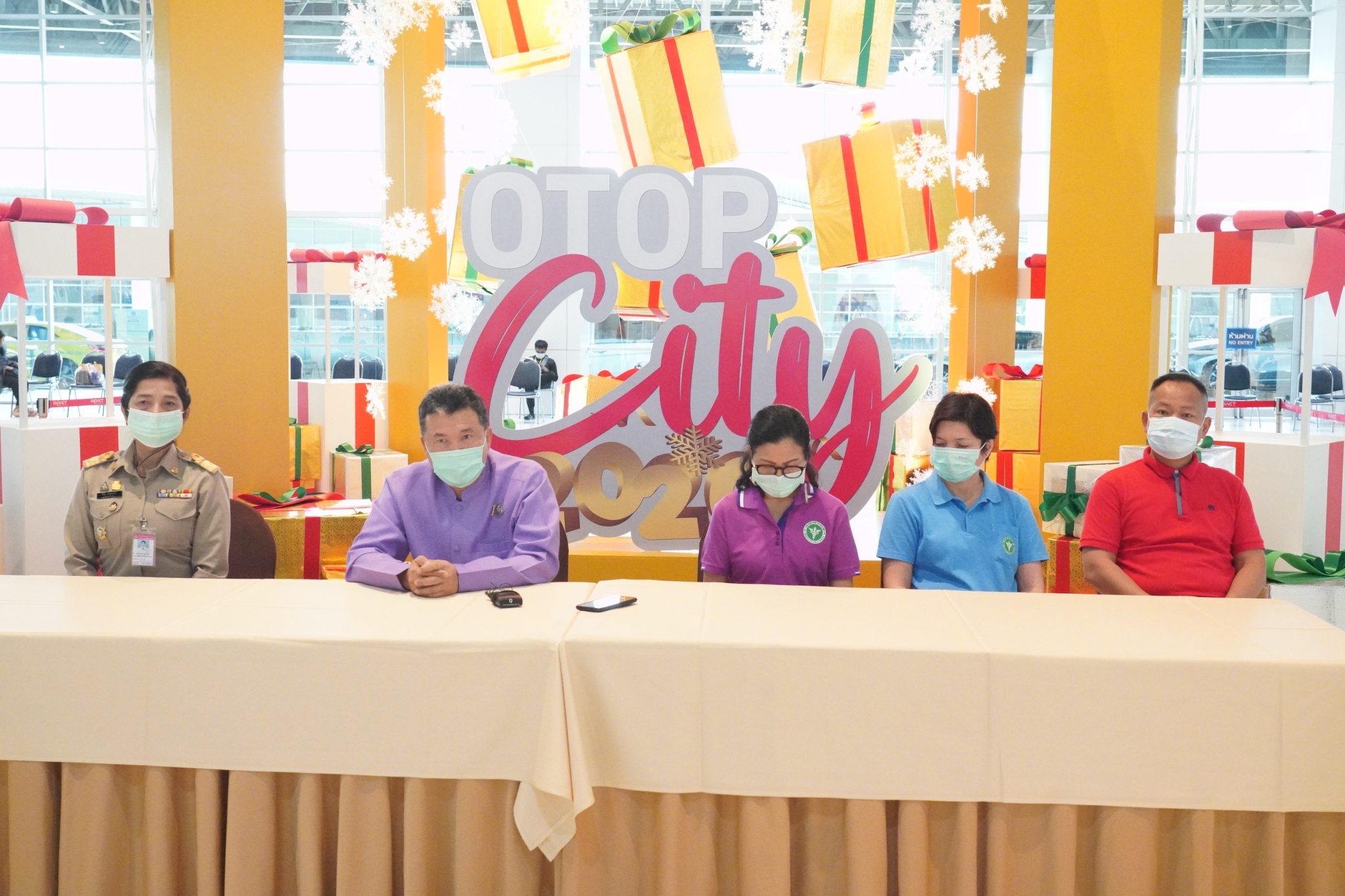 จึงขอเชิญชวนพี่น้องคนไทย ร่วมอุดหนุนสินค้าจากฝีมือคนไทย มอบความสุขในช่วงเทศกาลปีใหม่ ด้วยผลิตภัณฑ์จากภูมิปัญญาของคนไทย รวมทั้งส่งเสริม สนับสนุน ผู้ผลิตผู้ประกอบการ OTOP ให้มีช่องทางการตลาด มีรายได้จากการจำหน่ายผลิตภัณฑ์ชุมชนเพิ่มขึ้น เพื่อเป็นการกระตุ้นเศรษฐกิจฐานราก เพื่อความมั่นคง มั่งคั่ง และยั่งยืน ในงาน “OTOP City 2020” ครั้งที่ 16 ภายใต้แนวคิด “ของขวัญปีใหม่ ล้ำค่าถูกใจ รวมไว้ใน OTOP City 2020” และได้มีการจัดมาตรการป้องกันและควบคุมการแพร่เชื้อโควิด-19 ตามมาตรการของศูนย์บริหารสถานการณ์การแพร่ระบาด โรคติดเชื้อไวรัสโคโรนา 2019 (โควิด-19) หรือ ศบค. ไว้อย่างเคร่งครัด ในตอนท้ายของการแถลงข่าว นายสุทธิพงษ์ จุลเจริญ อธิบดีกรมการพัฒนาชุมชน ได้กล่าวขอบคุณพี่น้องคนไทยที่มาให้กำลังใจ
