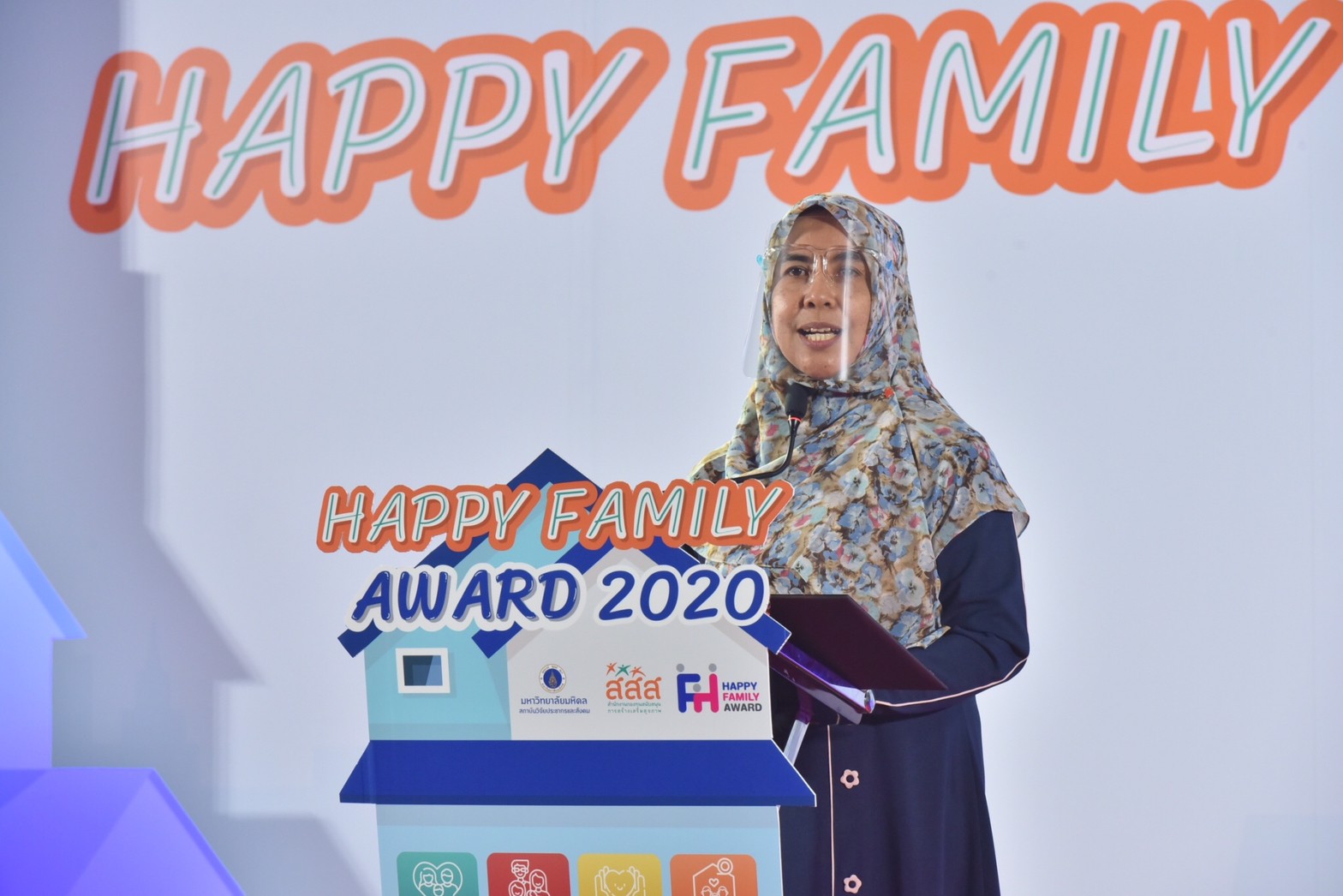 วันที่ 21 ธันวาคม 2563 รองศาสตราจารย์ ดร.นภเรณู สัจจรักษ์ ธีระฐิติ รองอธิการบดีฝ่ายวิเทศสัมพันธ์และสื่อสารองค์กร มหาวิทยาลัยมหิดล กล่าวต้อนรับในงานนิทรรศการ “องค์กรต้นแบบครอบครัวมีสุข” ประจำปี 2563 (Happy Family Award 2020) โดยมี ดร.สุปรีดา อดุลยานนท์ ผู้จัดการกองทุนสนับสนุนการสร้างเสริมสุขภาพ (สสส.) กล่าวเปิดและปาฐกถาพิเศษ เรื่อง “ครอบครัวมีสุขในทศวรรษต่อไป” และกล่าวรายงาน โดย คุณณัฐยา บุญภักดี ผู้อำนวยการสำนักสนับสนุนสุขภาวะเด็ก เยาวชน และครอบครัว สำนักงานกองทุนสนับสนุนการสร้างเสริมสุขภาพ (สสส.) ณ โรงแรมเซ็นทรา ศูนย์ราชการ แจ้งวัฒนะ กรุงเทพมหานคร จัดโดย โครงการสร้างเสริมครอบครัวอบอุ่นและมีสุขเพื่อคนทำงานเด็ก เยาวชน และครอบครัว สถาบันวิจัยประชากรและสังคม มหาวิทยาลัยมหิดล และการสนับสนุนจาก สำนักสนับสนุนสุขภาวะองค์กร สำนักงานกองทุนสนับสนุนการสร้างเสริมสุขภาพ (สสส.)