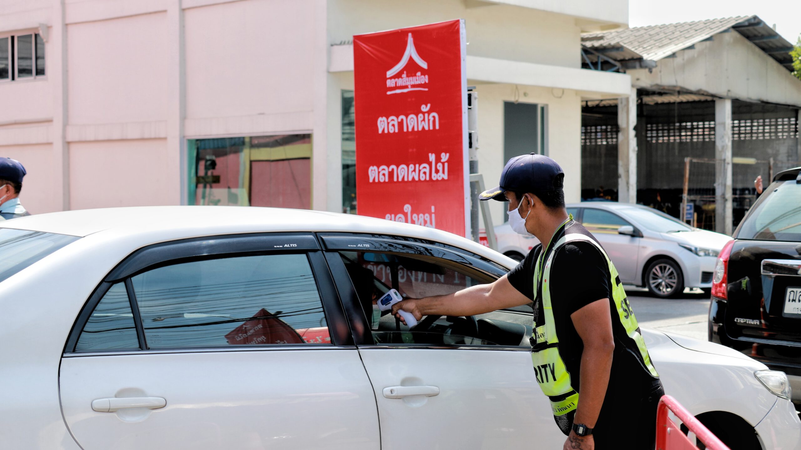 ทางด้าน นางสาวปณาลี ภัทรประสิทธิ์ ผู้ช่วยกรรมการผู้จัดการสายงานการตลาดและพัฒนาธุรกิจ บริษัท ดอนเมืองพัฒนา จำกัด กล่าวว่า ในส่วนของตลาดสี่มุมเมืองนั้น มีมาตรการป้องกันอยู่แล้ว แต่เมื่อโควิดกลับมาระบาดอีกครั้ง ทางเราก็ได้ยกระดับมาตรการขึ้นโดยมาตรการของเรานั้นมีตั้งแต่ 1 คัดกรองที่หน้าด่าน ถ้าอุณหภูมิเกิน 37.5 เราจะไม่ให้เข้ามาซื้อของ โดยให้รอที่จุดคัดกรอง และสั่งของแล้วให้ร้านค้าเอาของมาส่งให้ที่จุดคัดกรองของเรา อันที่ 2 เรื่องหน้ากาก ถ้าใครที่เข้ามาในตลาดและไม่สวมหน้ากาก ทางเราจะมีการปรับ คนละ 100 บาท ซึ่งอันนี้เราปรับจริง และมีผู้ที่โดนปรับแล้วกว่า 500 คนในตลาด และยังมีเจลแอลกอฮอล์ บริการทั่วทั้งตลาดกว่า 60 จุด รวมถึงห้องน้ำ เช่นลูกบิดและก๊อกน้ำ เราให้มีการทำความสะอาดทุกๆ 1 ชั่วโมง