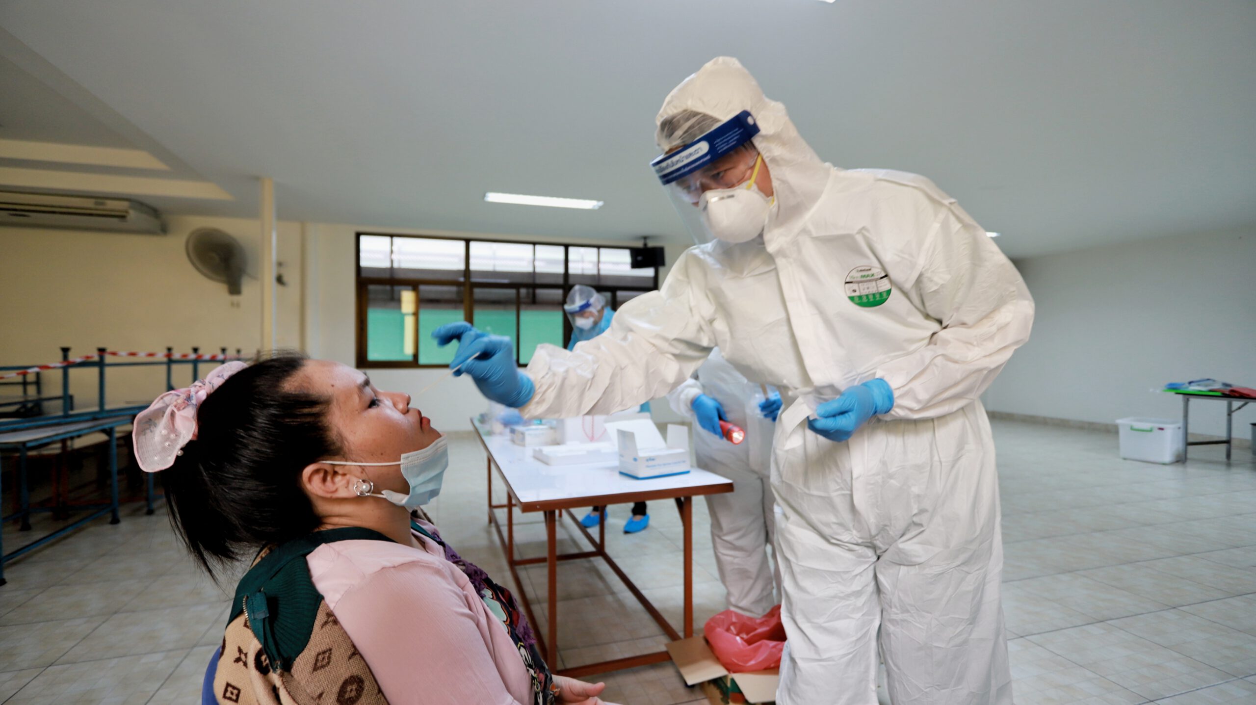 เมื่อเวลา 12.00 น. วันที่ 22 ธ.ค.2563 ที่ตลาดสี่มุมเมือง ต.คูคต อ.ลำลูกกา จ.ปทุมธานี นายชัยวัฒน์ ชื่นโกสุม ผู้ว่าราชการจังหวัดปทุมธานี พร้อมด้วย นายแพทย์สุรินทร์ สืบซึ้ง นายแพทย์สาธารณสุขจังหวัดปทุมธานี นางสาวปณาลี ภัทรประสิทธิ์ ผู้ช่วยกรรมการผู้จัดการสายงานการตลาดและพัฒนาธุรกิจ บริษัท ดอนเมืองพัฒนา จำกัด นายทรงกลด พุฒิกมลกุล ผู้ช่วยกรรมการผู้จัดการ และนายอภิวัฒน์ สุขพันธ์ ผู้อำนวยการสายงานบริหารพื้นที่ บริษัท ดอนเมืองพัฒนา จำกัด ได้ร่วมกันทำการเรียกตรวจแรงงานต่างด้าว ที่มีกลุ่มเสี่ยง โดยเฉพาะลูกจ้างที่ไปรับของจากตลาดสมุทรสาคร และ ลูกจ้างร้านขายอาหารทะเลสด โดยมีจำนวนทั้งสิ้นกว่า 30 คน โดยทางสาธารณสุขจังหวัดปทุมธานี ได้นำเจ้าหน้าที่มาทำการตรวจแรงงานทั้งหมด