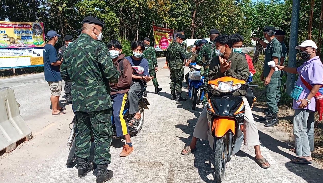 ต่อจากนั้นจึงเดินทางต่อไปยังพื้นที่บ้านหม่องสะเทอ เพื่อทำการคัดกรอง ชาวบ้านที่เดินทางกลับมาจากพื้นที่เสี่ยง ซึ่งมีจำนวน 3-4 คน ก่อนจะเดินทางตรวจการตั้งด่านคัดกรองโควิต บริเวณสี่แยกบ้านห้วยมาลัย และสี่แยกวัดวังก์วิเวการาม พรอ้มกำชับให้เจ้าหน้าที่ปฎิบัติงานอย่างเคร่งครัดเพื่อป้องกันแรงงานเมียนมาหลบหนีเข้ามาในพื้นที่