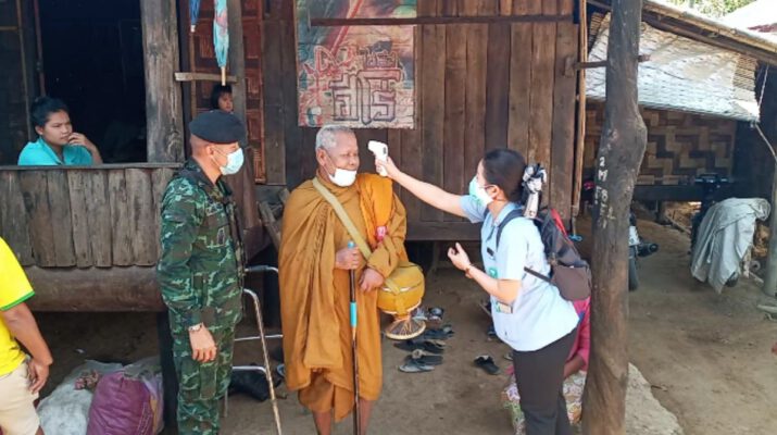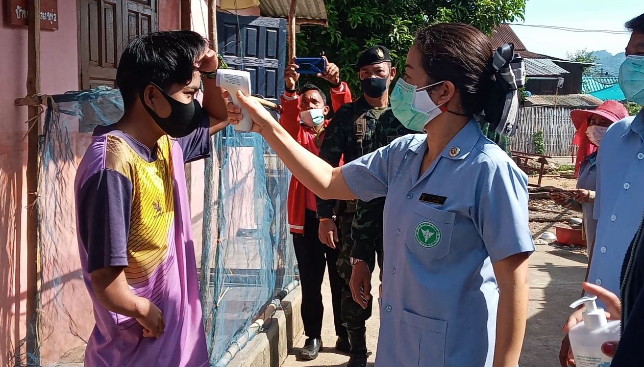 ทองสวัสดิ์ สาธารณสุข อำเภอสังขละบุรี นำเจ้าหน้าที่ชุด เฉพาะโควิต ของกำลังสุรสีห์ ตำรวจตนเวนชายแดนที่ 134อาสาสมัครสาธารณะสุขหมู่บ้าน (อสม.) พร้อมด้วยผู้นำชุมชน ลงพื้นที่เพื่อทำการคัดกรองชาวบ้านที่เดินทางกลับมาจากพื้นที่ สมุทรสาคร นครปฐม สมุทรสงคราม