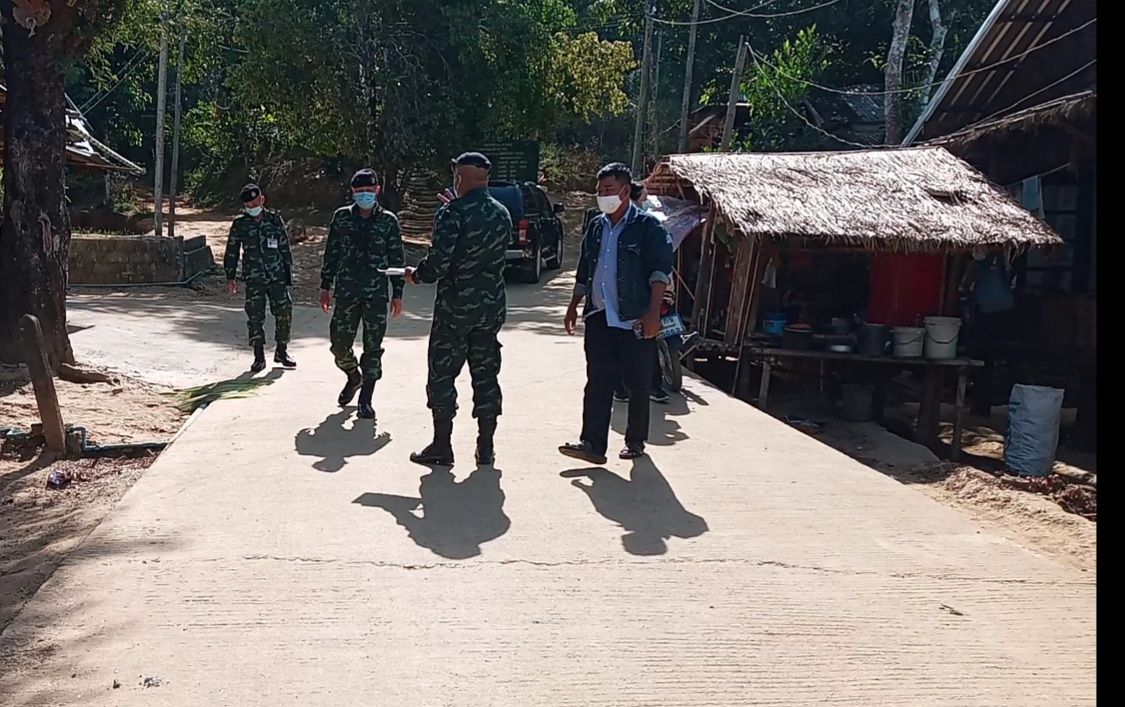 ที่ชุมชนดงสัก บ้านวังกะ หมู่ที่ 2 ตำบลหนองลู อำเภอสังขละบุรี จังหวัดกาญจนบุรี พ.อ.เฉลิมพล สังข์ต้อง รองผู้บังคับหน่วยเฉพาะกิจลาดหญ้า กองกำลังสุรีสีห์ พร้อมด้วยนายรังสิมันต์