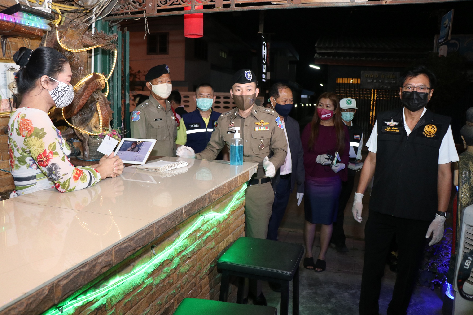 วันนี้ ( 22 ธันวาคม 2563 ) ตั้งแต่เวลา 19.00 น. ร้อยตรี พงศธร ศิริสาคร รองผู้ว่าราชการจังหวัดกาญจนบุรี พร้อมด้วย นายสมหวัง บุญระยอง รองผู้ว่าราชการจังหวัดกาญจนบุรี นายแพทย์สุรวิทย์ ศักดานุภาพ รองนายแพทย์สาธารณสุขจังหวัดกาญจนบุรี พันเอกบรรเจิด จันทร์ส่งเสริม รองผู้อำนวยการรักษาความมั่นคงภายในจังหวัดกาญจนบุรี พ.ต.ต.สมัชชา มหาพรหม สารวัตรสถานีตำรวจท่องเที่ยวกาญจนบุรี ฝ่ายปกครองที่ว่าการอำเภอเมืองกาญจนบุรี เจ้าหน้าที่ตำรวจ สมาชิกกองอาสารักษาดินแดน ร่วมออกตรวจสถานประกอบการที่บริเวณโค้งประปา ถนนนานาชาติ อำเภอเมือง จังหวัดกาญจนบุรี