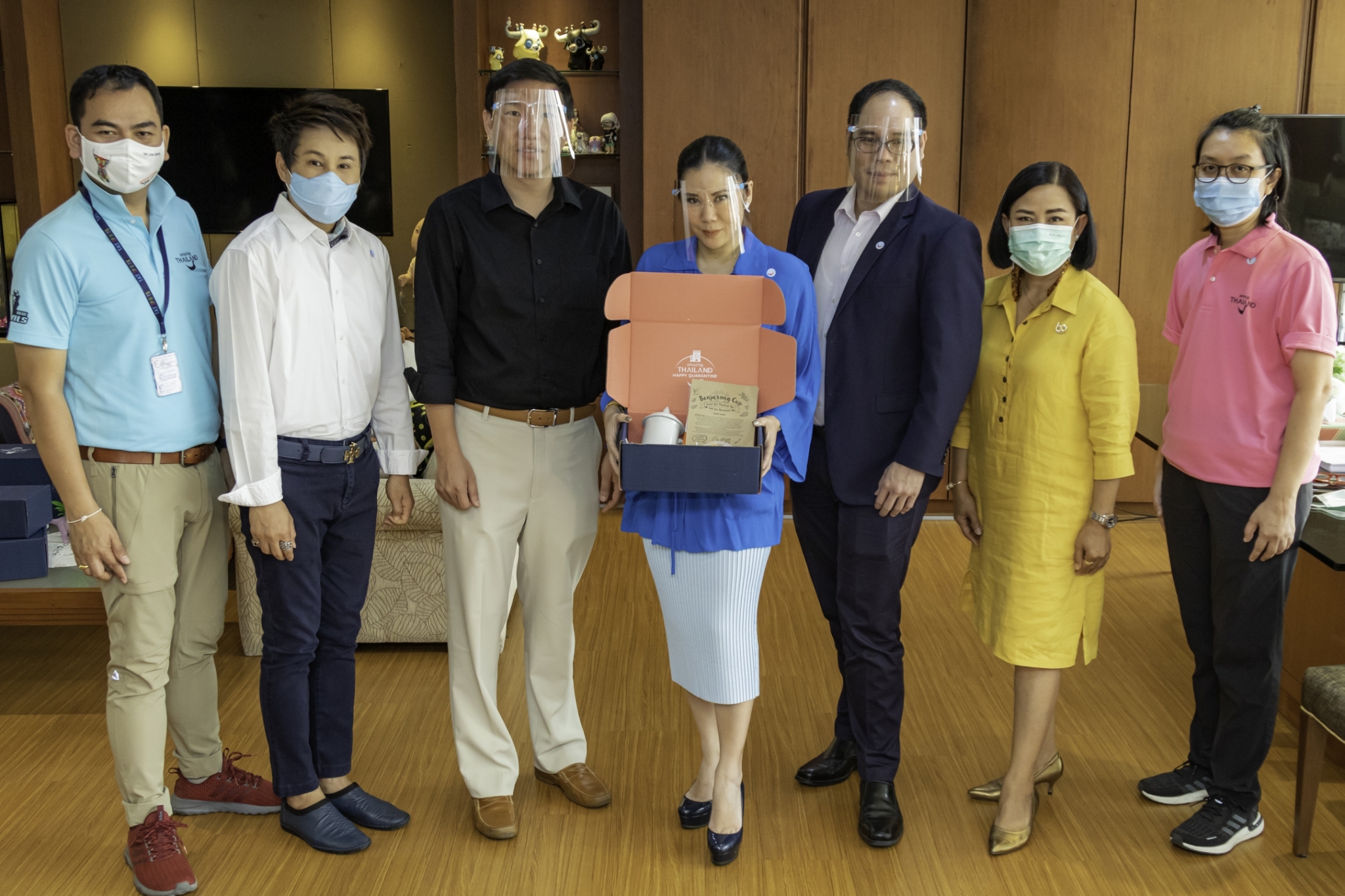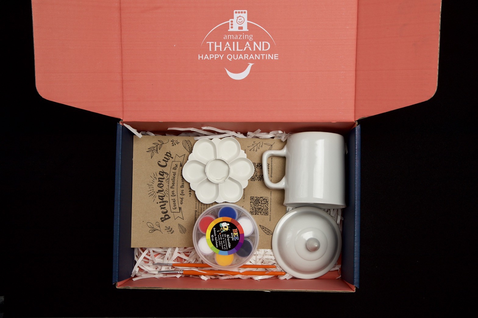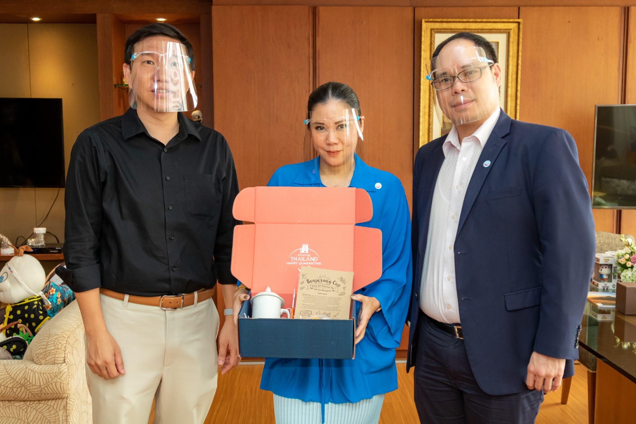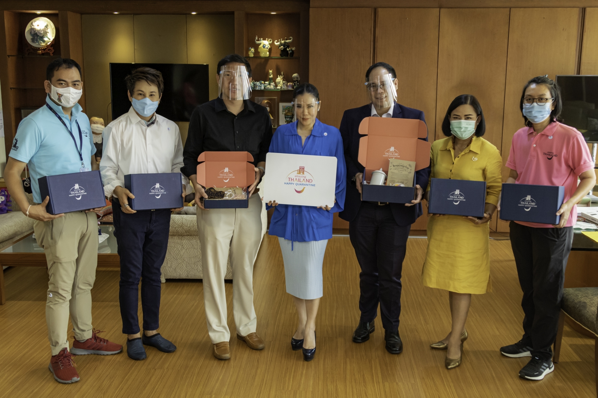 ด้วยเหตุนี้ การท่องเที่ยวแห่งประเทศไทย (ททท.) จึงจัดโครงการ “Amazing Thailand Happy Quarantine” เพื่อนำเสนอสินค้าและบริการการท่องเที่ยว รวมถึงกิจกรรมต่างๆ ที่จะช่วยมอบความรู้สึกที่ปลอดภัย และสร้างความผ่อนคลายให้กับนักท่องเที่ยวในระหว่างการกักตัว โดยทางโครงการฯ ได้จัดทำกิจกรรมมากมาย รวมไปถึงการจัดทำ Happy DIY Set ทั้งหมด 4,000 ชุด ซึ่งเป็นชุดเซ็ตที่ให้นักท่องเที่ยวที่อยู่ในระหว่างกระบวนการกักกันโรค ได้สร้างสรรค์ และตกแต่งผลิตภัณฑ์ที่มอบให้ในรูปแบบของตนเอง โดยมีทั้งหมด 4 เซ็ตด้วยกันคือ แก้วเบญจรงค์, รองเท้าผักตบชวา, สายคล้องหน้ากากอนามัยไข่มุกแท้จากภูเก็ต, สายคล้องหน้ากากอนามัยจากหลอดด้ายผ้าคราม และกระเป๋ากระจูด โดยทางโครงการฯ ได้ส่งมอบ Happy DIY Set ชุดแรก จำนวน 200 ชุด ให้กับทางโรงแรมอนันตรา สยาม กรุงเทพ ในวันที่ 18 ธันวาคม 2563 ที่ผ่านมา