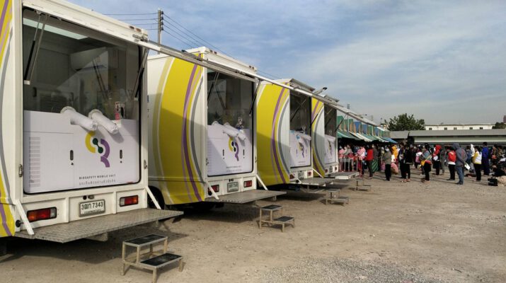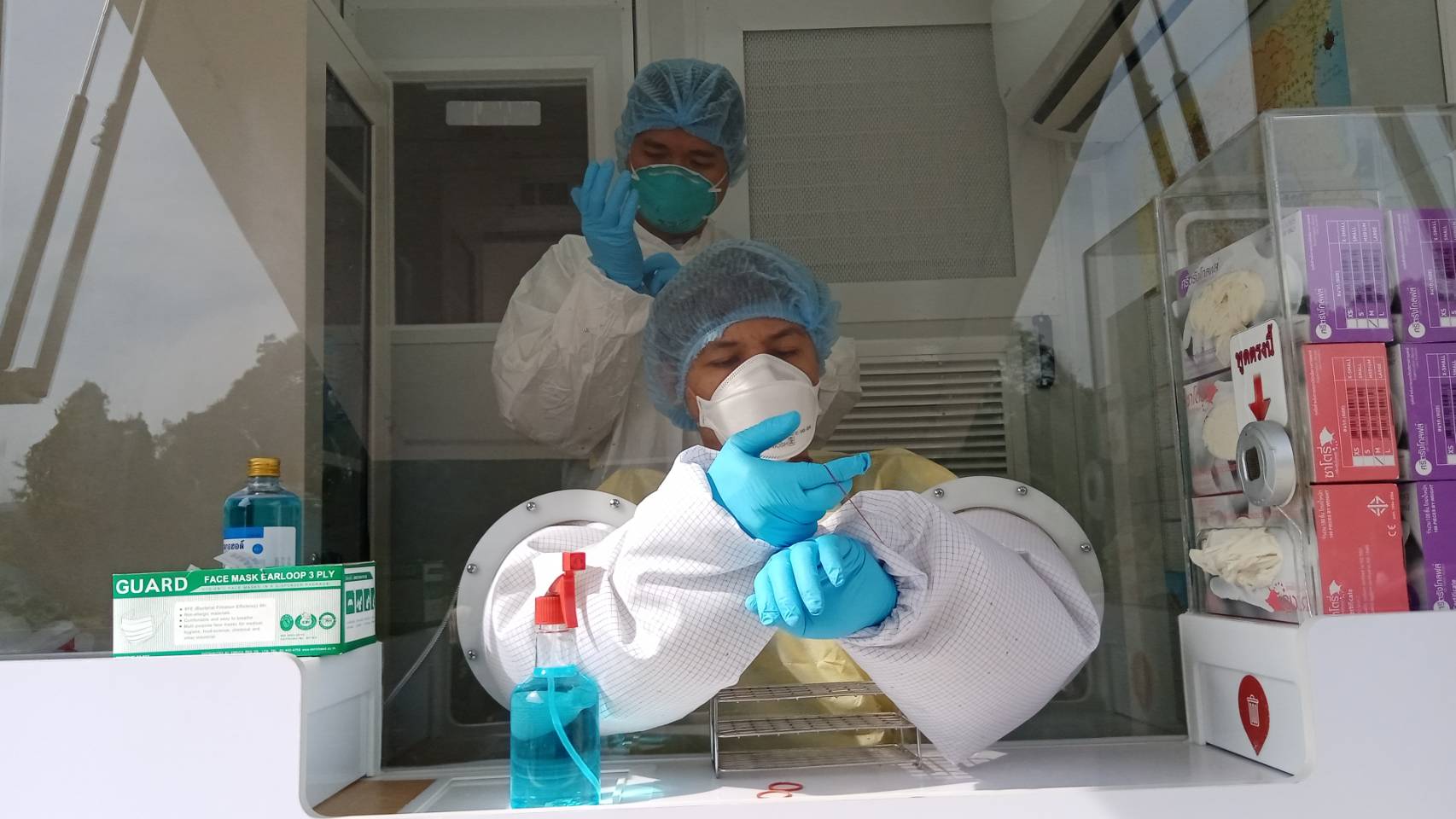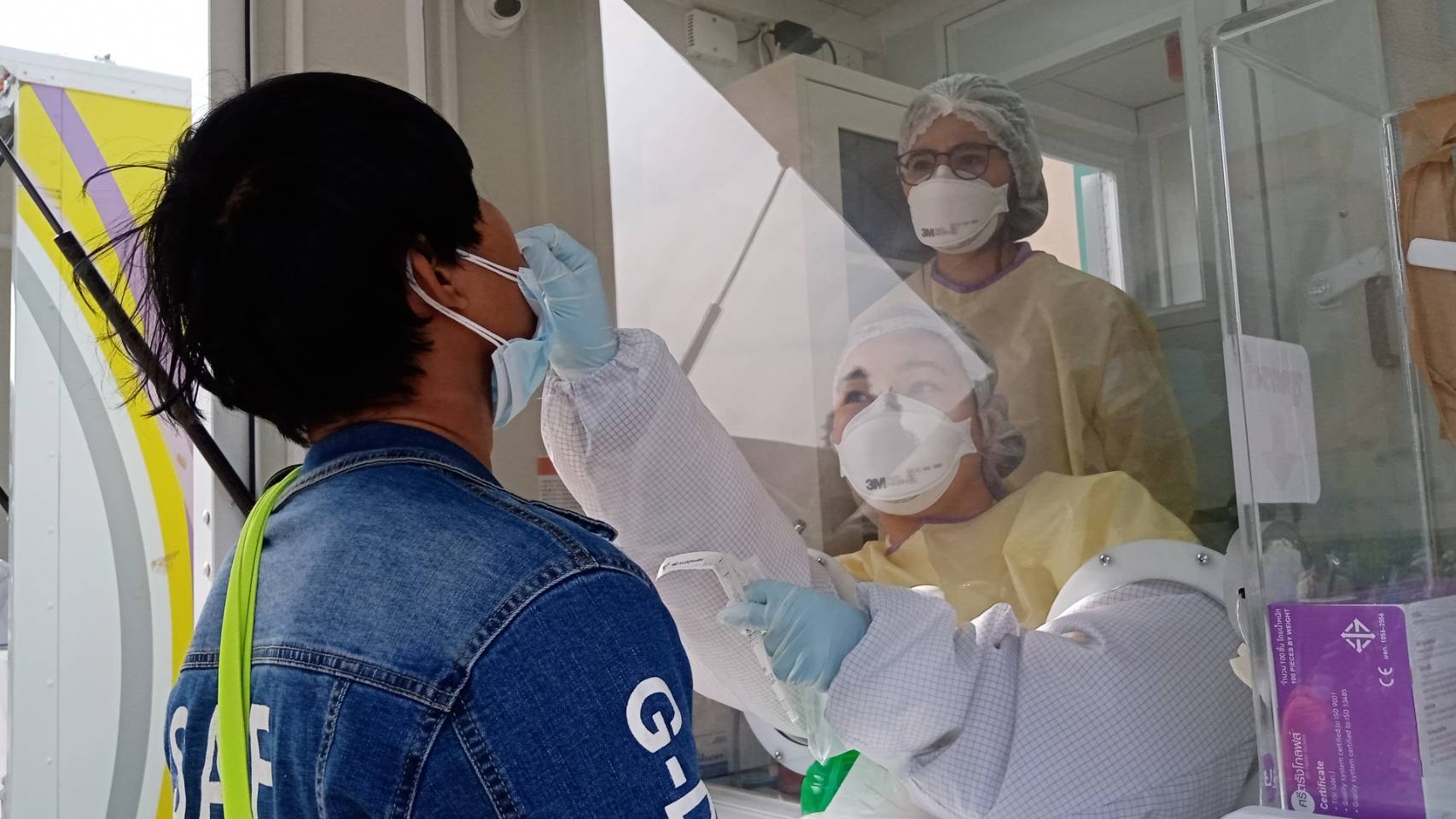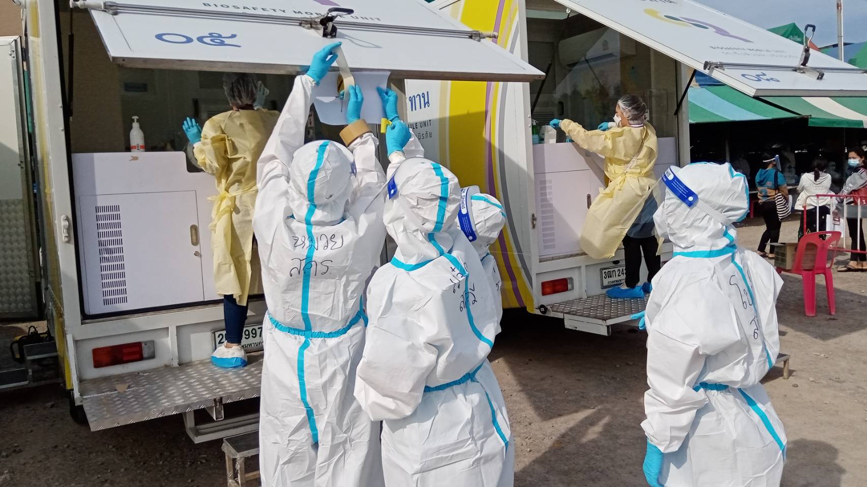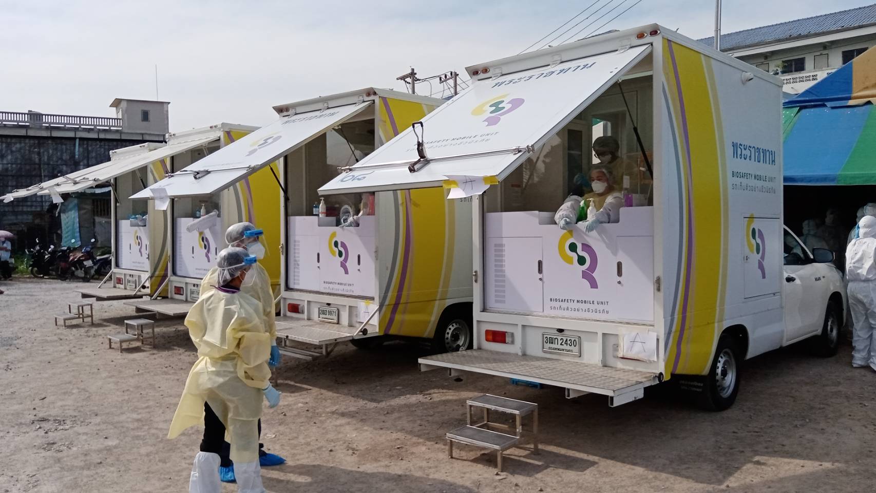 สมุทรสาคร รถพระราชทานชีวนิรภัย4คันและเจ้าหน้าที่สาธารณสุข 6 จังหวัดเร่งตรวจหาเชื้อโควิด-19 เชิงรุก