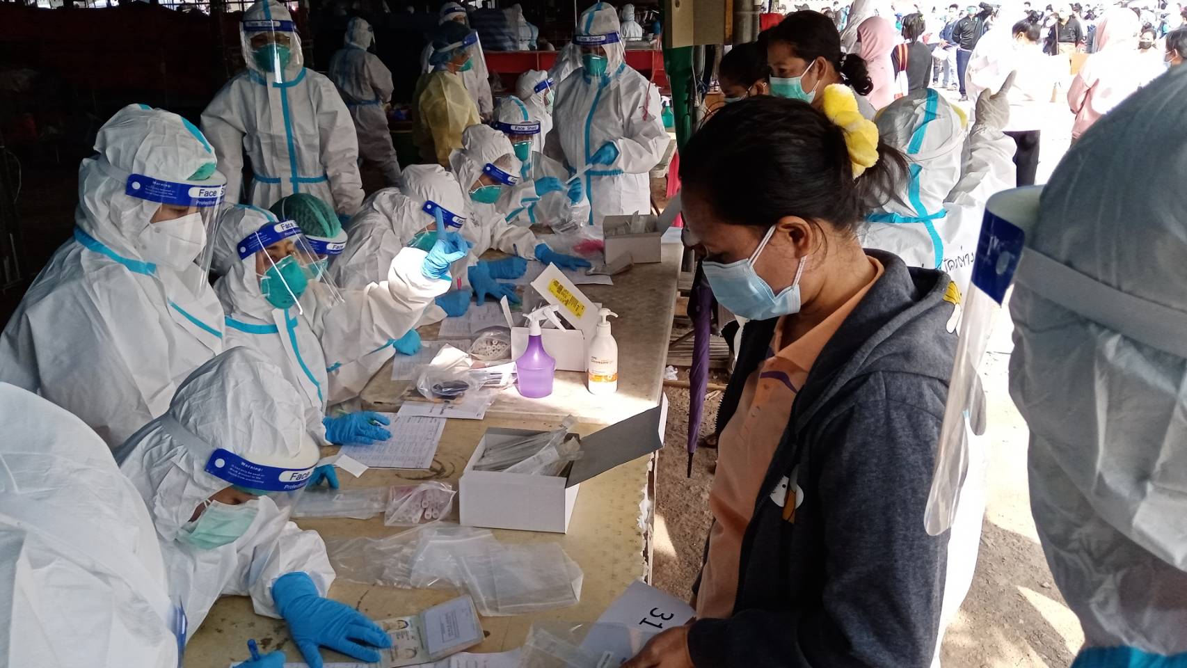 ซึ่งข้อมูลล่าสุดเมื่อเวลา 19.00 น. เมื่อวันที่ 22 ธันวาคม 2563 มีผู้เข้ารับการตรวจหาเชื้อไปแล้ว จำนวน 8,379 ราย ทราบผลการตรวจแล้ว รวมทั้งสิ้น 4,769 ราย คิดเป็น 56.91 % พบผู้ติดเชื้อรวม 1,092 ราย คิดเป็น 22.89 % ยังคงรอผลตรวจอีกจำนวน 3,610 คน คิดเป็น 43.08 % โดยในจำนวนผู้ติดเชื้อ 1,092 ราย เป็นไทย 55 คน คิดเป็น 5.04 % และแรงงานต่างด้าวจำนวน 1,037 คน คิดเป็น 94.96 % ซึ่งสถานการณ์โดยรวม ยอดผู้ติดเชื้อ “ดีขึ้น” จากเดิม 27.91 % ลดลงเหลือ 22.89 %