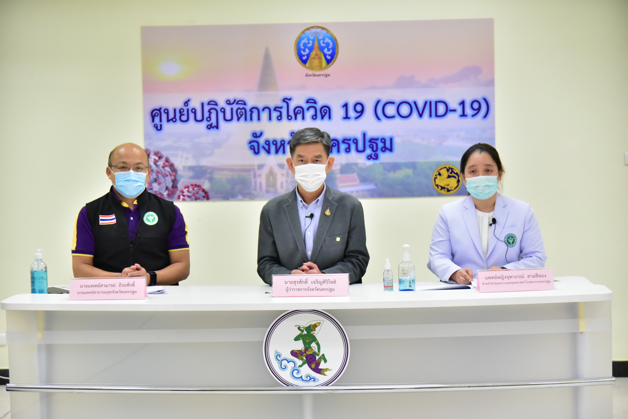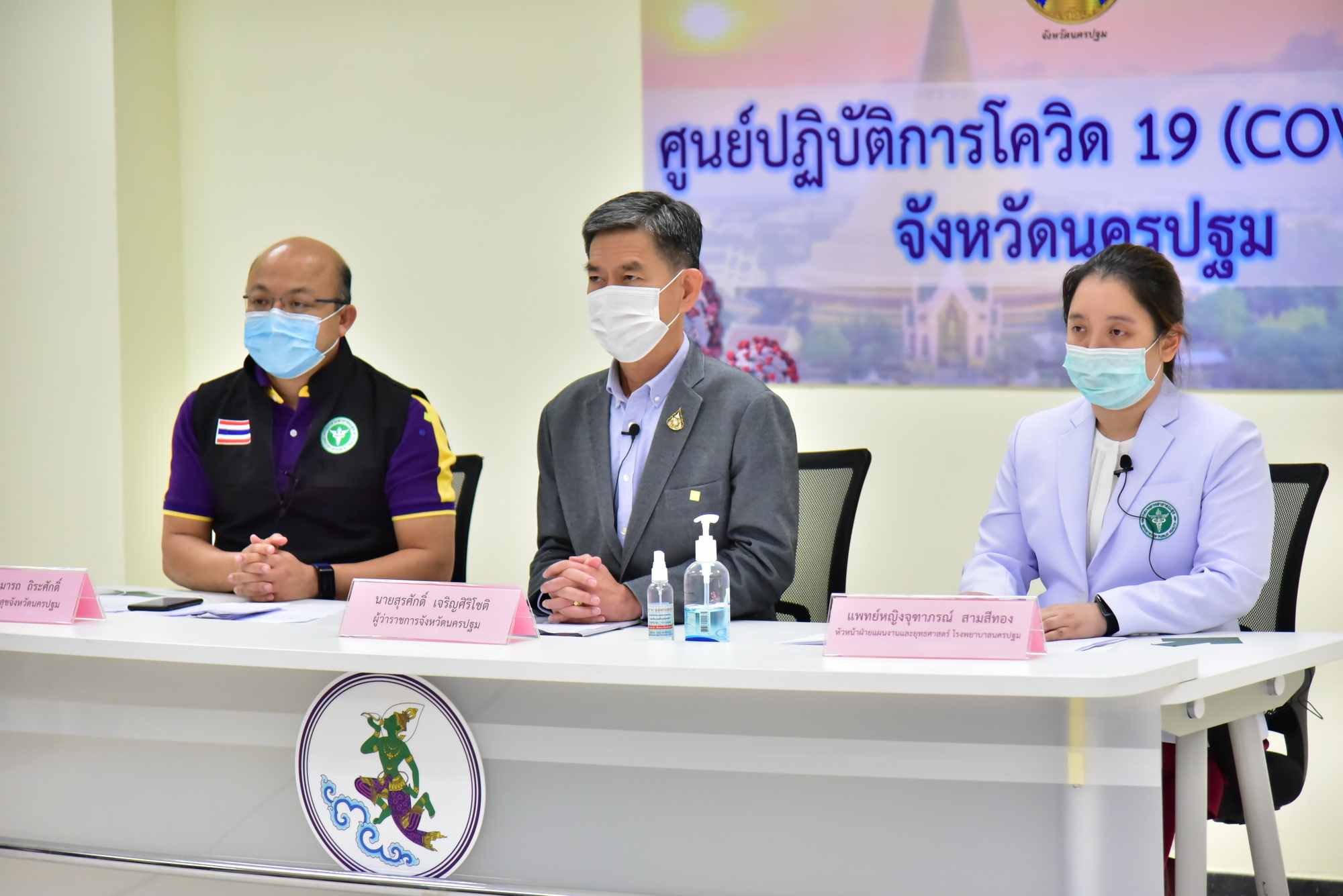 ค่ำวันนี้ (22 ธ.ค. 63) นายสุรศักดิ์ เจริญศิริโชติ ผู้ว่าราชการจังหวัดนครปฐม พร้อมด้วยนายแพทย์สามารถ ถิระศักดิ์ นายแพทย์สาธารณสุขจังหวัดนครปฐม และแพทย์หญิงจุฑาภรณ์ สามแสงทอง หัวหน้าฝ่ายแผนงานและยุทธศาสตร์ โรงพยาบาลนครปฐม แถลงสถานการณ์โรคติดเชื้อไวรัสโคโรนา 2019 หรือ โควิด-19 ที่ห้องแถลงข่าว ศูนย์ปฏิบัติการโควิด-19 จังหวัดนครปฐม