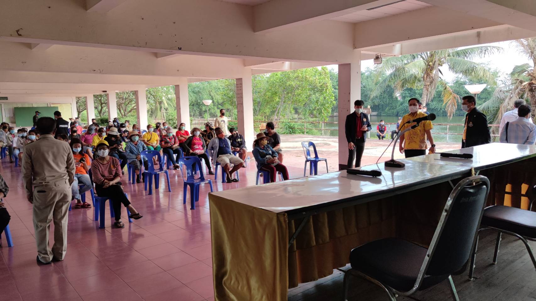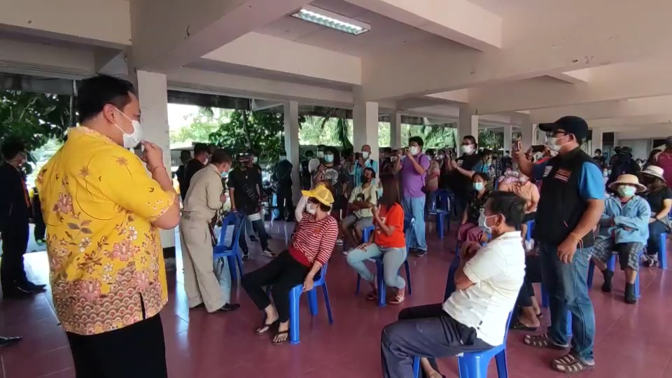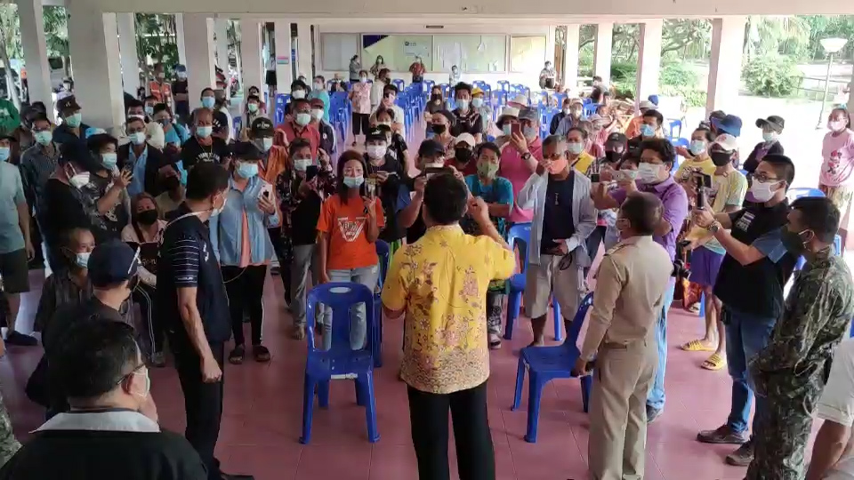 แต่ชาวบ้านคงไม่ยอมพร้อมกล่าวว่าทำไมไม่ไปทำที่ค่ายทหารที่บริเวณนี้เป็นเขตชุมชน มีโรงเรียน ชุมชน ทำถึงมาที่นี่ ซึ่งผลการเจรจาไม่สามารถตกลงกันได้ชาวบ้านคงยกมือพร้อมบางรายตะโกนไม่เอาโรงพยาบาลสนามแม้ตายก็ไม่ยอม จนถึงเวลา16.20คณะรองผู้ว่าฯยังคงเจรจากับชาวบ้านไม่สำเร็จต้องล่าถอยออกมาก่อน
