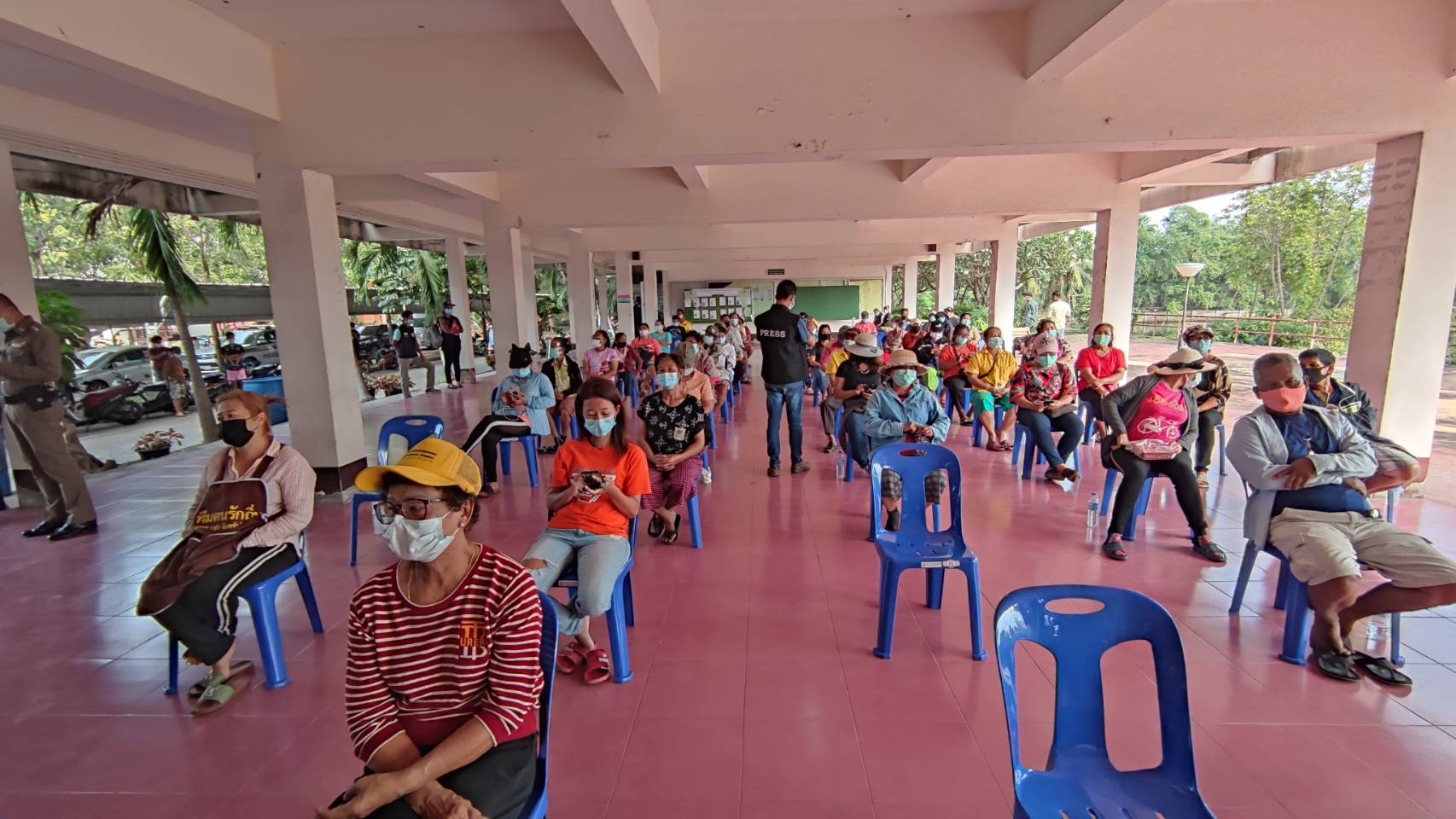 เมื่อเวลา14.30น. วันที่24ธันวาคม2563 ที่ มหาวิทยาลัยการกีฬาแห่งชาติ วิทยาเขตสมุทรสาคร ตำบล บางหญ้าแพรก อำเภอเมืองสมุทรสาคร จังหวัดสมุทรสาคร ชาวบ้านนับร้อยที่อาศัยอยู่ในชุมชนรอบรั้วของมหาวิทยาลัยการกีฬาแห่งชาติ วิทยาเขตสมุทรสาคร รวมตัวเรียกร้องการอนุญาตให้พื้นที่อัฒจันทร์และสนามกีฬา ในมหาวิทยาลัยการกีฬาแห่งชาติ ใช้พื้นที่ ทำเป็นโรงพยาบาลสนาม ขนาด 400 เตียง เพื่อดูแลผู้ป่วยที่ติดเชื้อไวรัสโคโรนา โควิด-19 ของจังหวัดสมุทรสาคร โดยพื้นที่ดังกล่าว อยู่ใกล้กับชุมชนรอบรั้วมหาวิทยาลัยฯ รวมทั้งมี บ้านพักบุคลากร และ เจ้าหน้าที่ และตอนนี้ทีมแพทย์ อสม. และเจ้าหน้าที่ควบคุมโรค เข้าเคลียร์พื้นที่เพื่อเตรียมการแล้ว