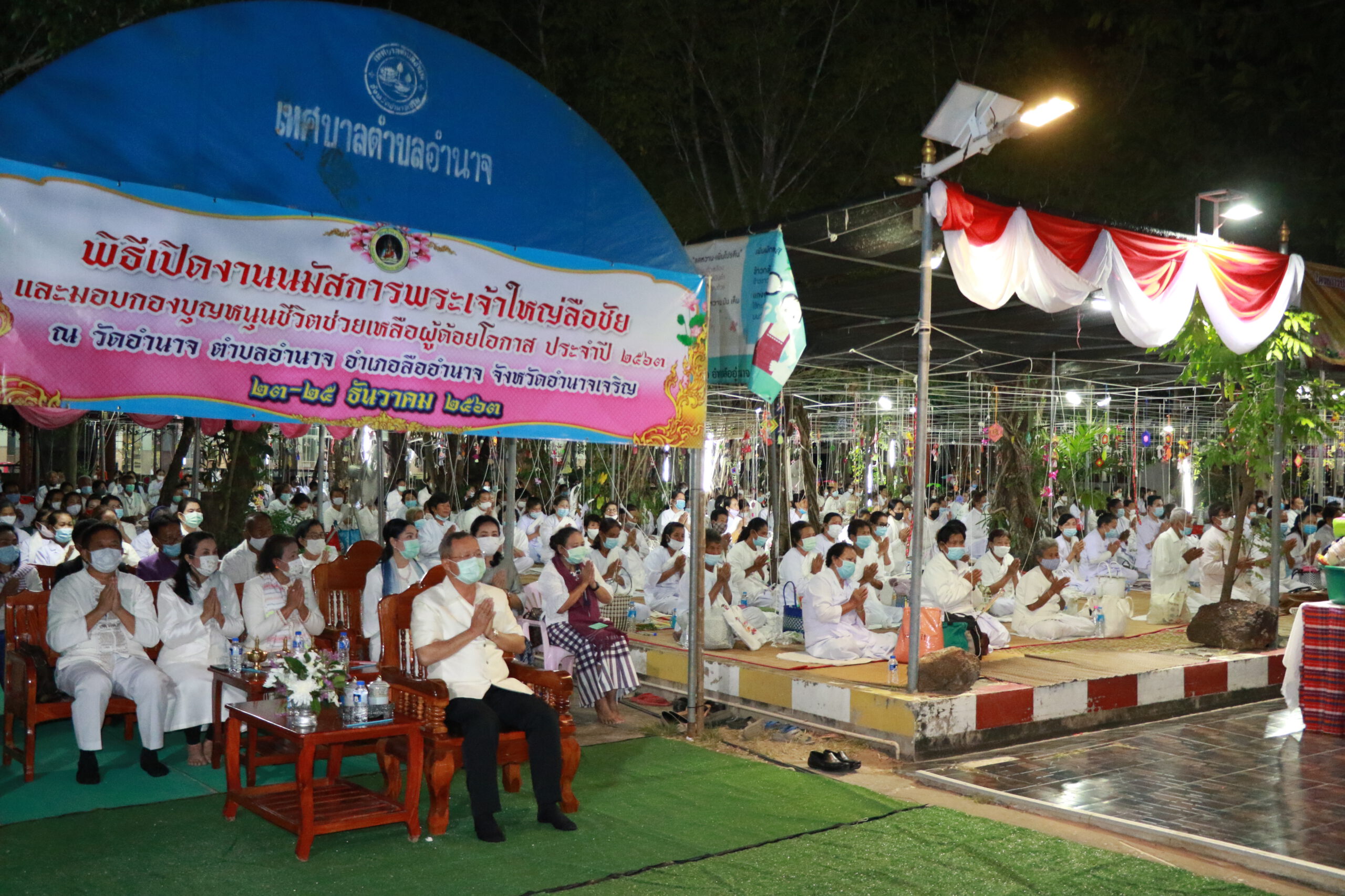 วันพุธที่ 23 ธันวาคม 2563 เวลา 19.00 น.นายทวีป บุตรโพธิ์ ผู้ว่าราชการจังหวัดอำนาจเจริญ ประธานเปิดงานนมัสการพระเจ้าใหญ่ลือชัย และมอบกองบุญหนุนชีวิตช่วยเหลือผู้ด้อยโอกาส ประจำปี 2563 ระหว่างวันที่ 23-25 ธันวาคม 2563 ณ.วัดอำนาจ อำเภอลืออำนาจ จังหวัดอำนาจเจริญ